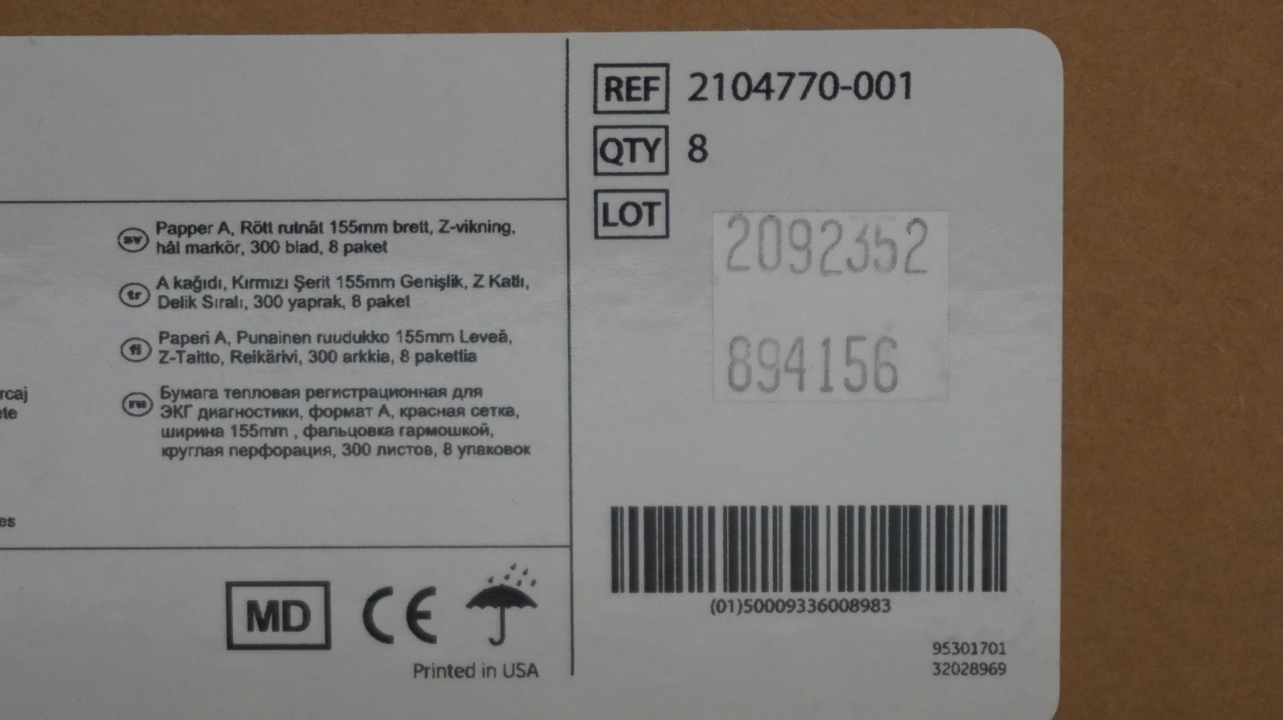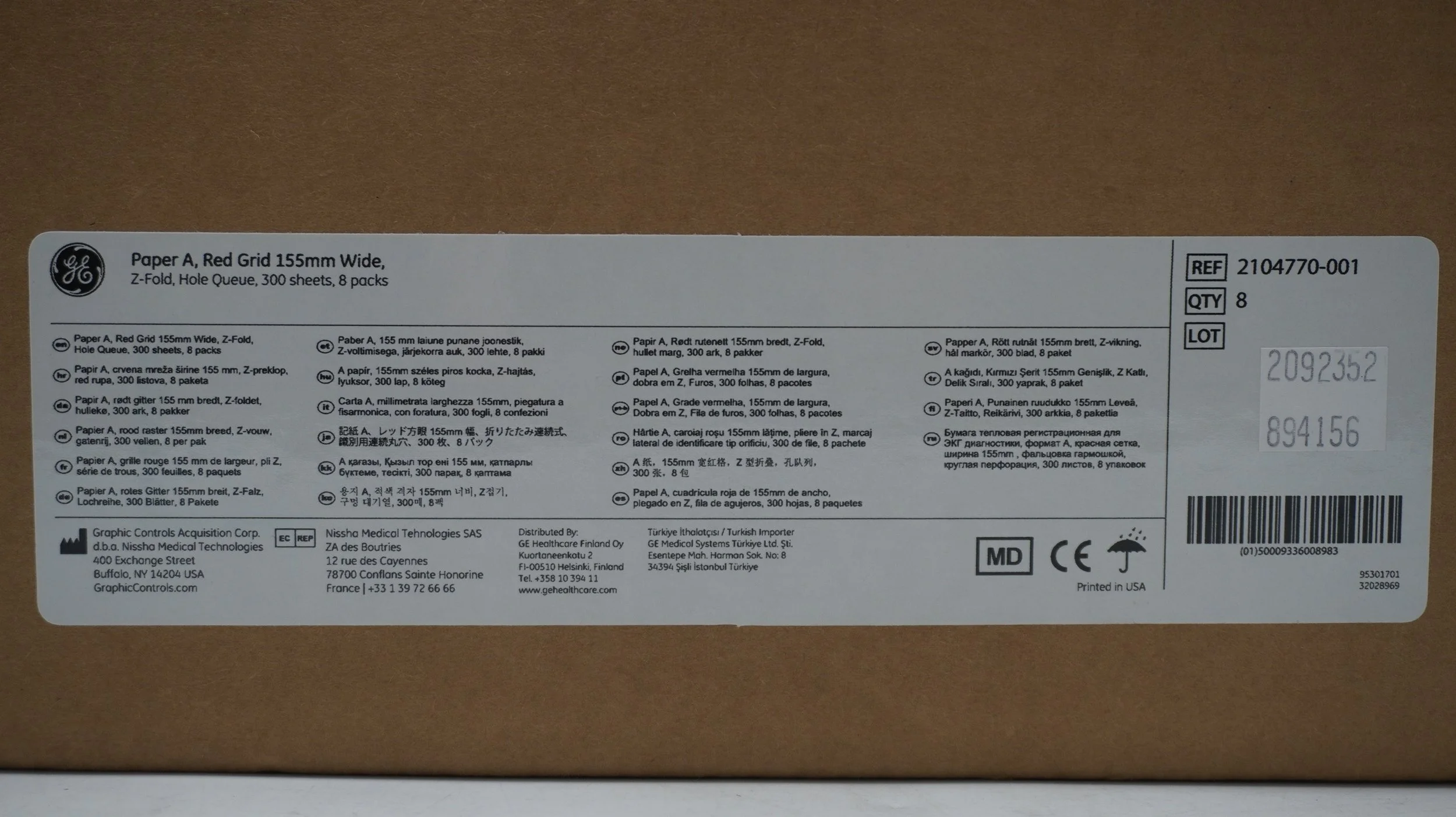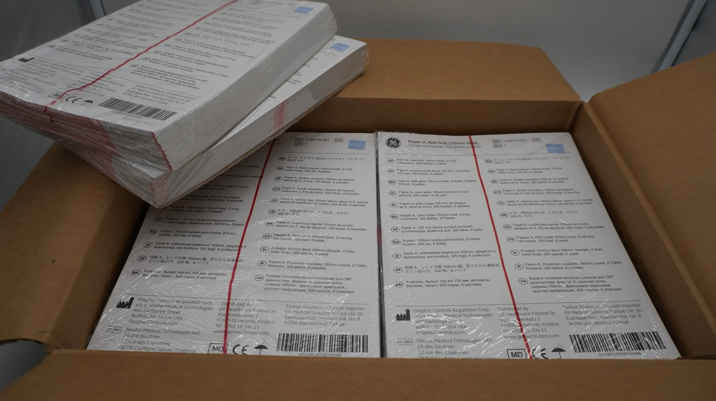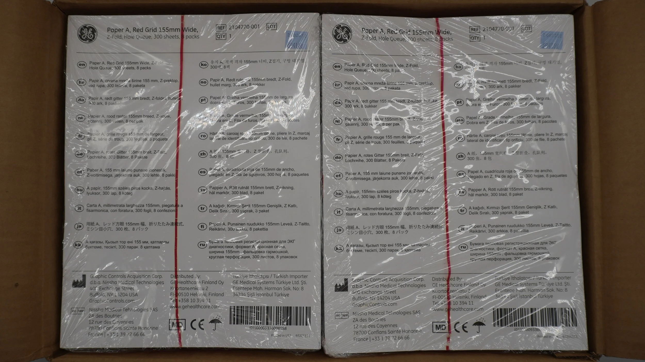GE | 2104770-001 | Case of 2400 | Paper A, Red Grid 155mm Wide Sheets of Paper