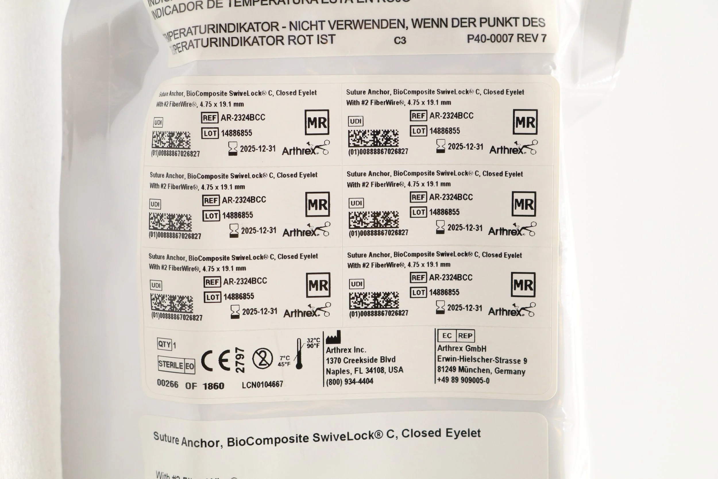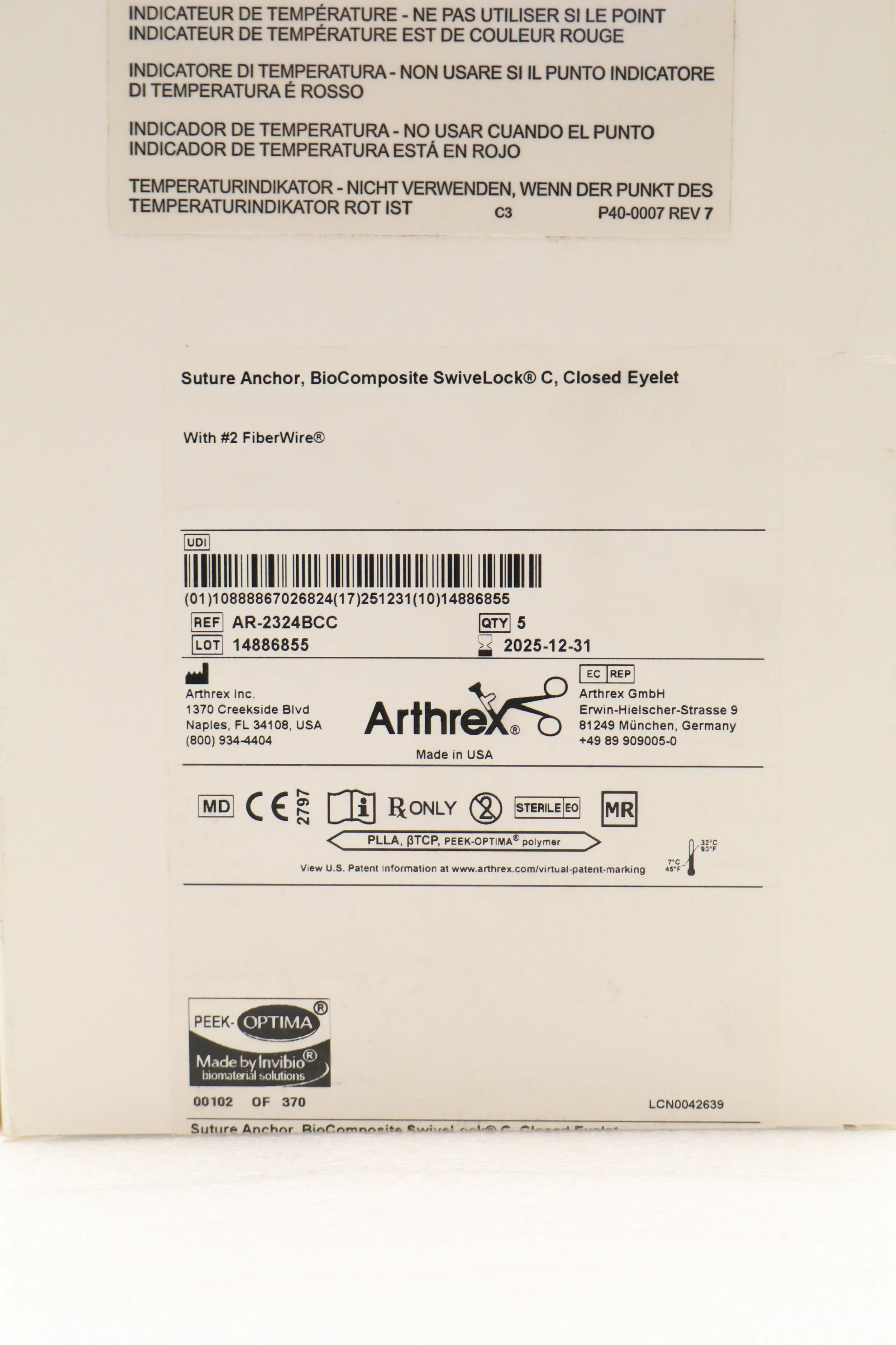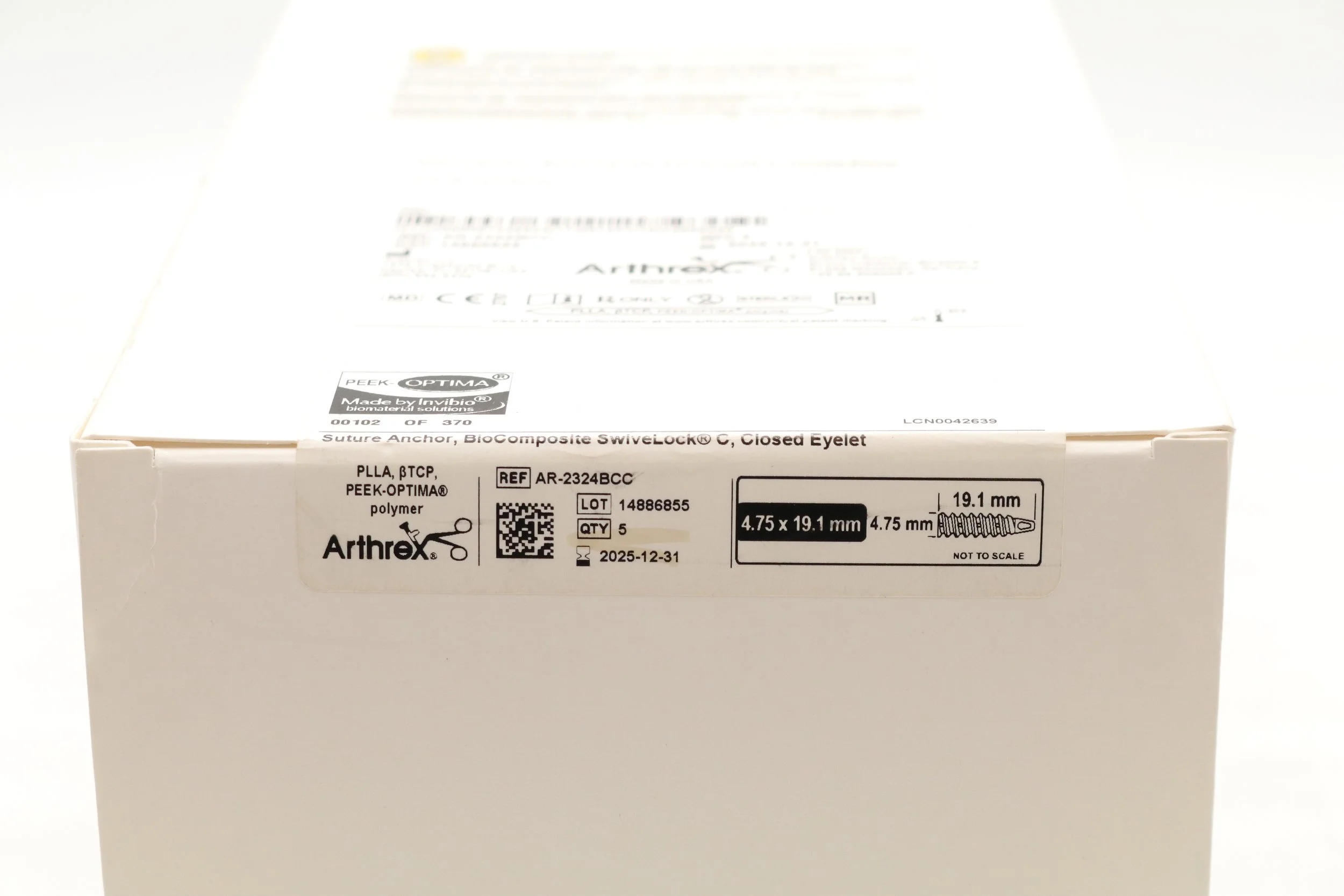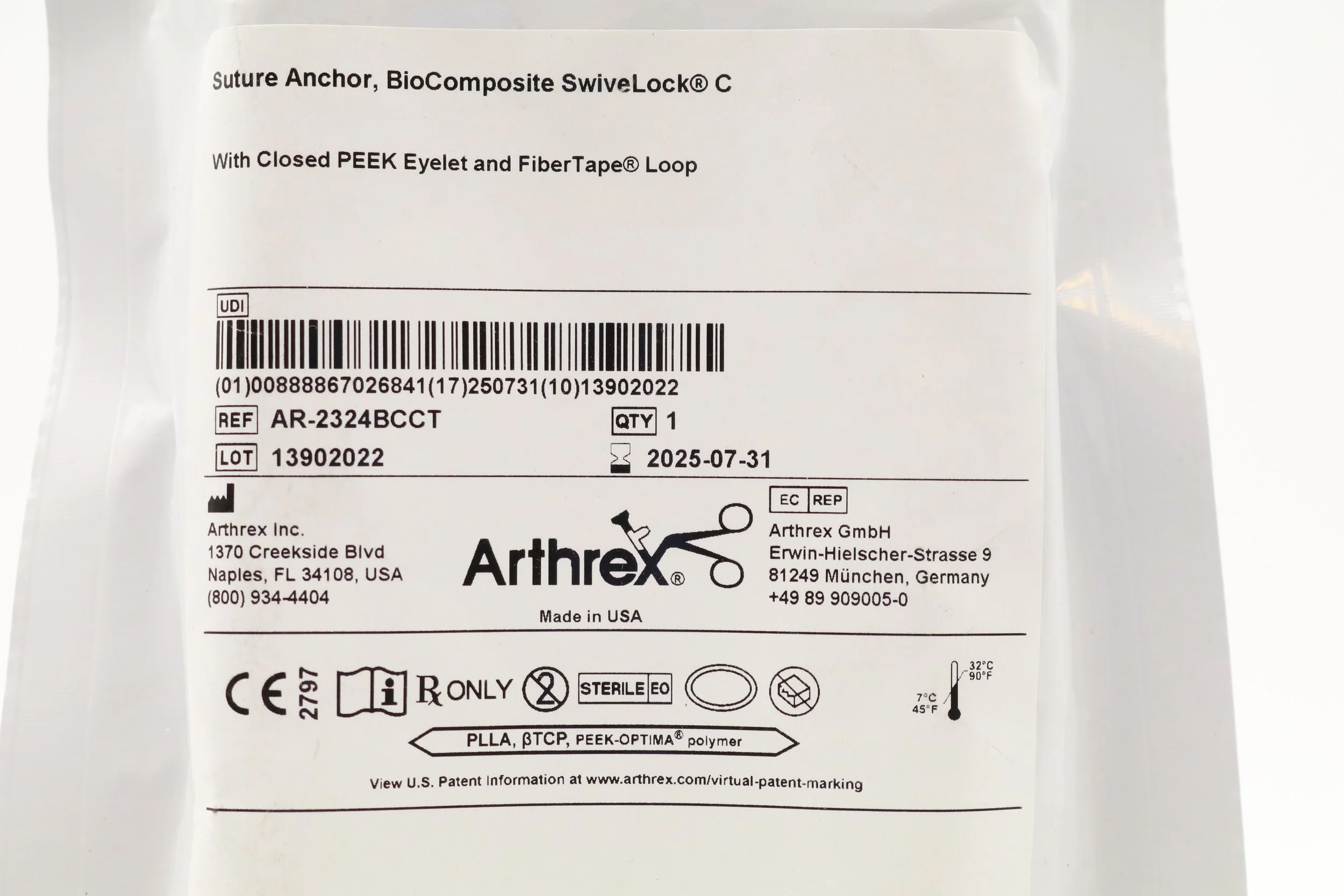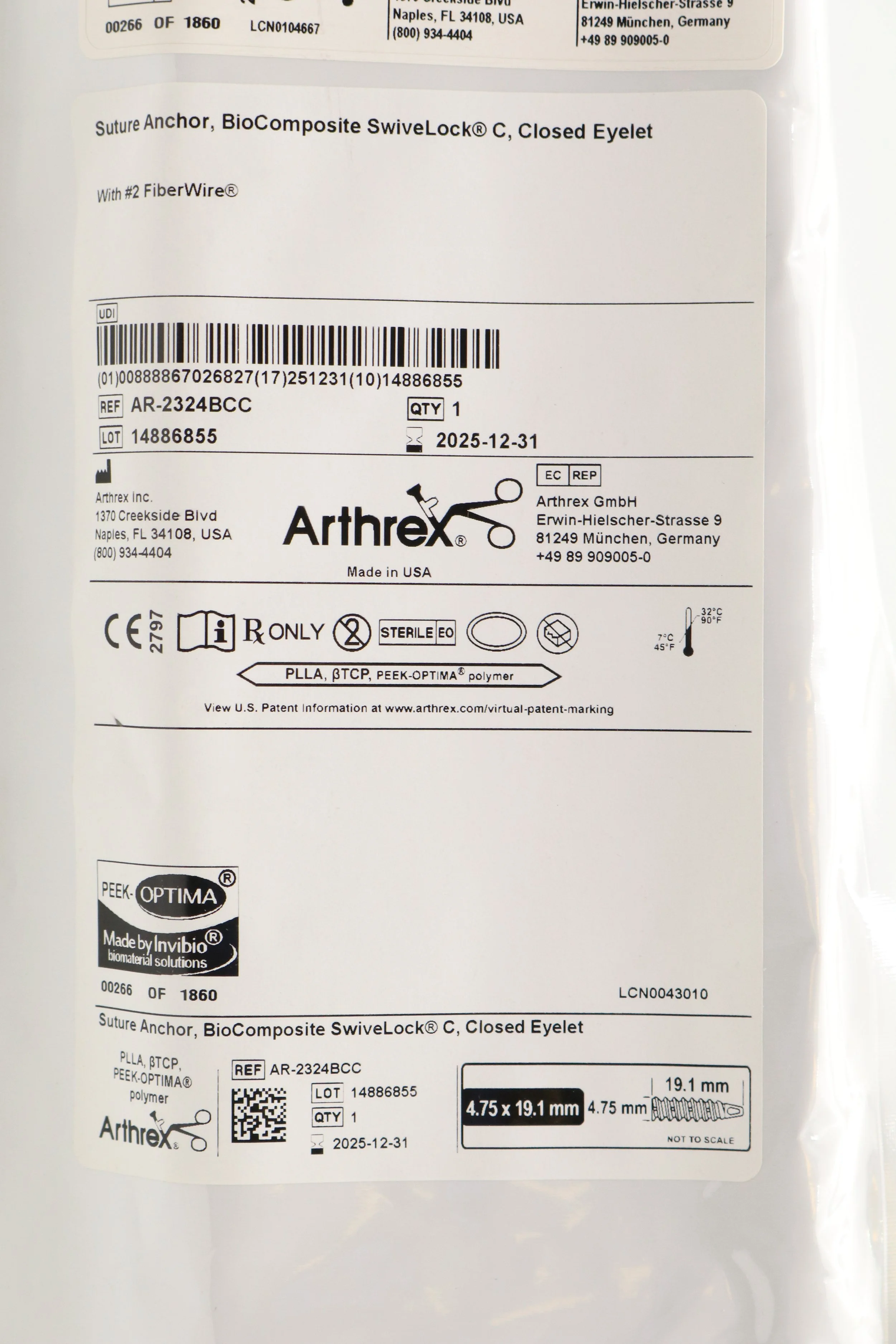 Arthrex | AR-2324BCC | EACHES | Biocomposite Swivelock C Anchor Tigertape Loop 4.75mm X 19.1mm