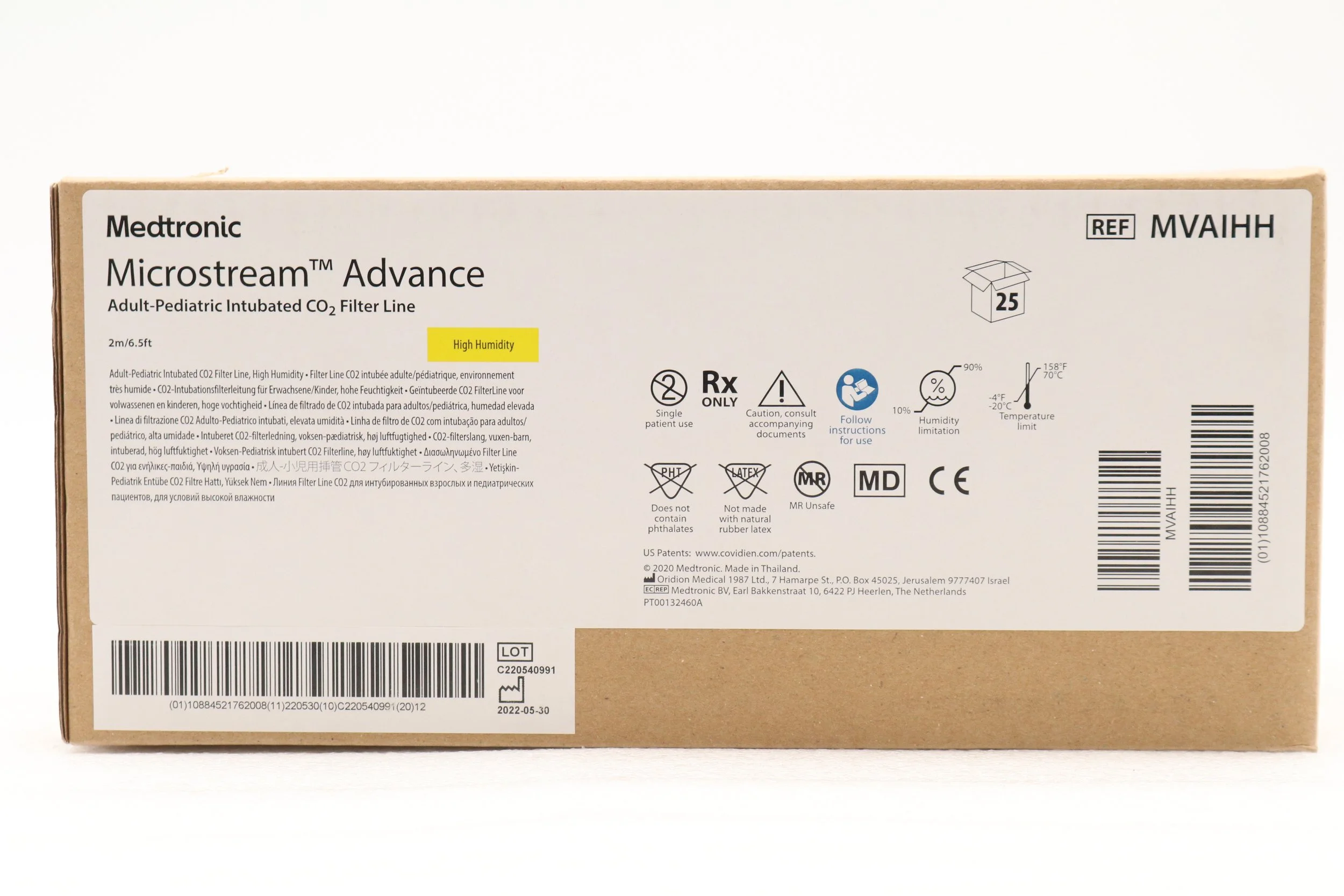Medtronic | MVAIHH | NO DATE | BOX OF 25 | Microstream Advance Intubated CO2 FilterLine, Adult/Pediatric, Long-Term