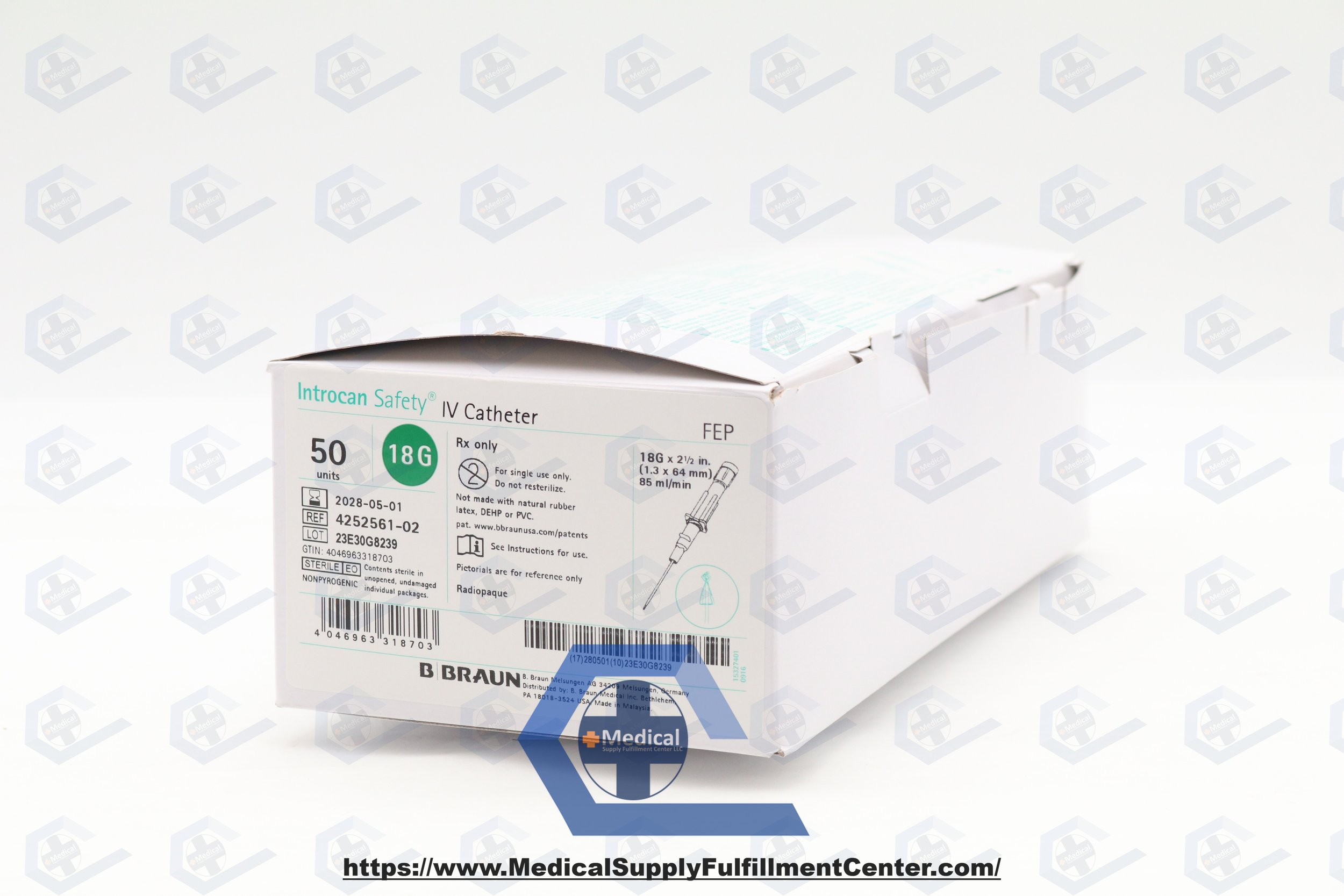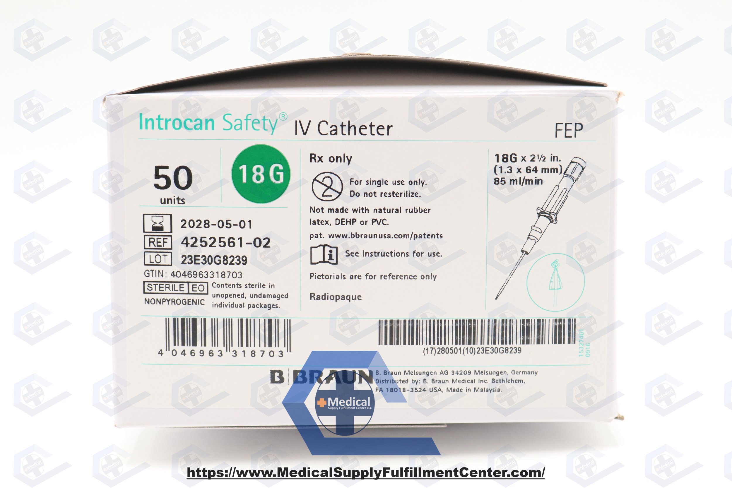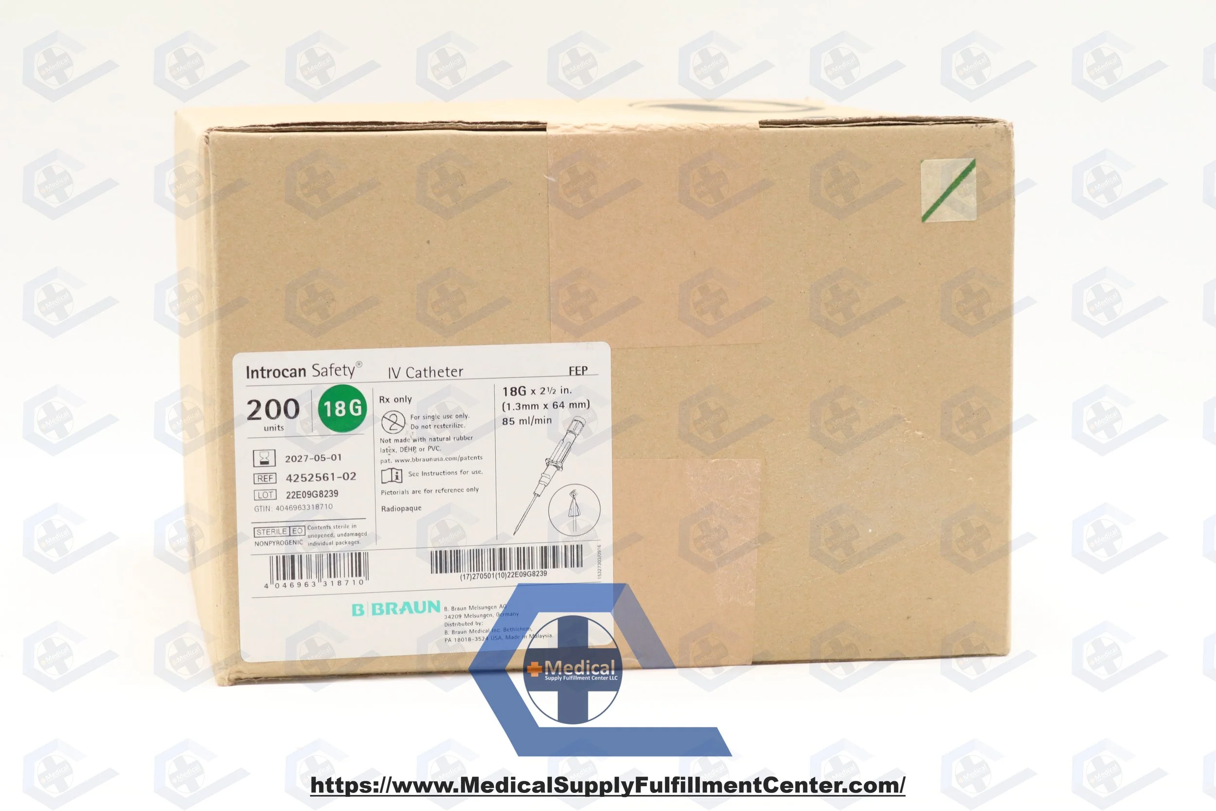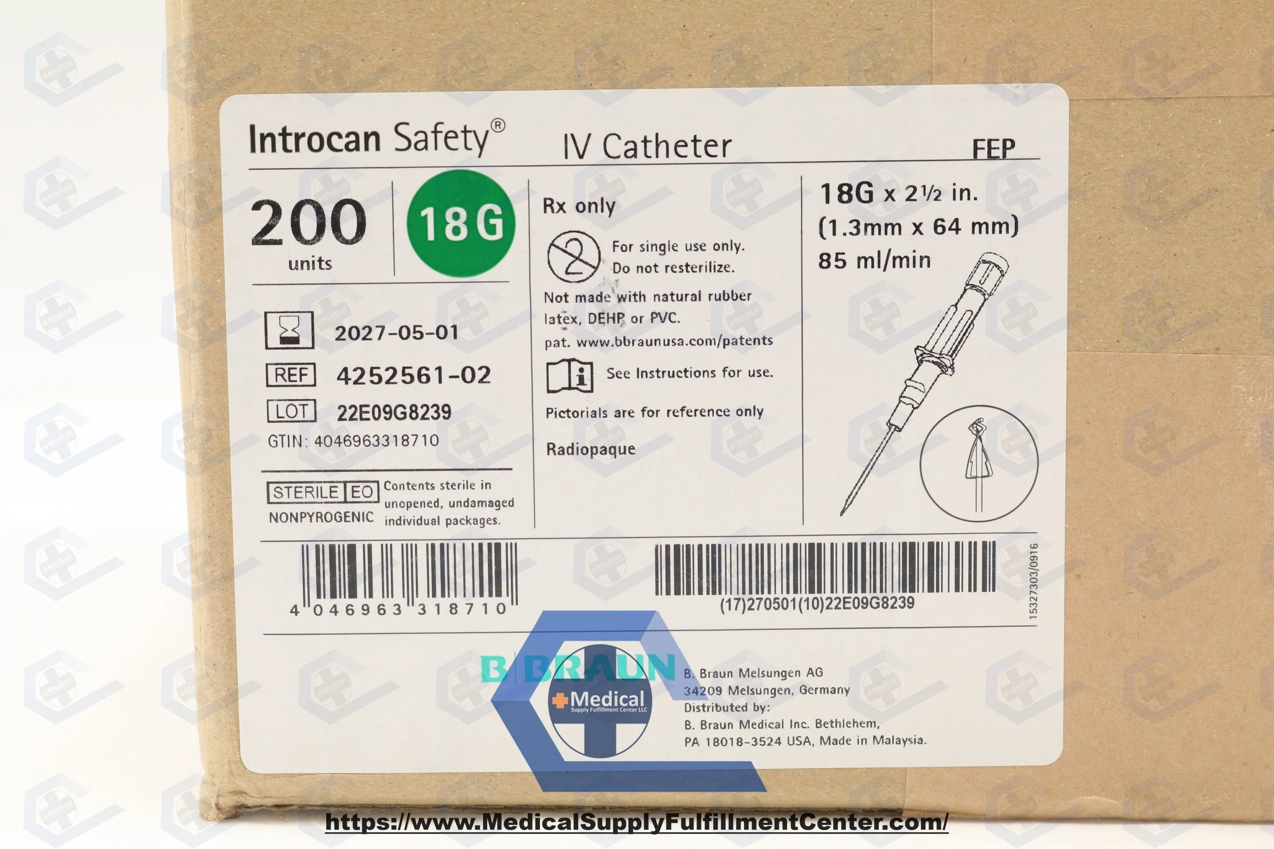 Braun | 4252561-02 | IN-DATE | BOX OF 50 | Introcan Safety IV Catheter 18G x 2.5" FEP, Straight