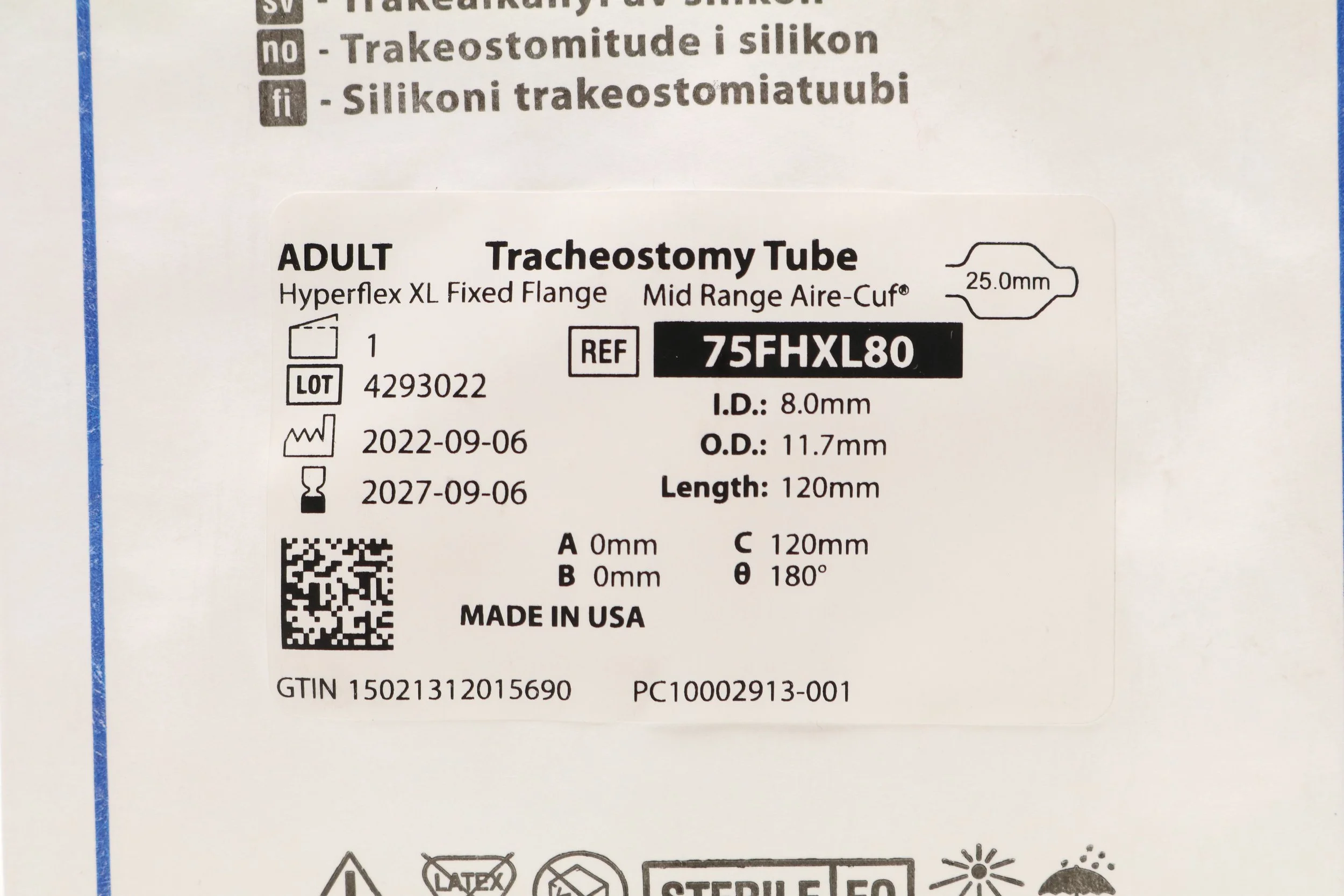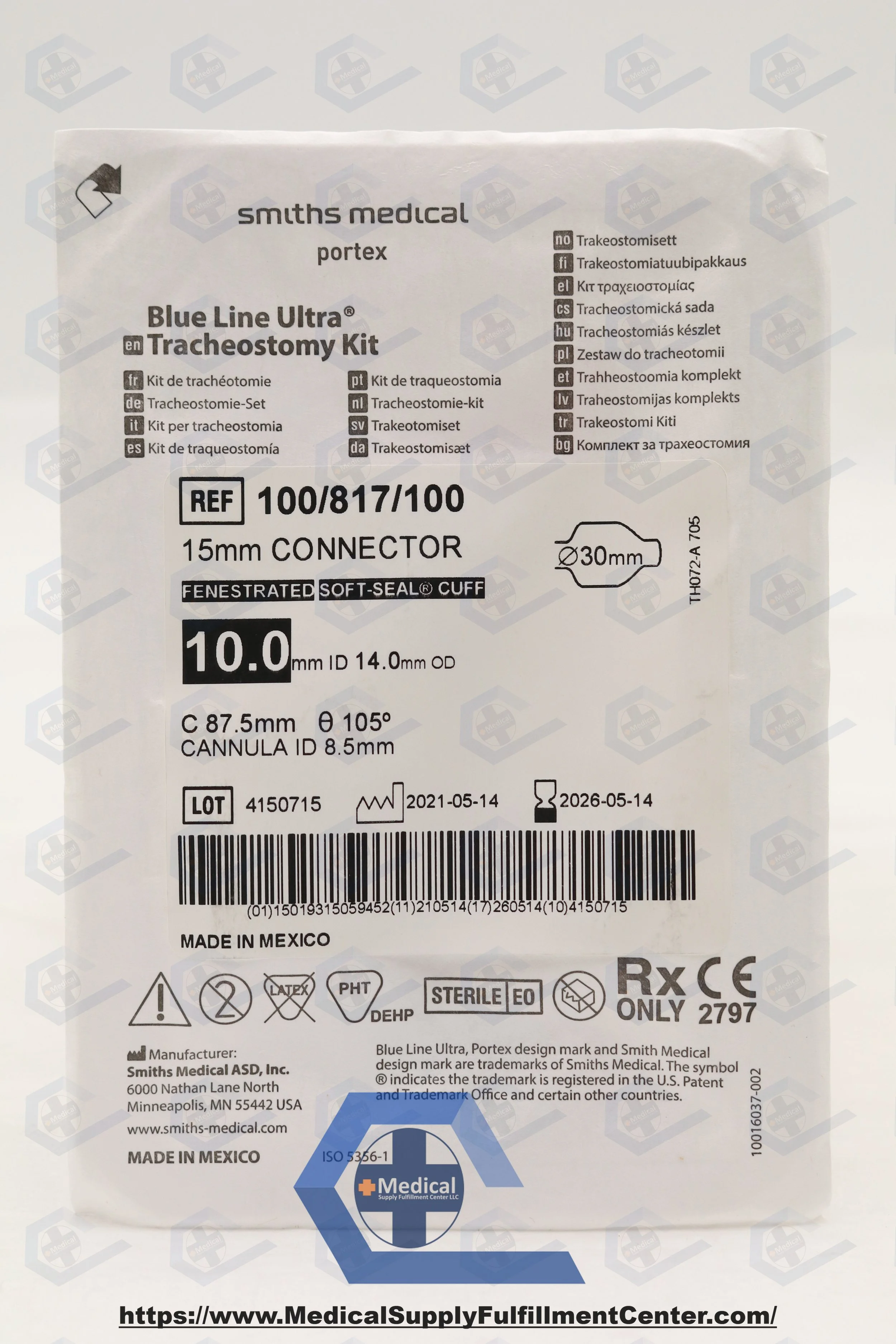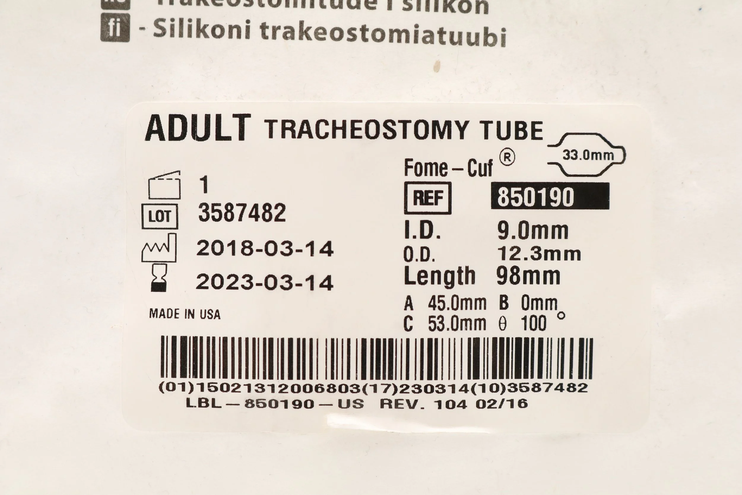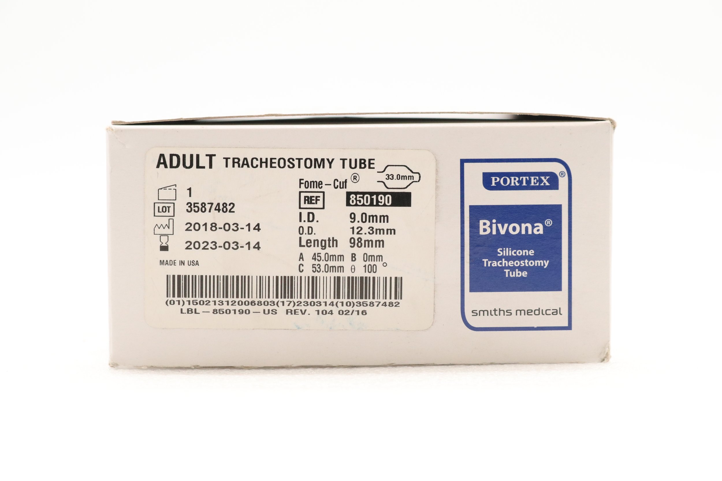 SMITHS MEDICAL | 850190 | EXPIRED | Eaches | Portex Bivona Adult Fome-Cuf Tracheostomy Tube Kit 9.0mm
