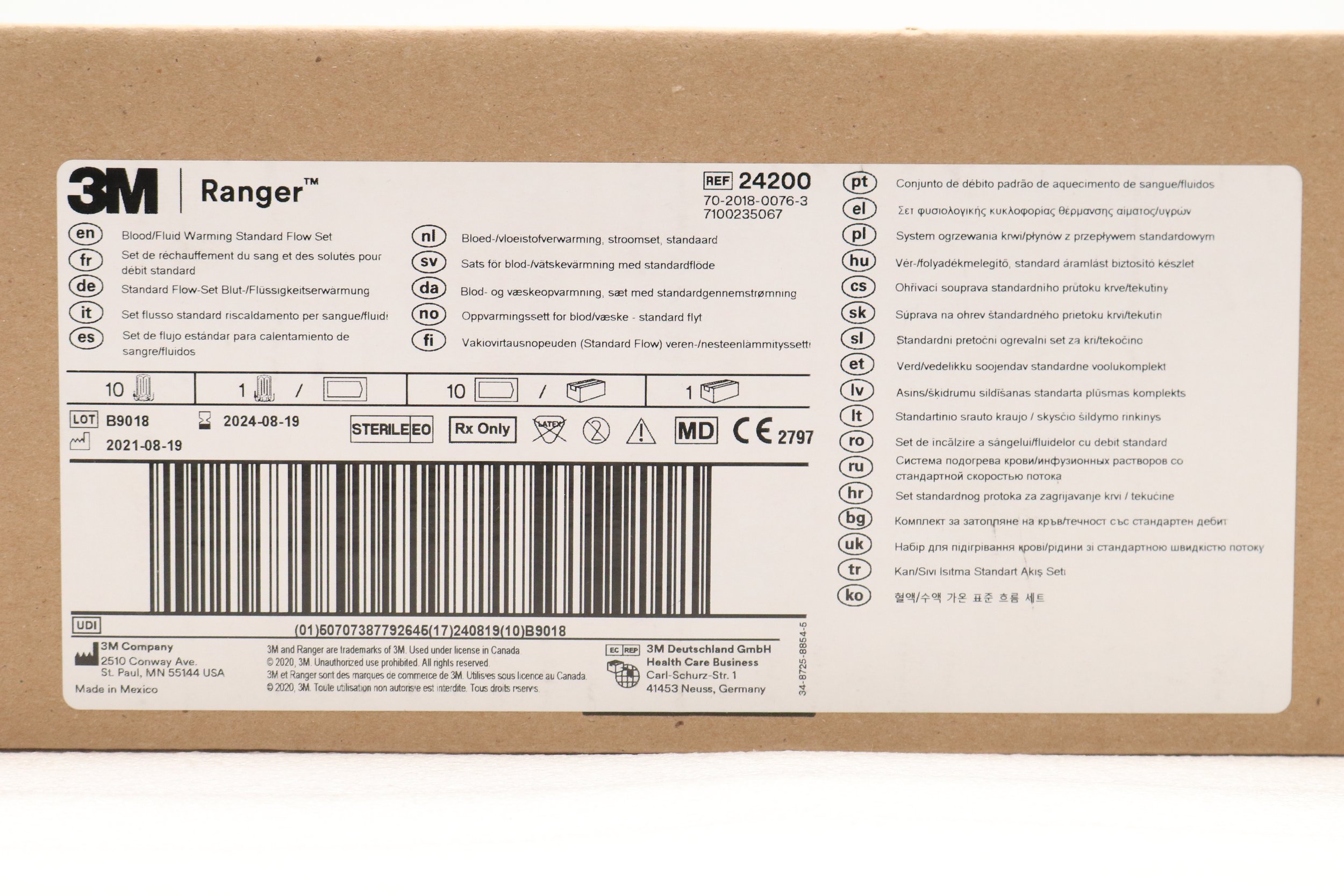 3M | 24200 | EXPIRED | BOX OF 10 | RANGER FLUID WARMING SET 24200, STANDARD FLOW