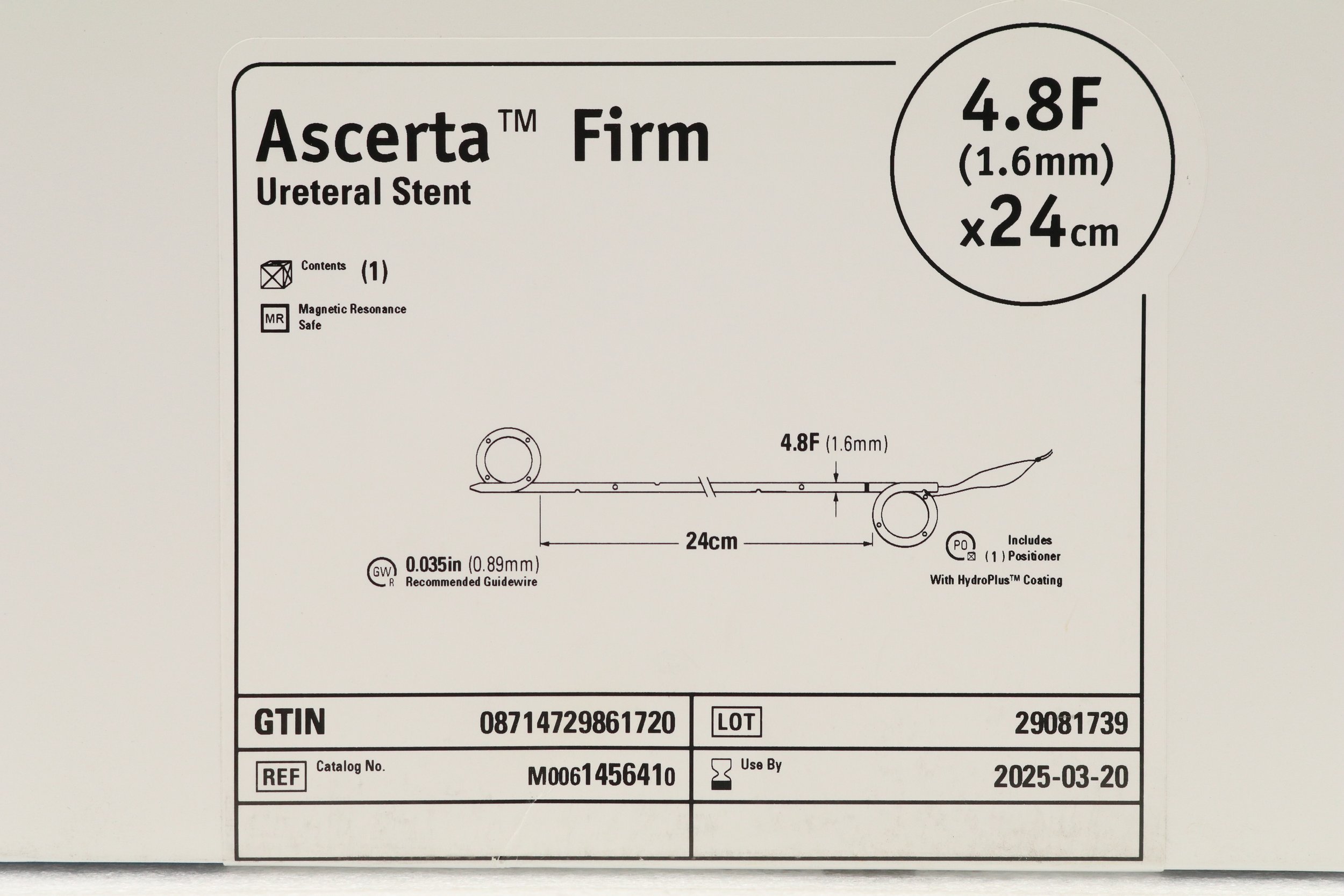 BOSTON SCIENTIFIC | 145641 | SHORTDATE | EACHES | M0061456410 ASCERTA FIRM URETERAL STENT 4.8F (1.6 MM) X 24 CM