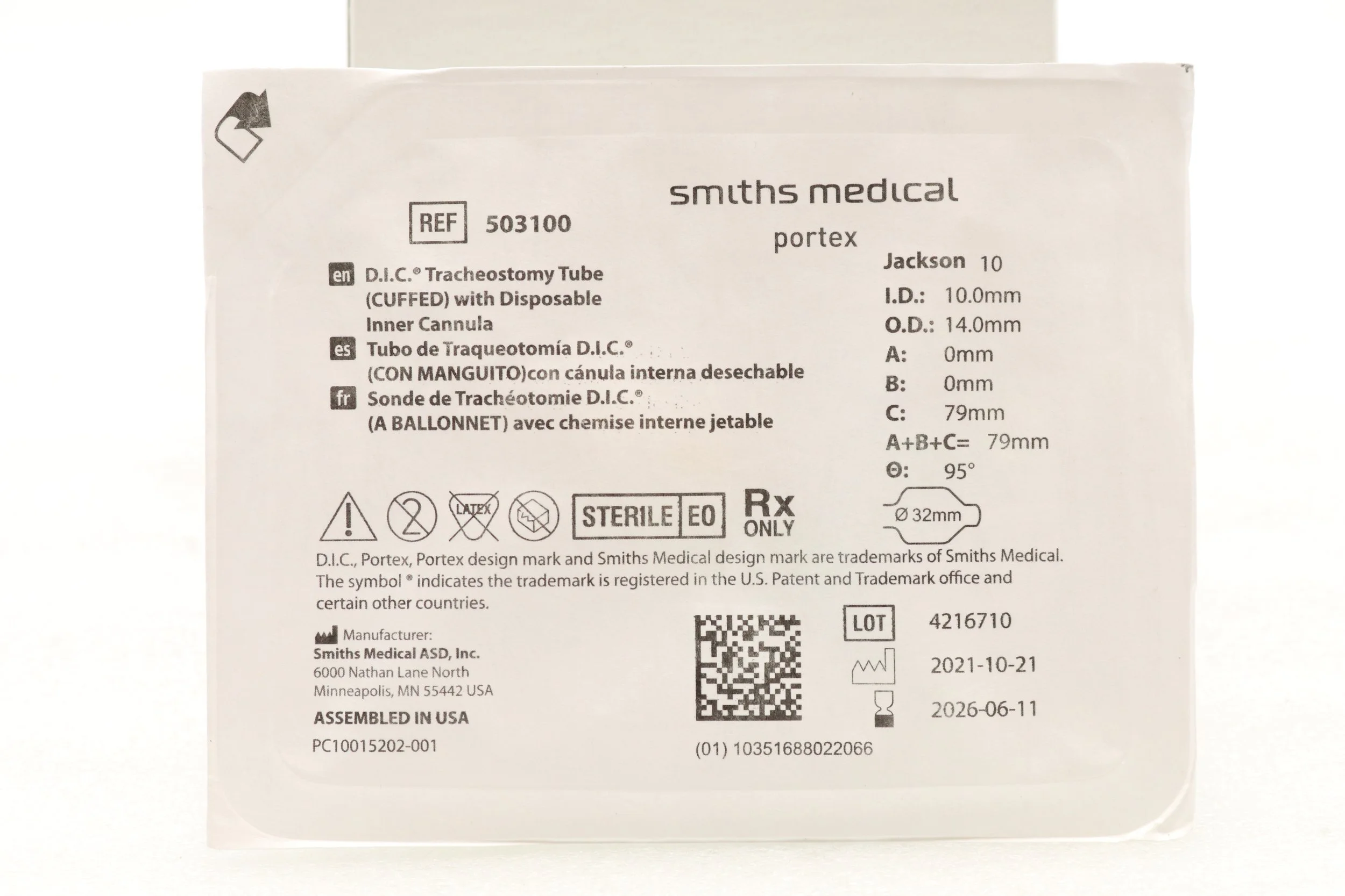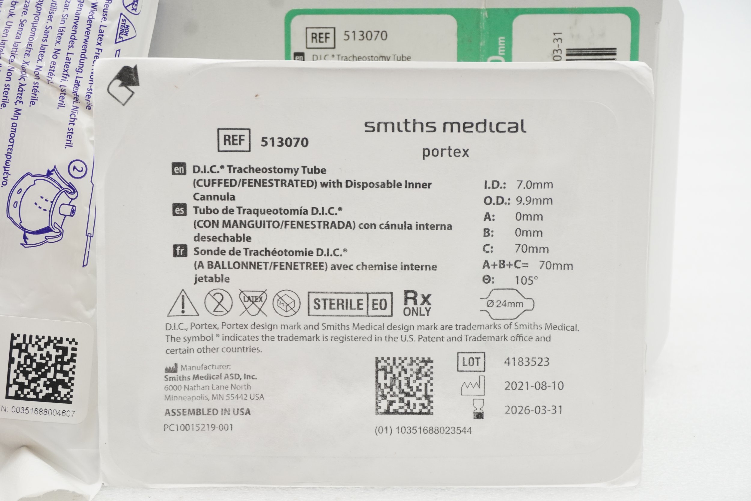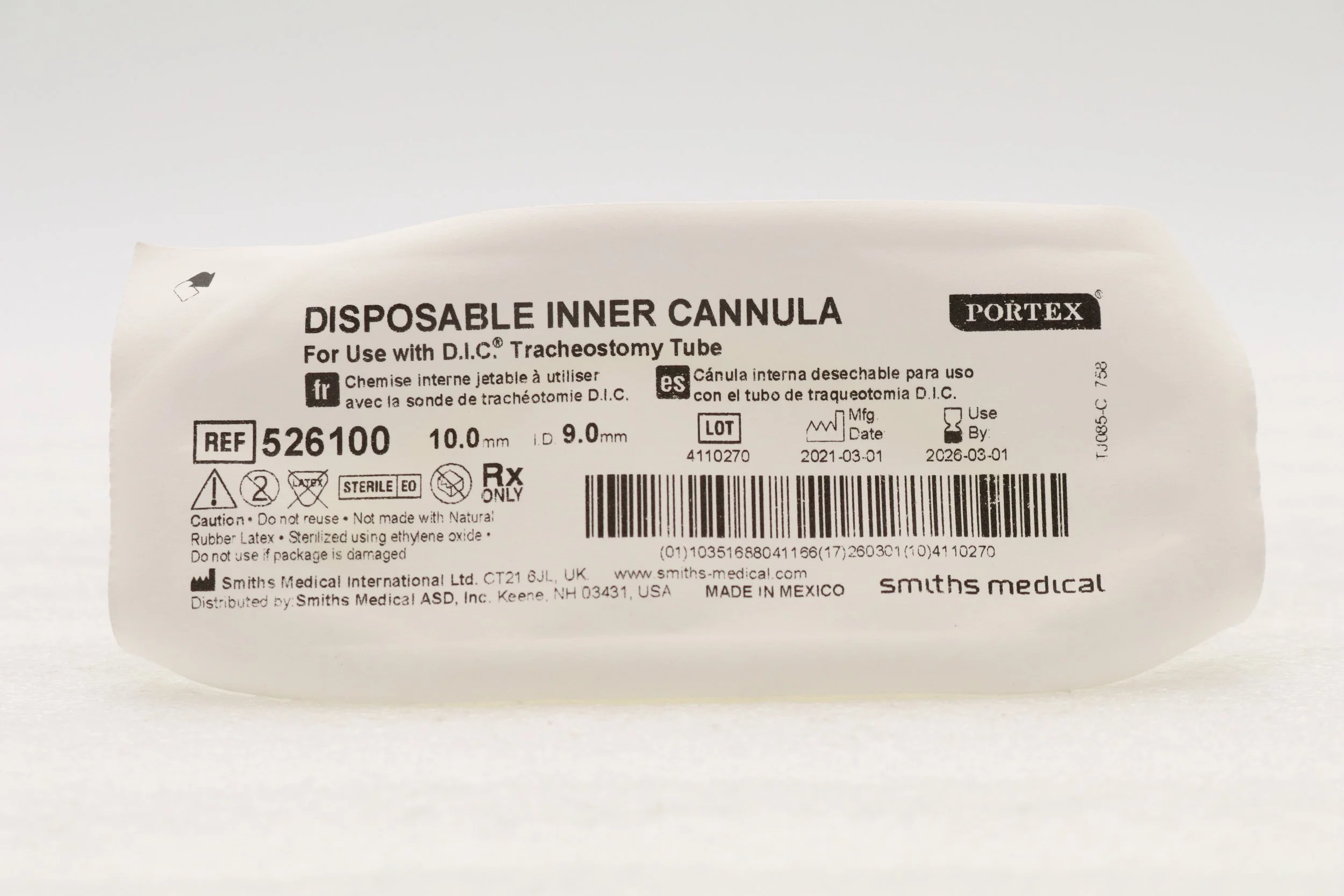 Smiths Medical | 526100 | IN-DATE | EACHES | CANNULA INNER TRACHEOSTOMY REPLACEMENT SIZE 9MM FLEXIBLE COLOR-CODED PORTEX DISPOSABLE NON-STERILE