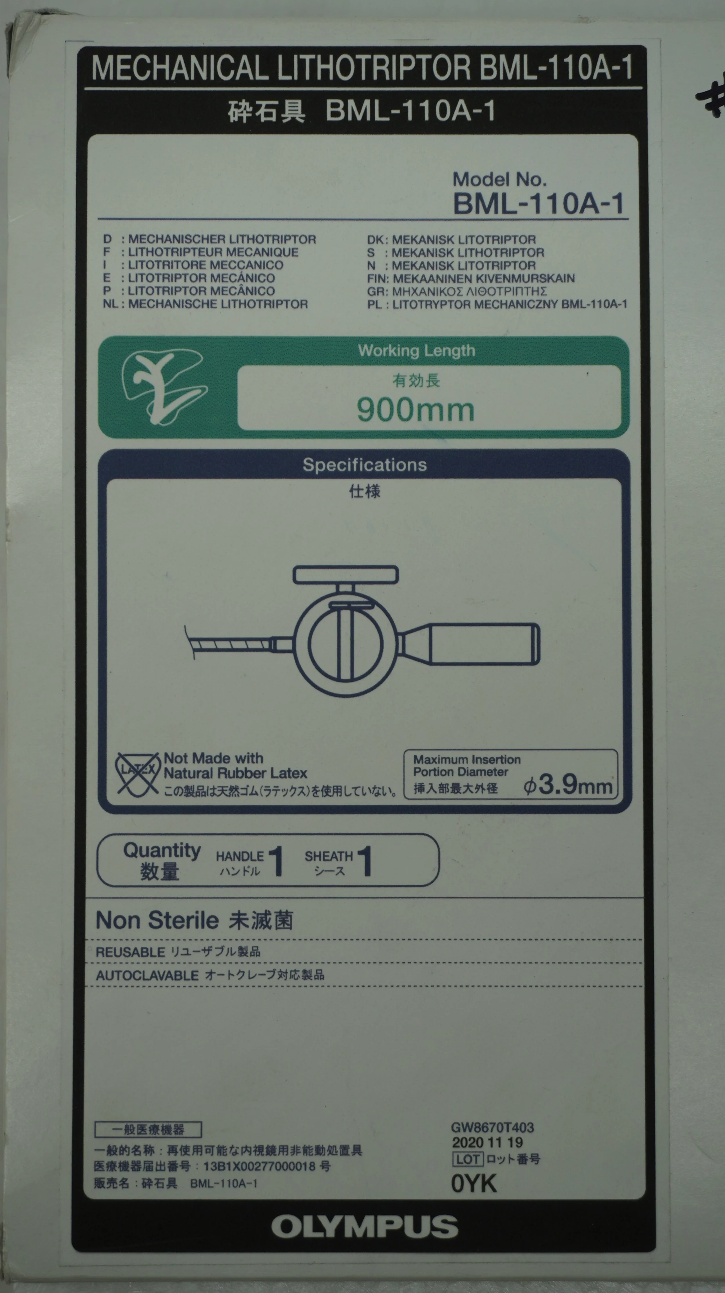 OLYMPUS | BML-110A-1 | EACHES | Mechanical Lithotriptor 900mm