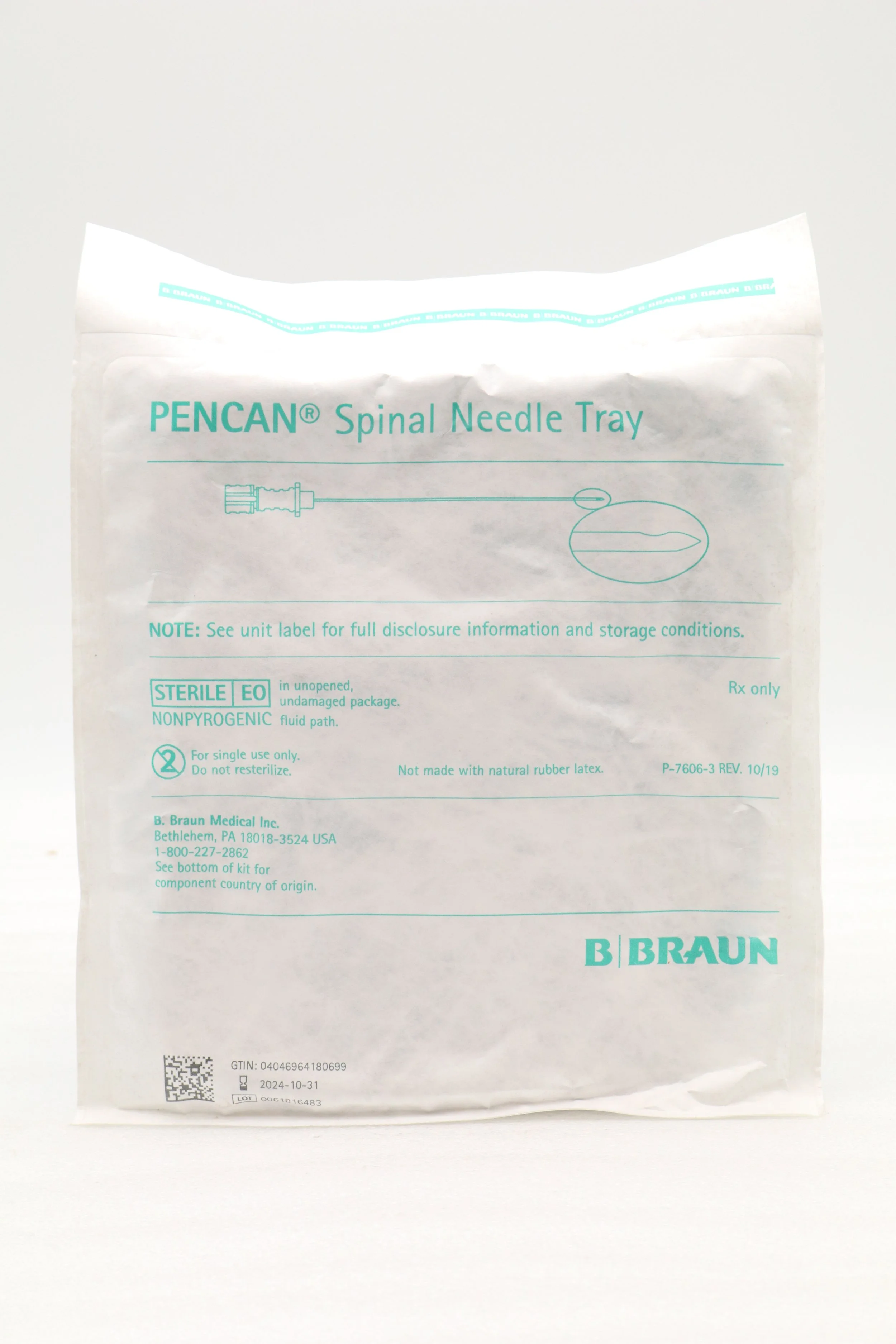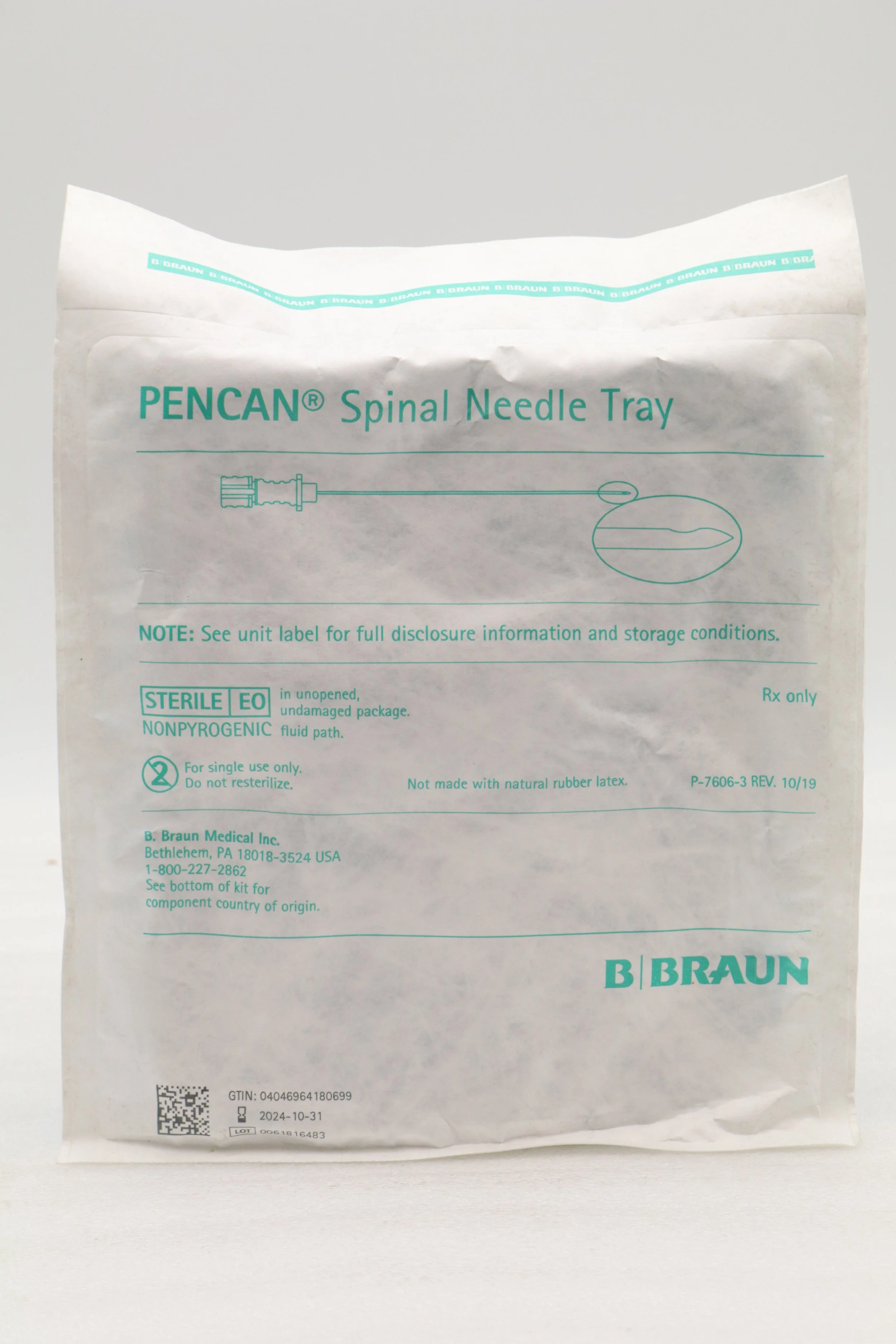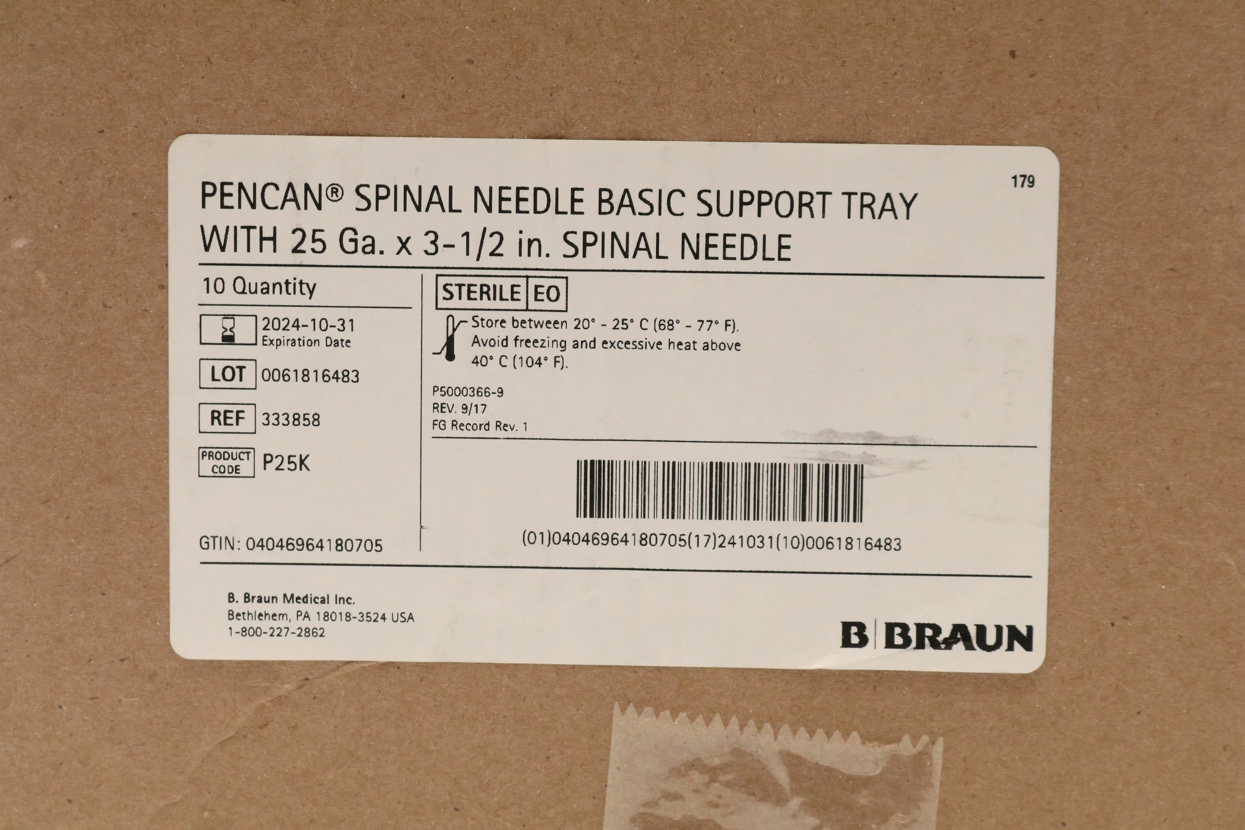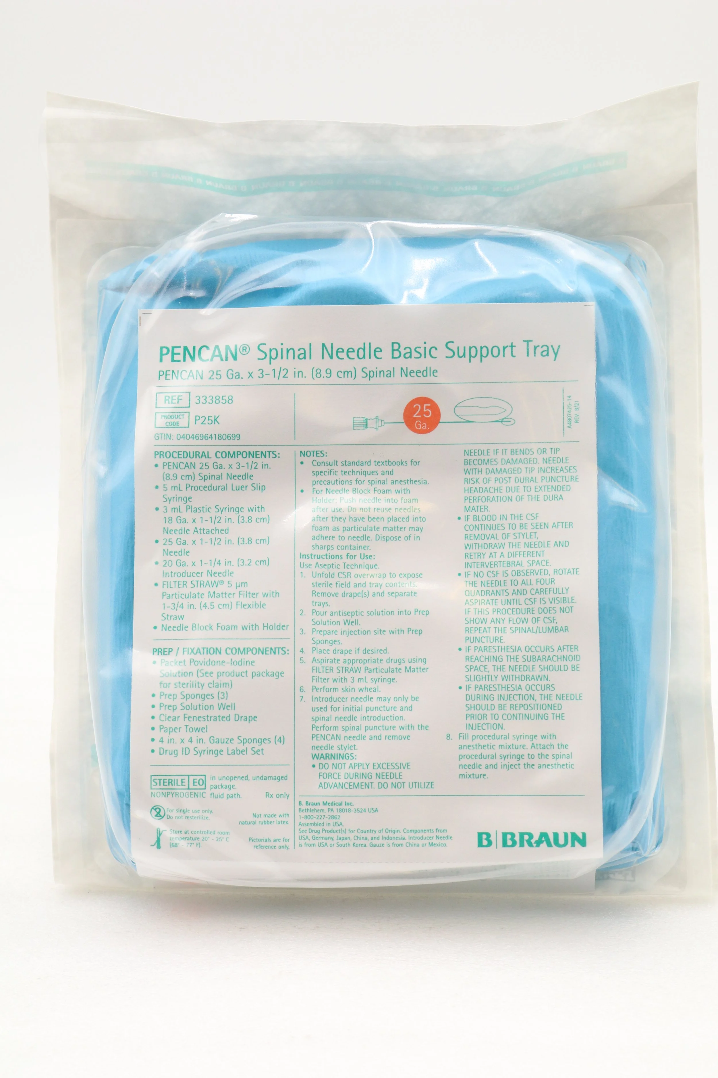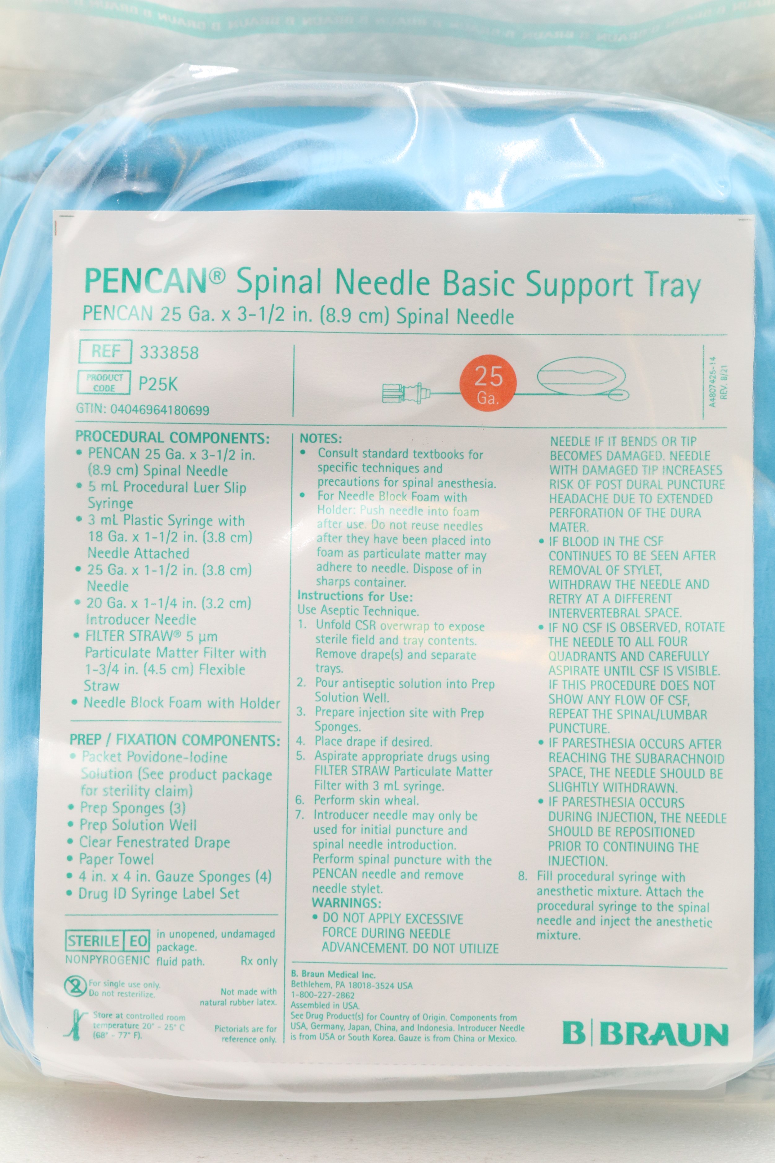 BRAUN | 333858 | SHORTDATE | BOX OF 10 | PENCAN Spinal Needle Basic Support Tray 25Ga x 3-1in