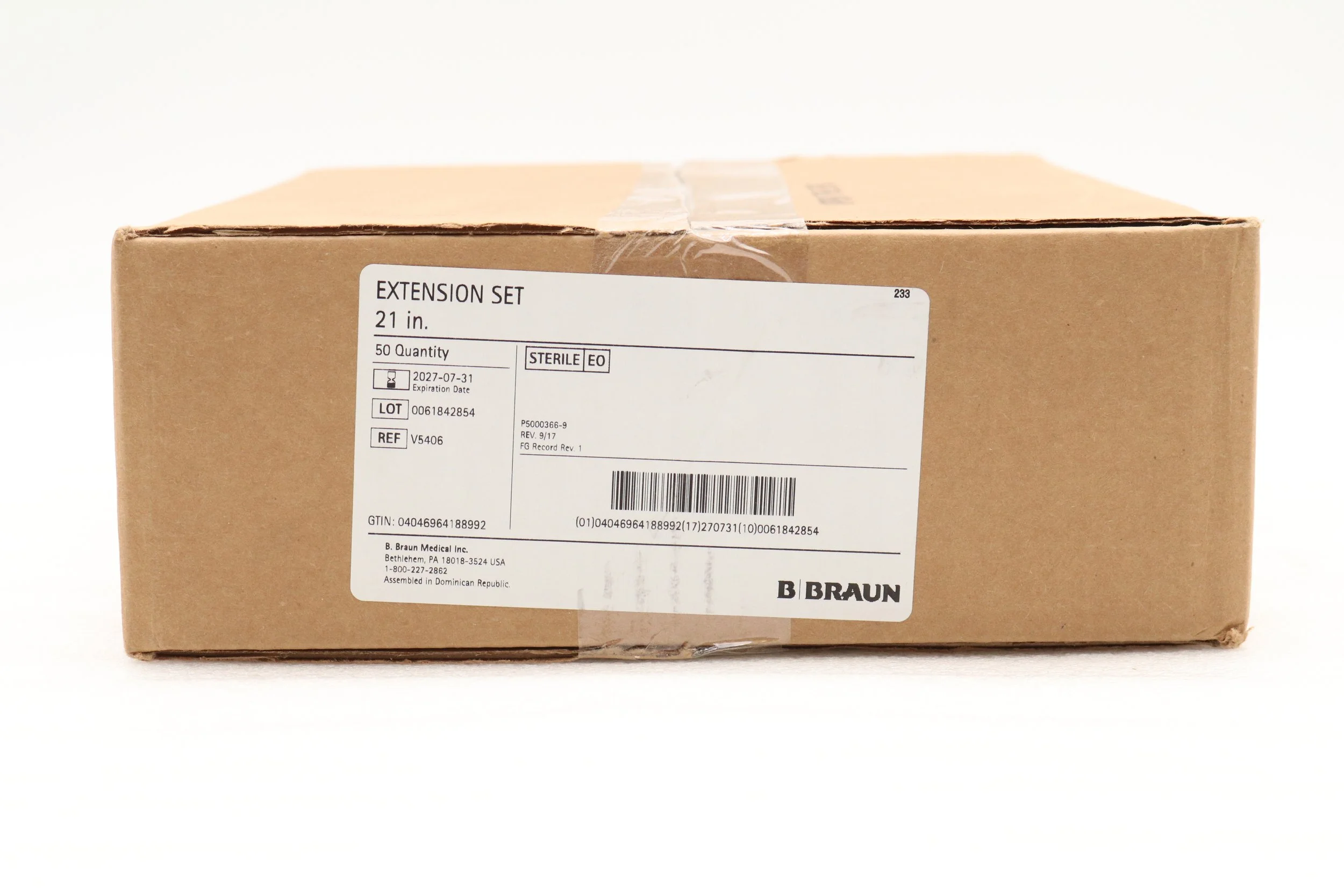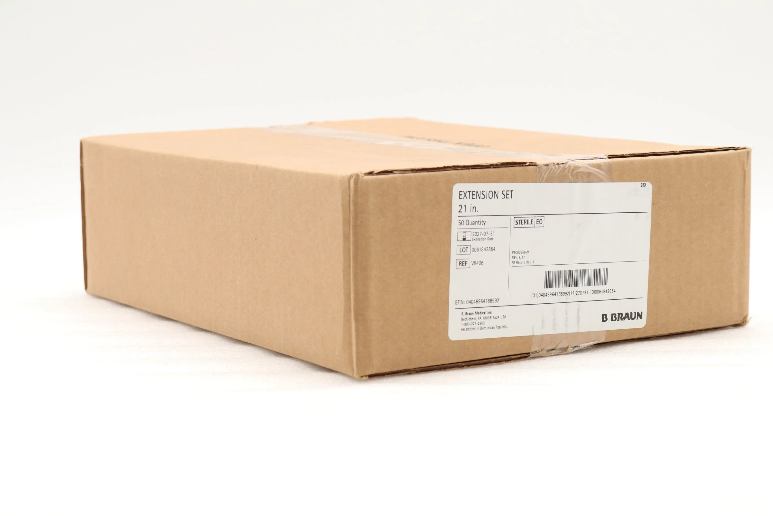 Braun | V5406 | IN-DATE | BOX OF 50 | Standard Bore Extension Sets, Female luer connector, distal SPIN-LOCK connector. Priming volume: 3 mL. Length 21 in. (52.5 cm)