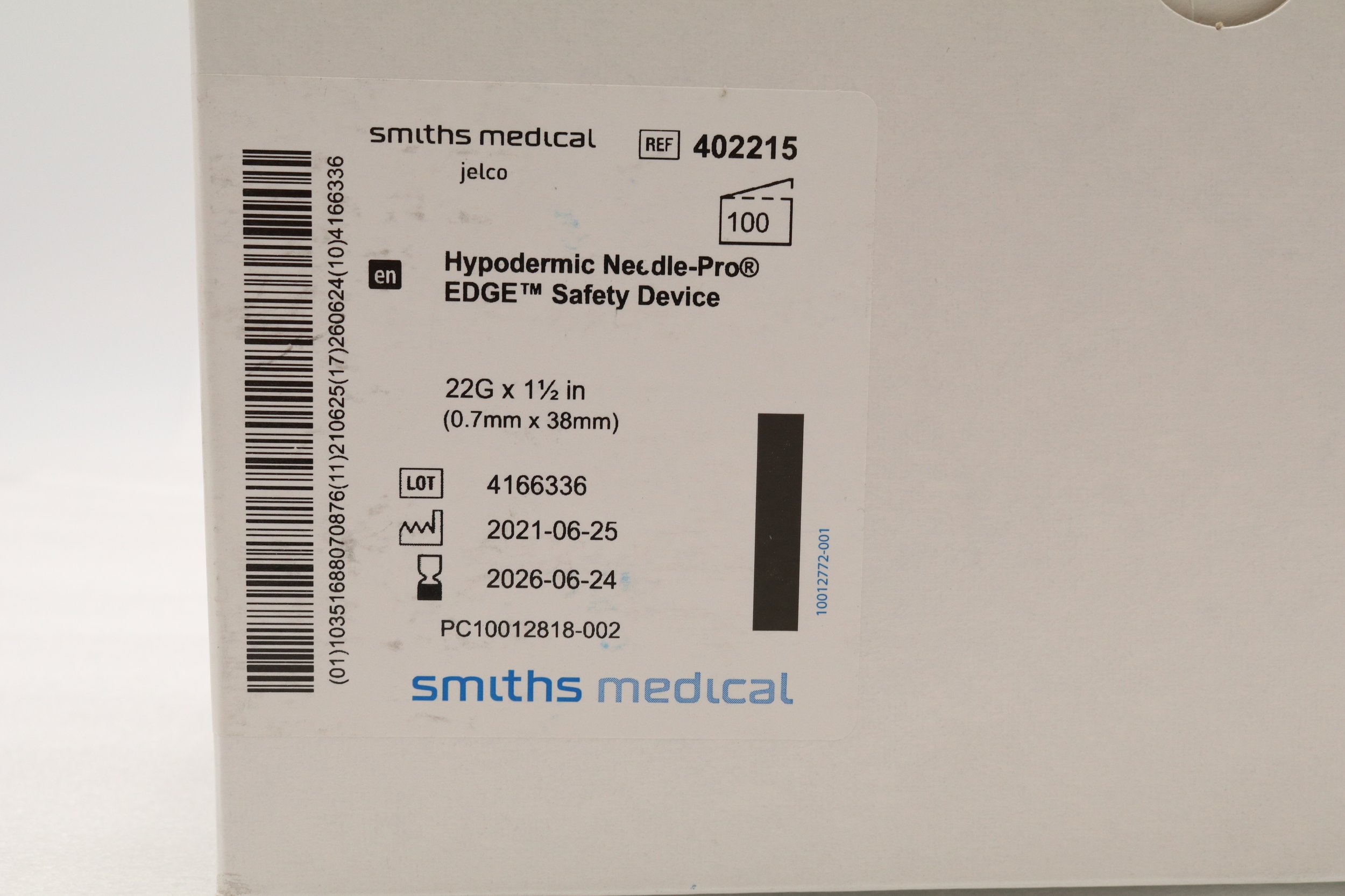 SMITHS MEDICAL | 402215 | BOX OF 100 | Hypodermic Needle-Pro Edge Safety 22G x 1.5"