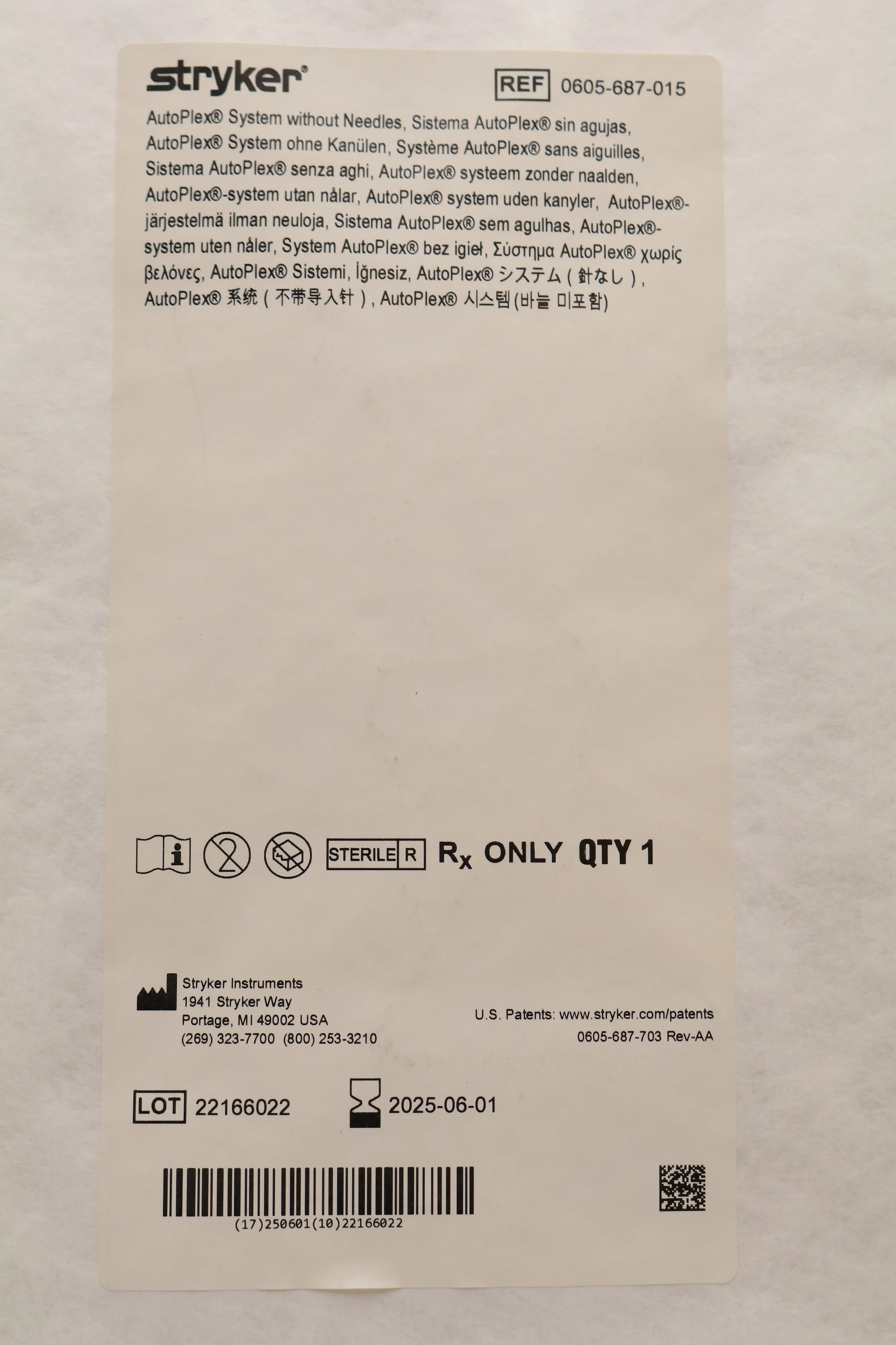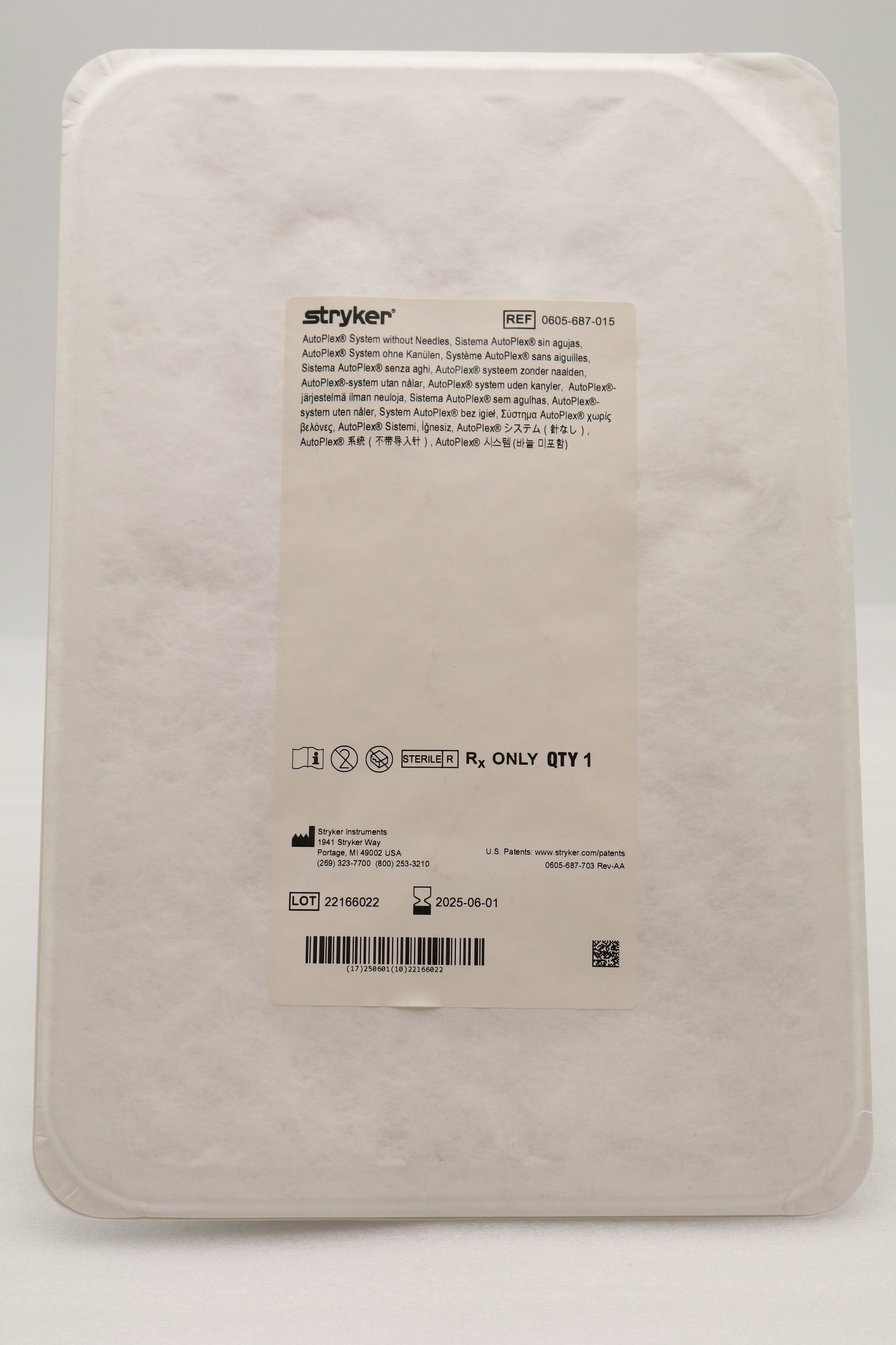 STRYKER | 0605-687-015 | SHORT DATE | EACHES | AUTOPLEX SYSTEM WITHOUT NEEDLES