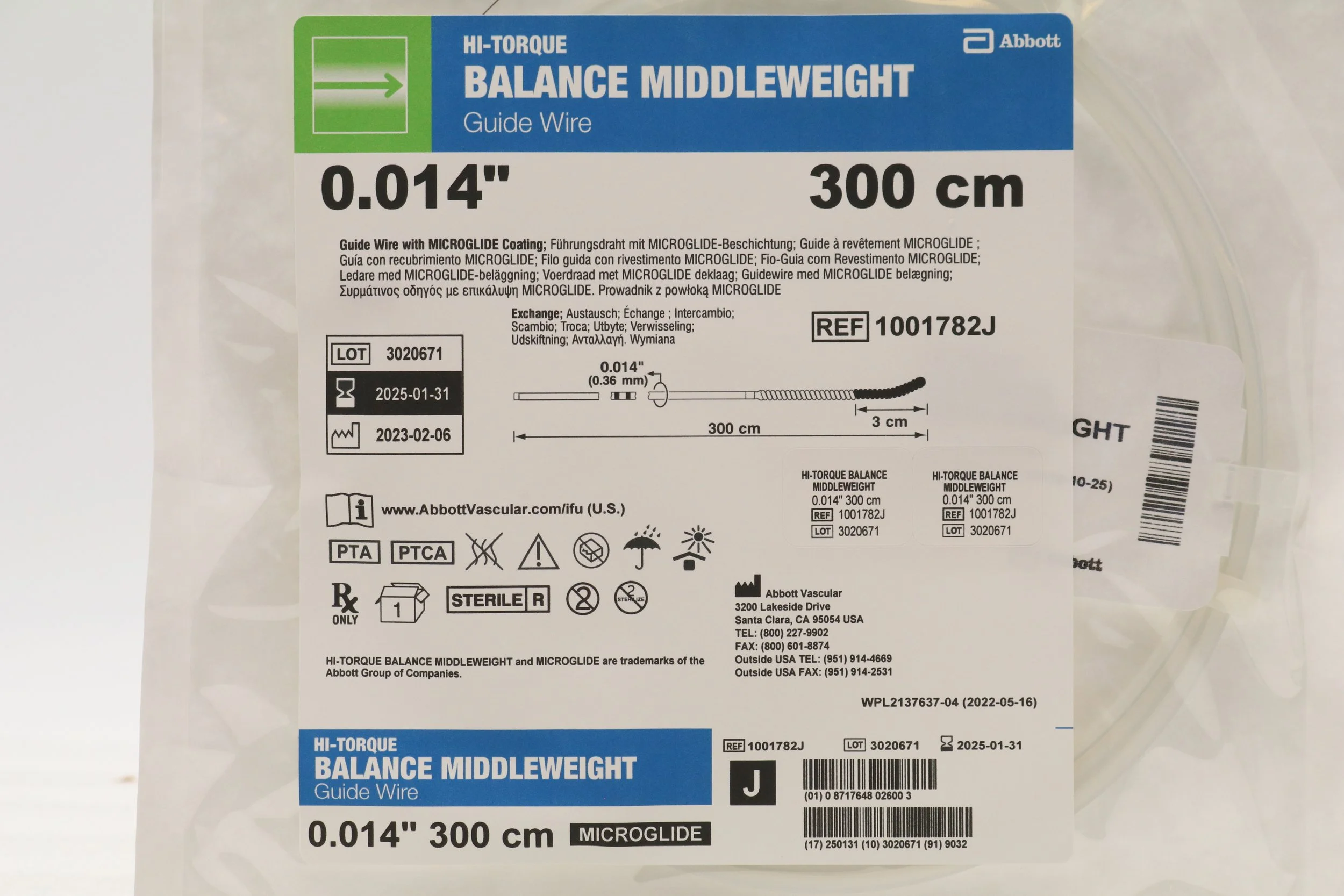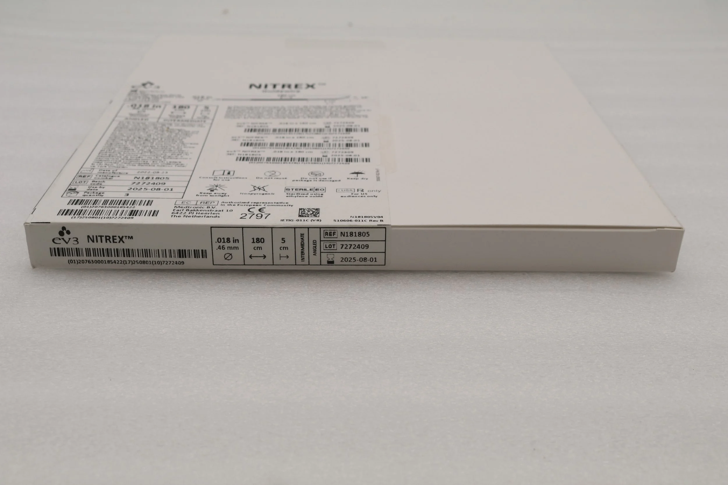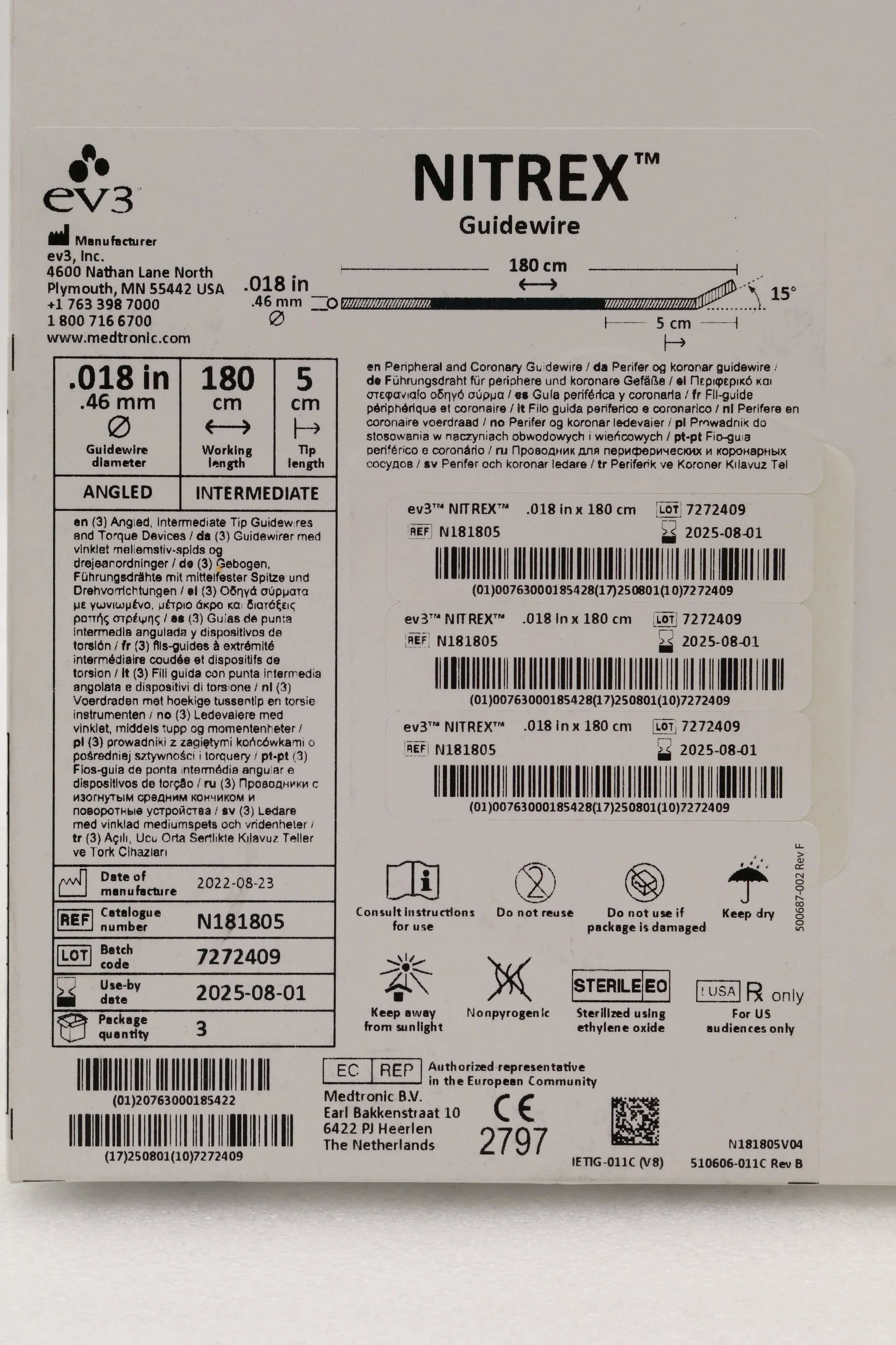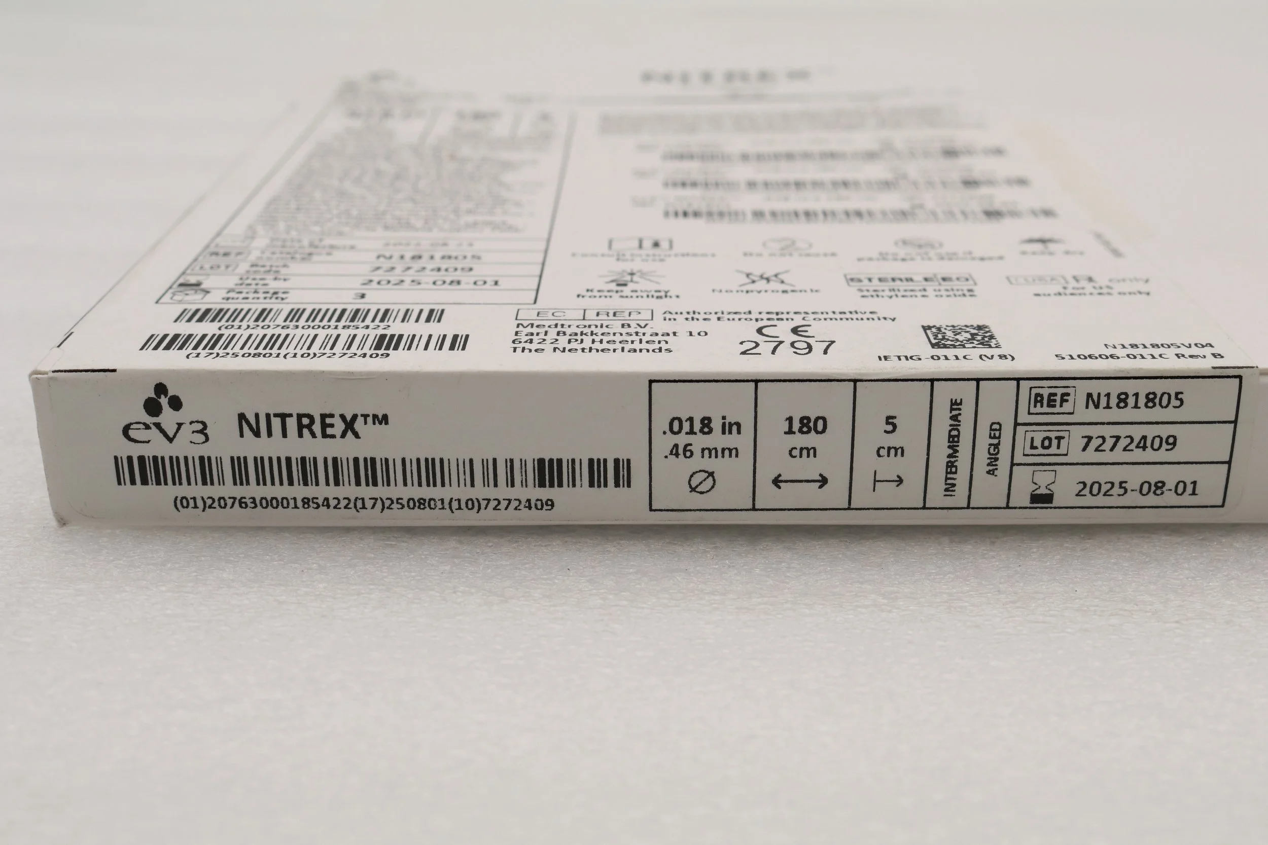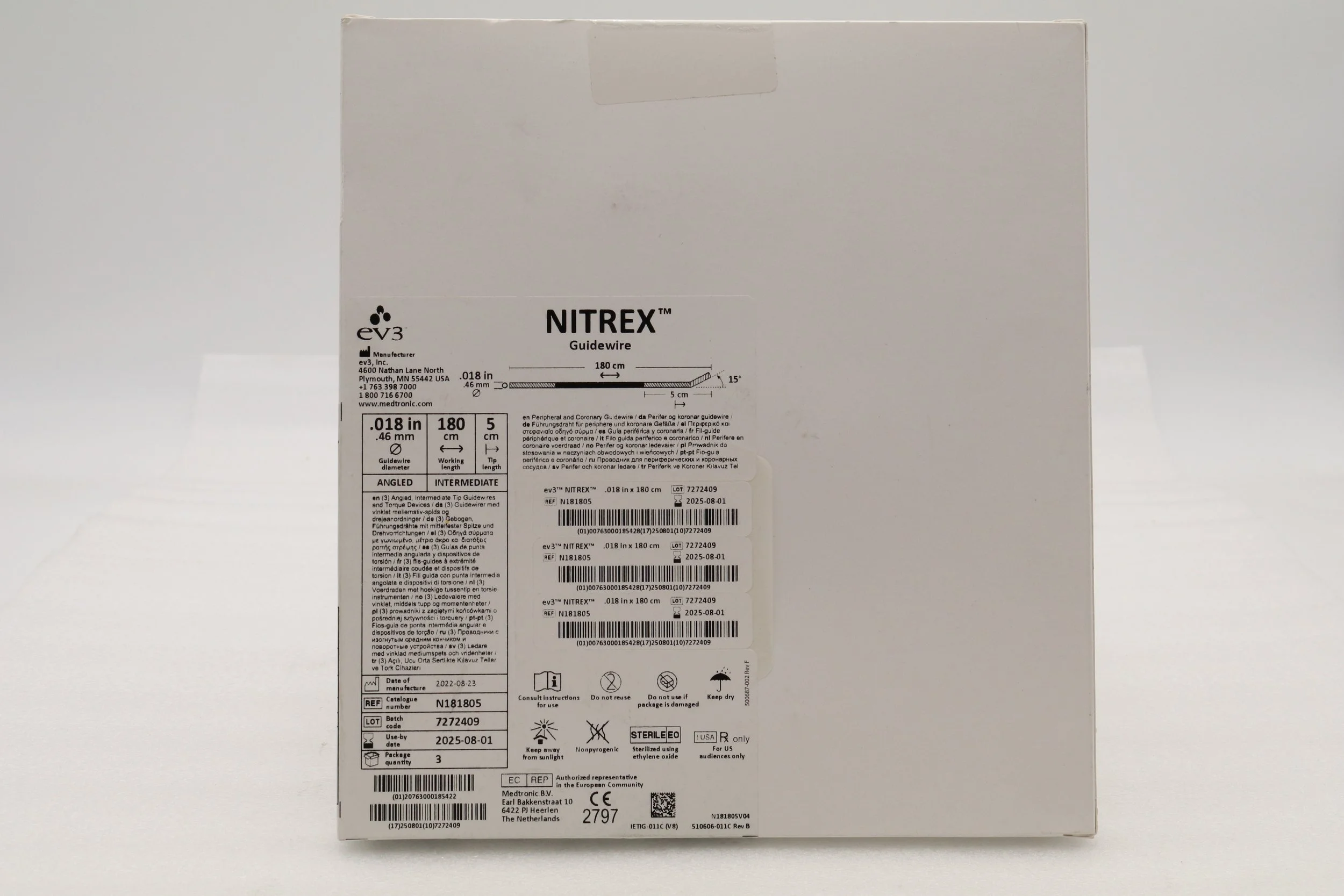 EV3 | N181805 | SHORT DATE | BOX OF 3 | Nitrex Guidewire: 0.018" x 180cm, Angled