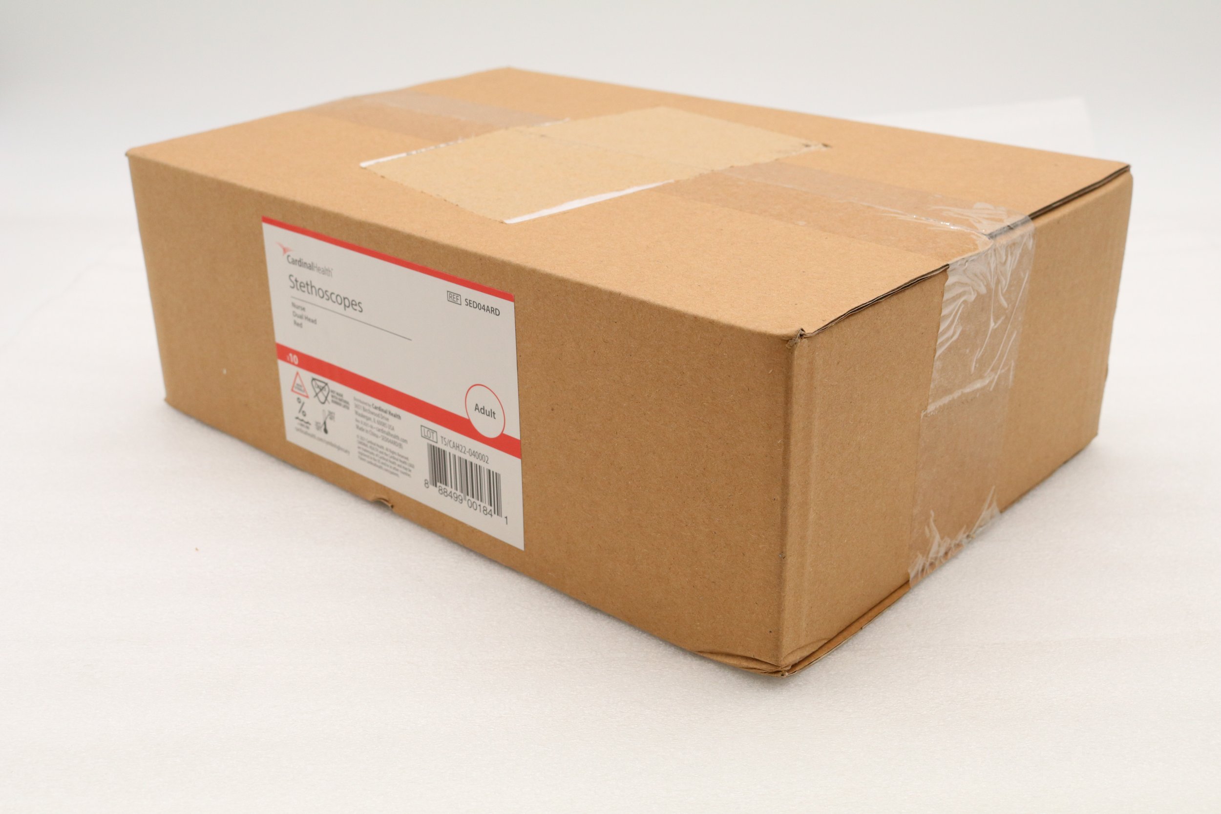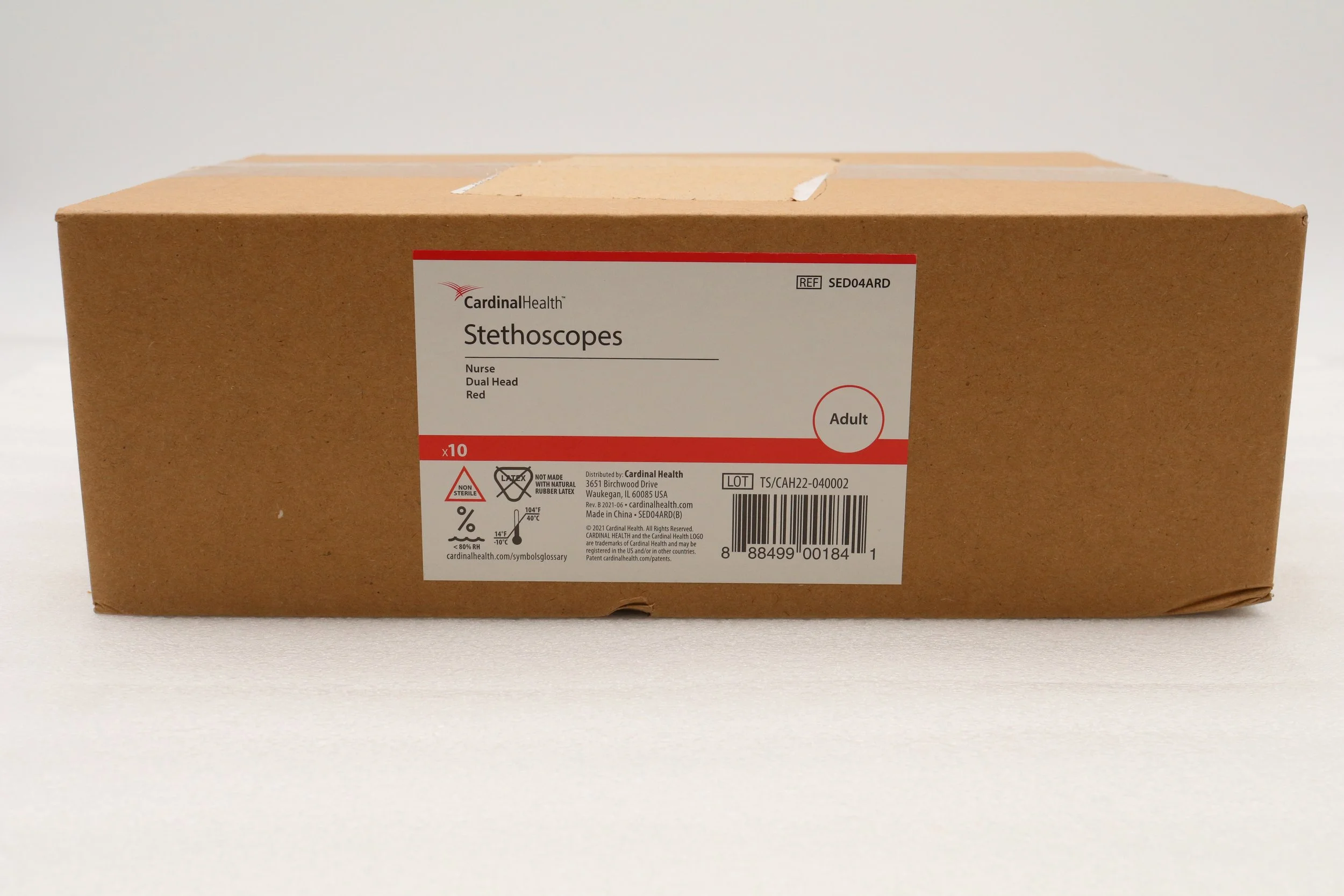 Cardinal Health | SED04ARD | BOX OF 10 | Dual-Head Adult Stethoscopes - STETHOSCOPE, ADULT, DUAL HEAD, 22", RED