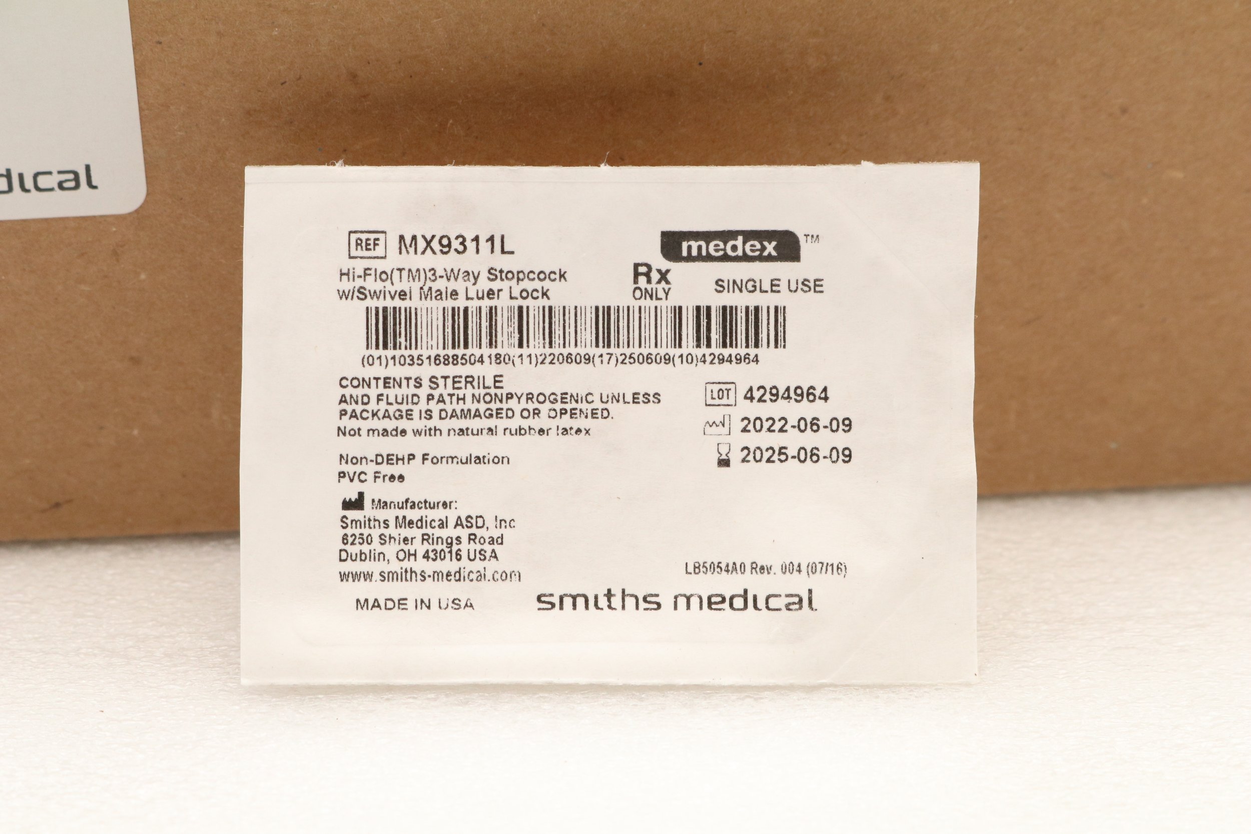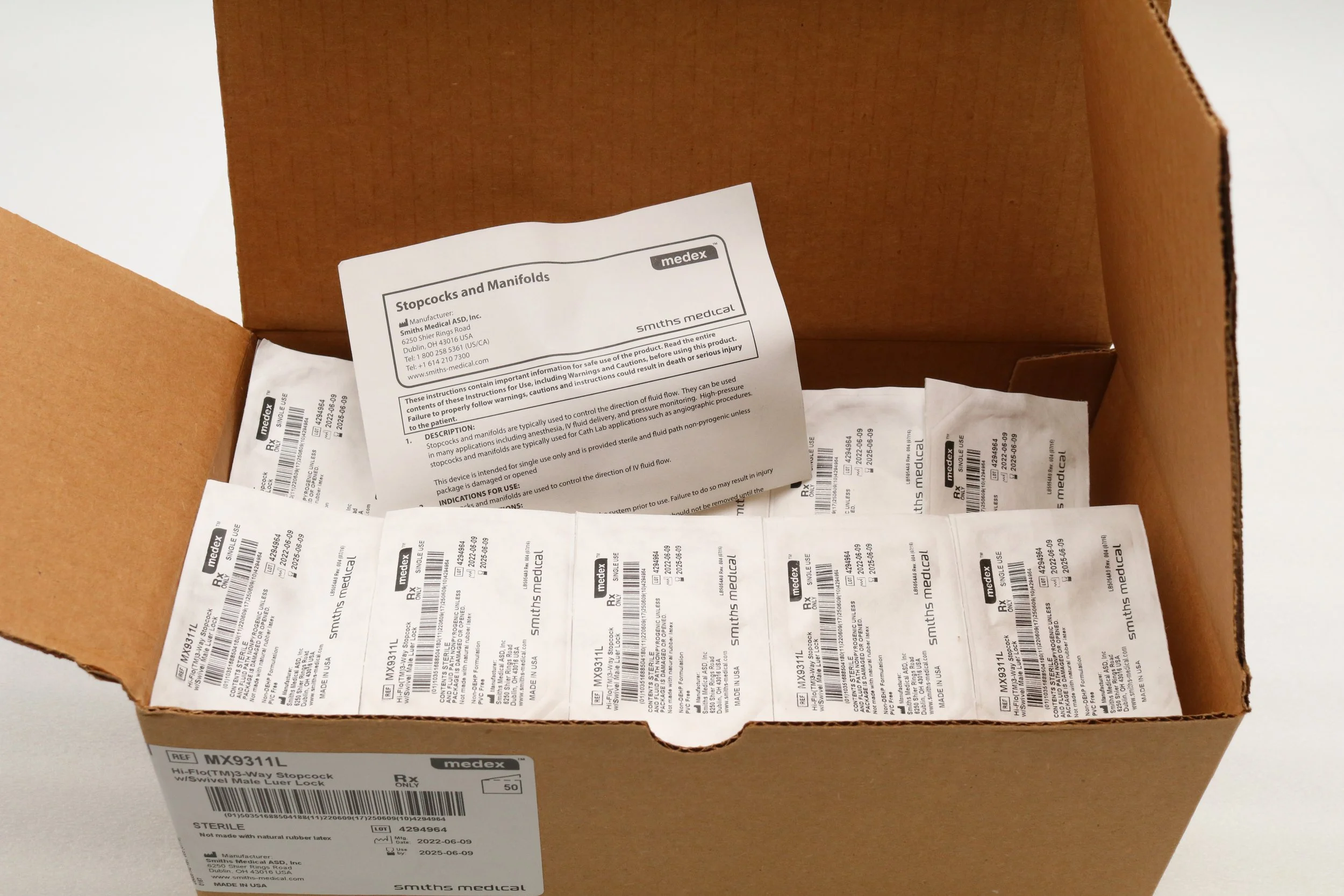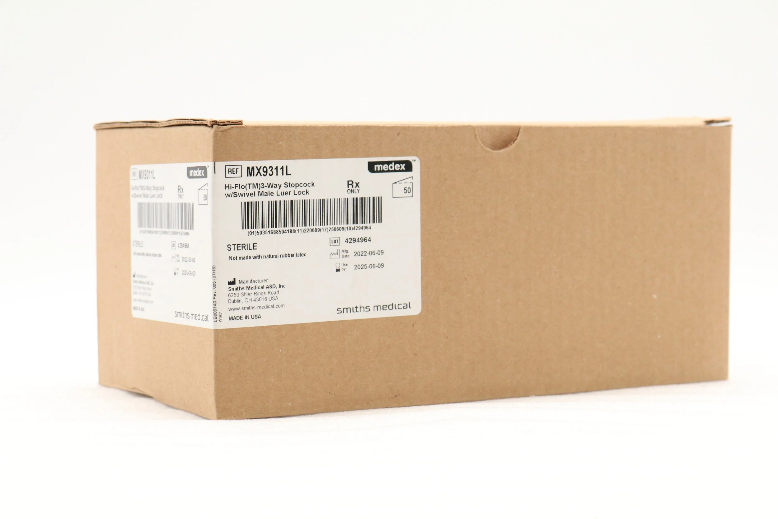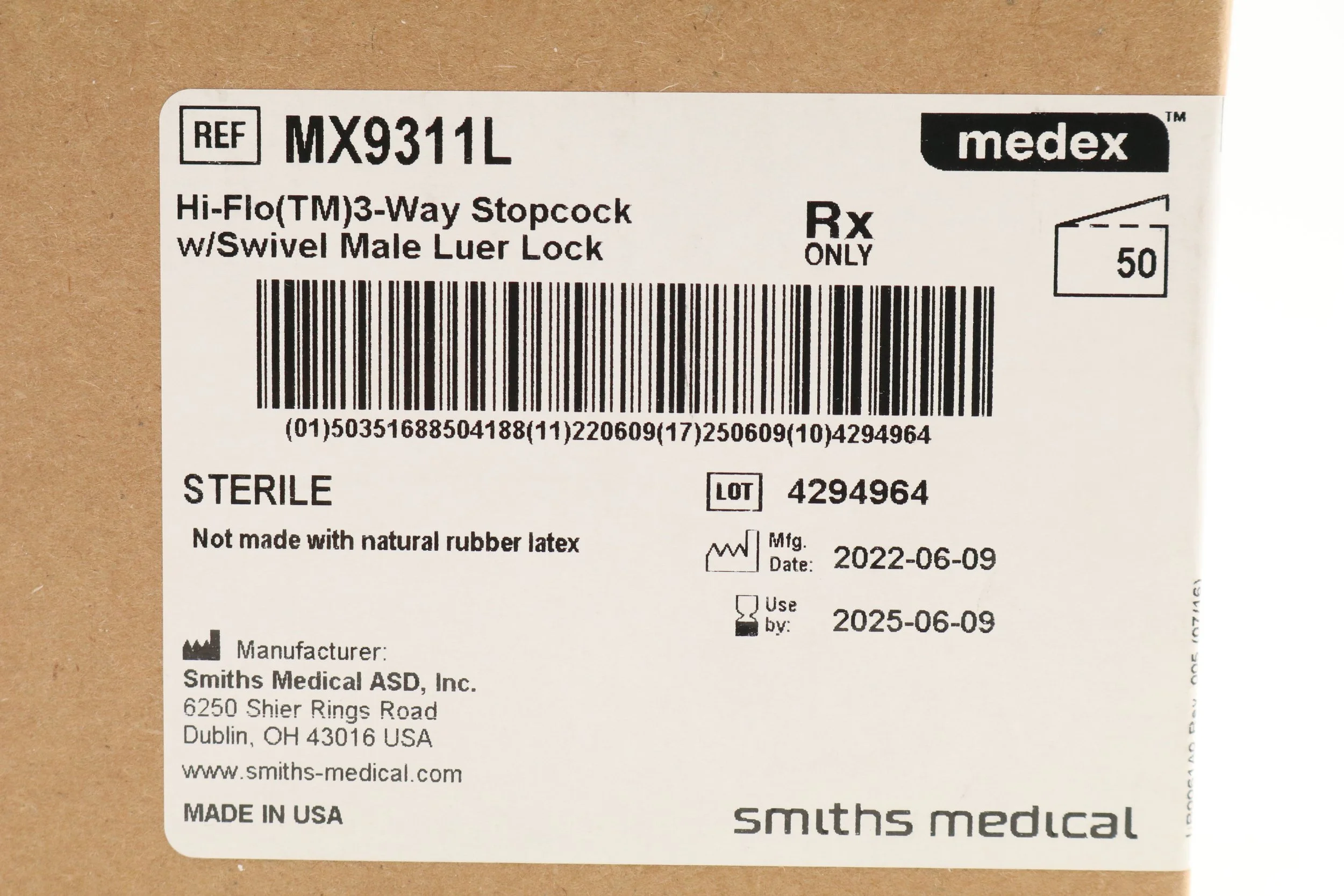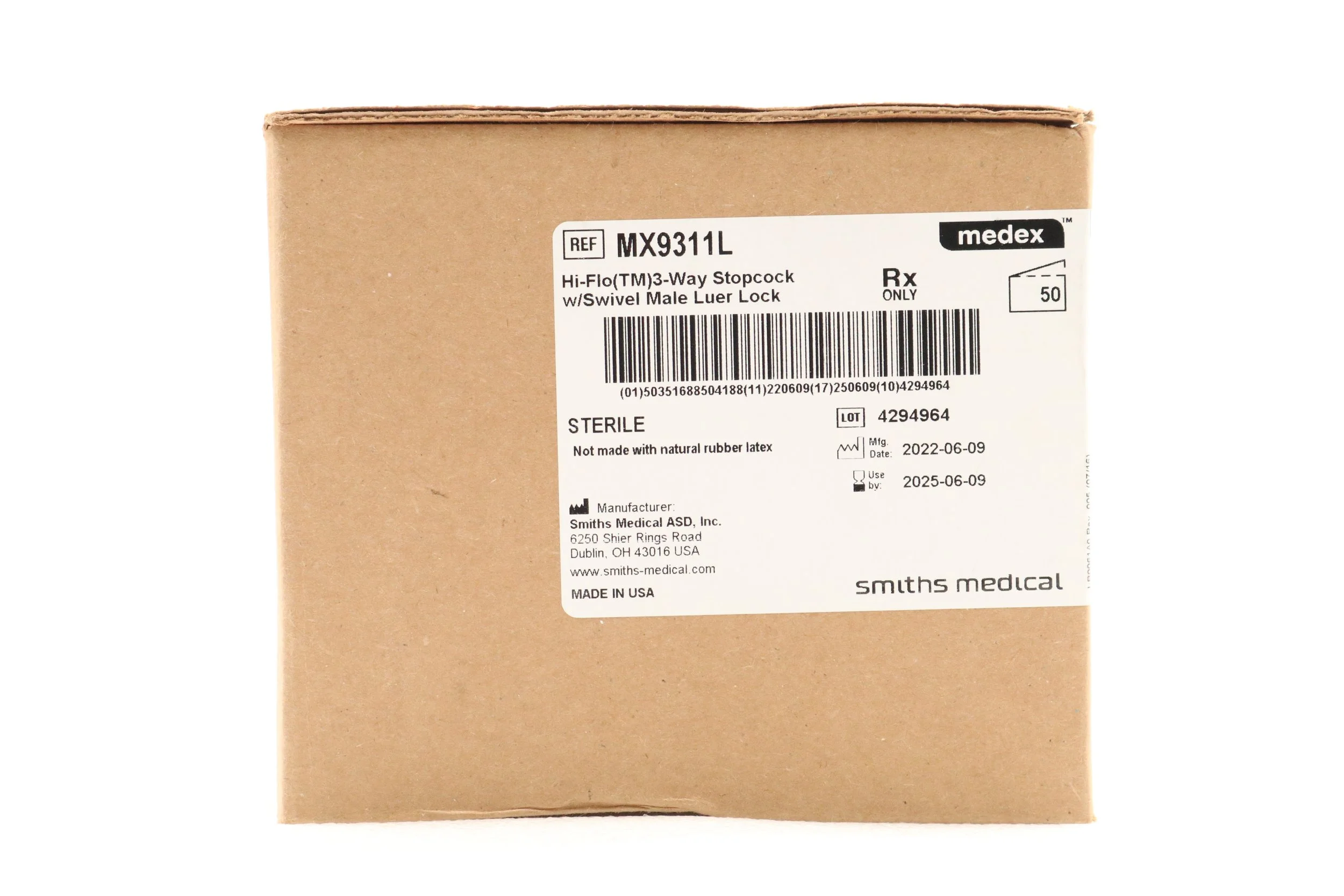 Smiths Medical | MX9311L | BOX OF 50 | Large Bore Stopcocks - Stopcock, 3-Way, High Flow, Swivel, Male Luer Lock