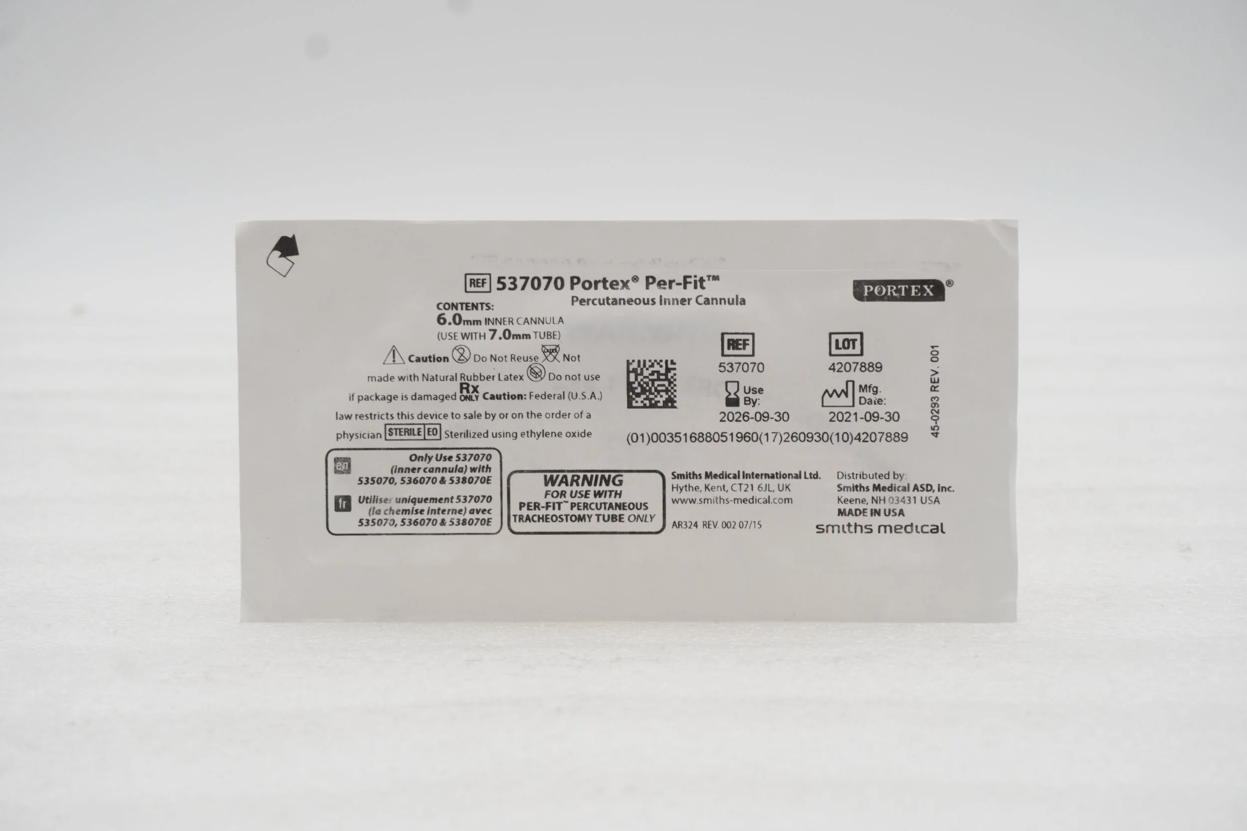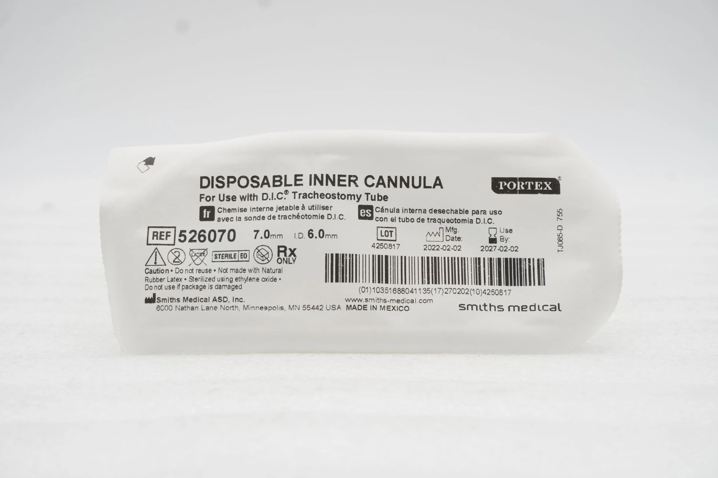 Smiths Medical | 526060 | EACHES | CANNULA INNER TRACHEOSTOMY REPLACEMENT SIZE 5MM FLEXIBLE COLOR-CODED PORTEX DISPOSABLE NON-STERILE