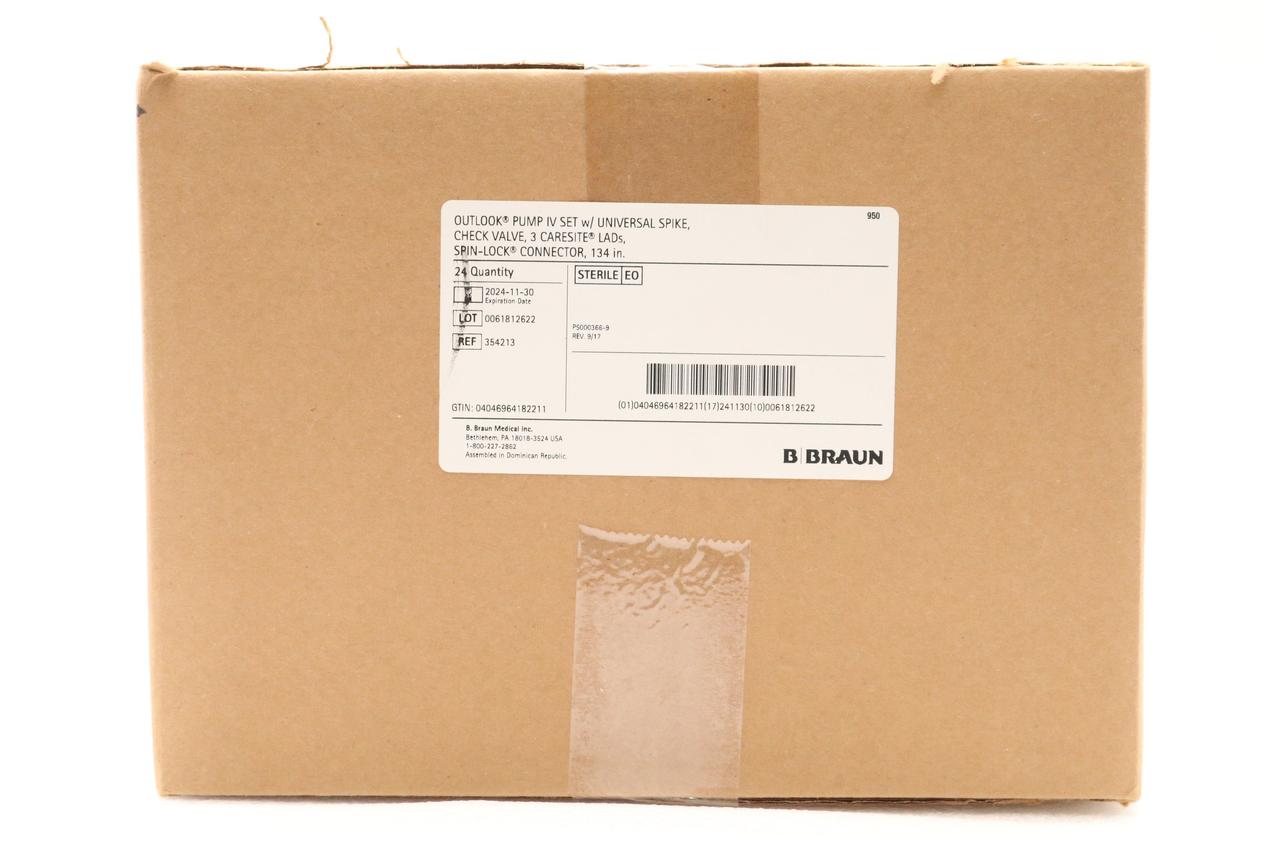 BRAUN | 354213 | SHORT DATE | BOX OF 24 | SET, IV, OUTLOOK, 15DROP W/3 CARESITE