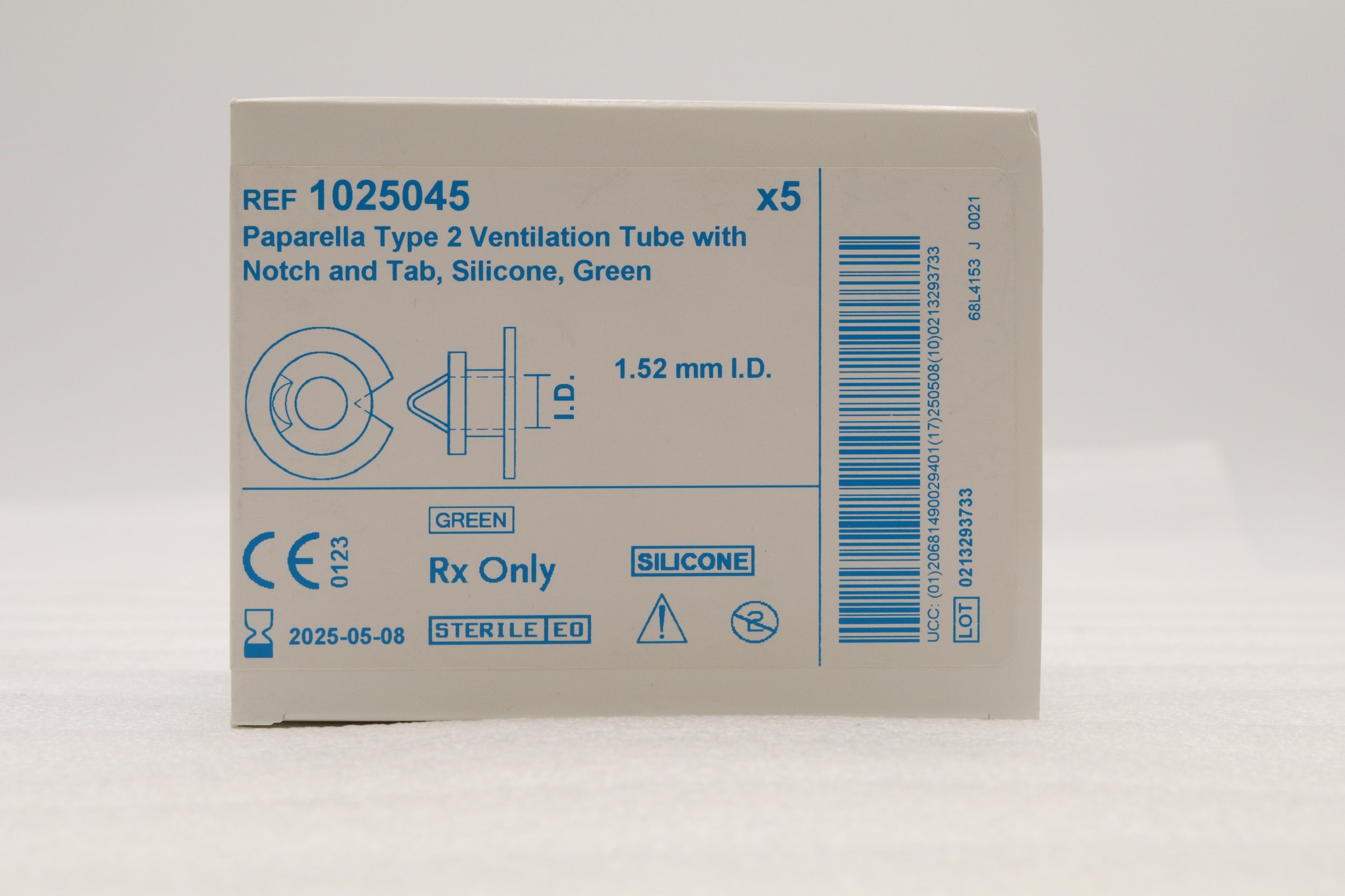 MEDTRONIC | 1025045 | BOX OF 5 | Paparella Ventilation Tube, Notch & Tab, Silicone 1.52mm