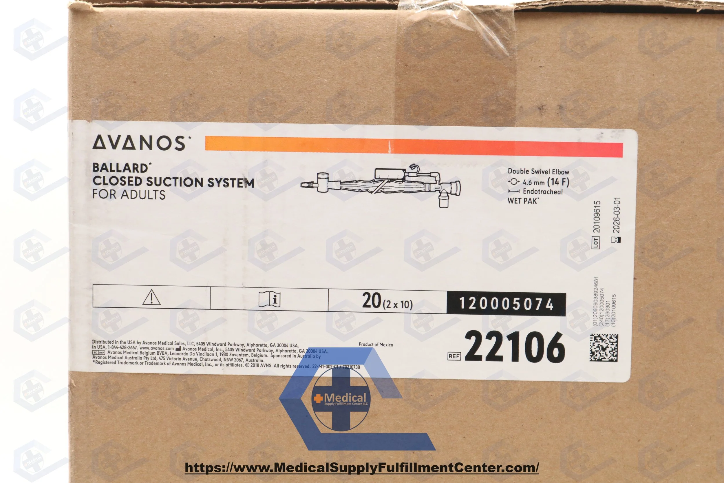 Avanos | 2210 | BOX OF 10 | Adult Trach Care Closed Suction System Kit - Adult Trach Care Closed Suction System Kit for Endotracheal Tube, Double Swivel Elbow, 14 Fr x 54 cm (Halyard)