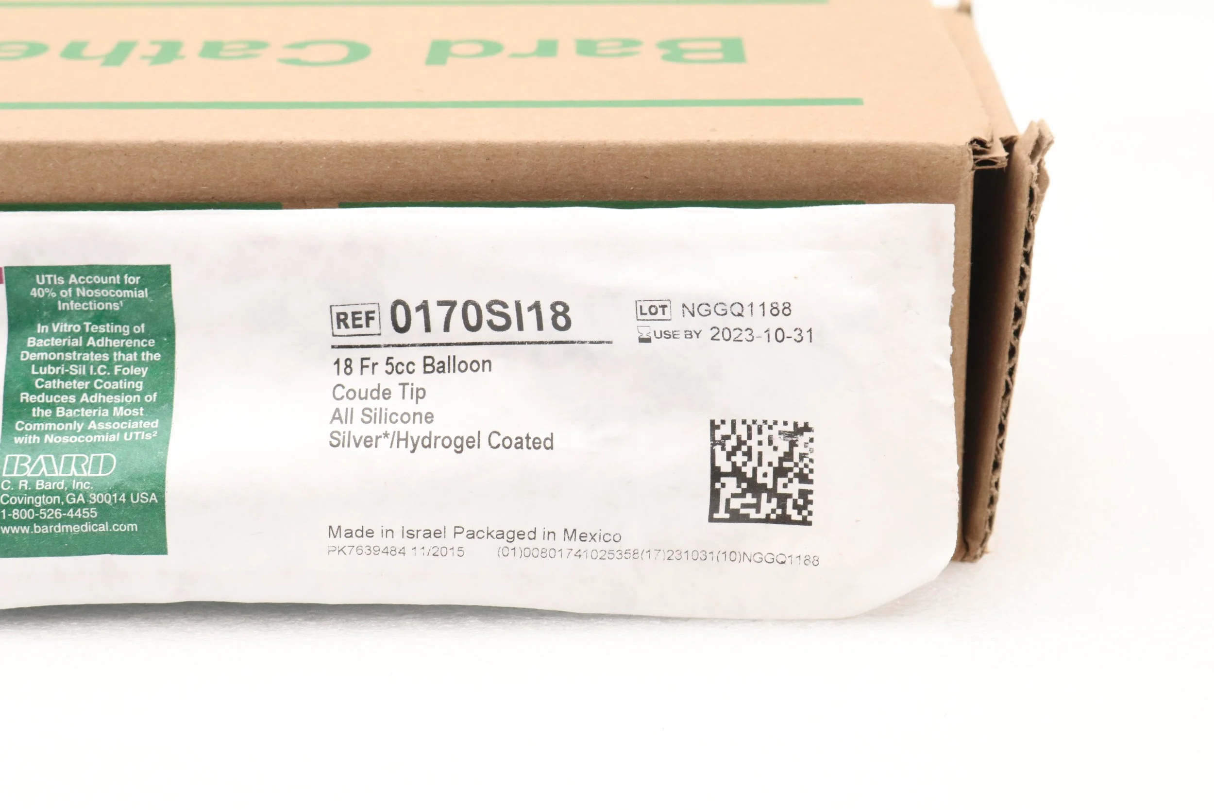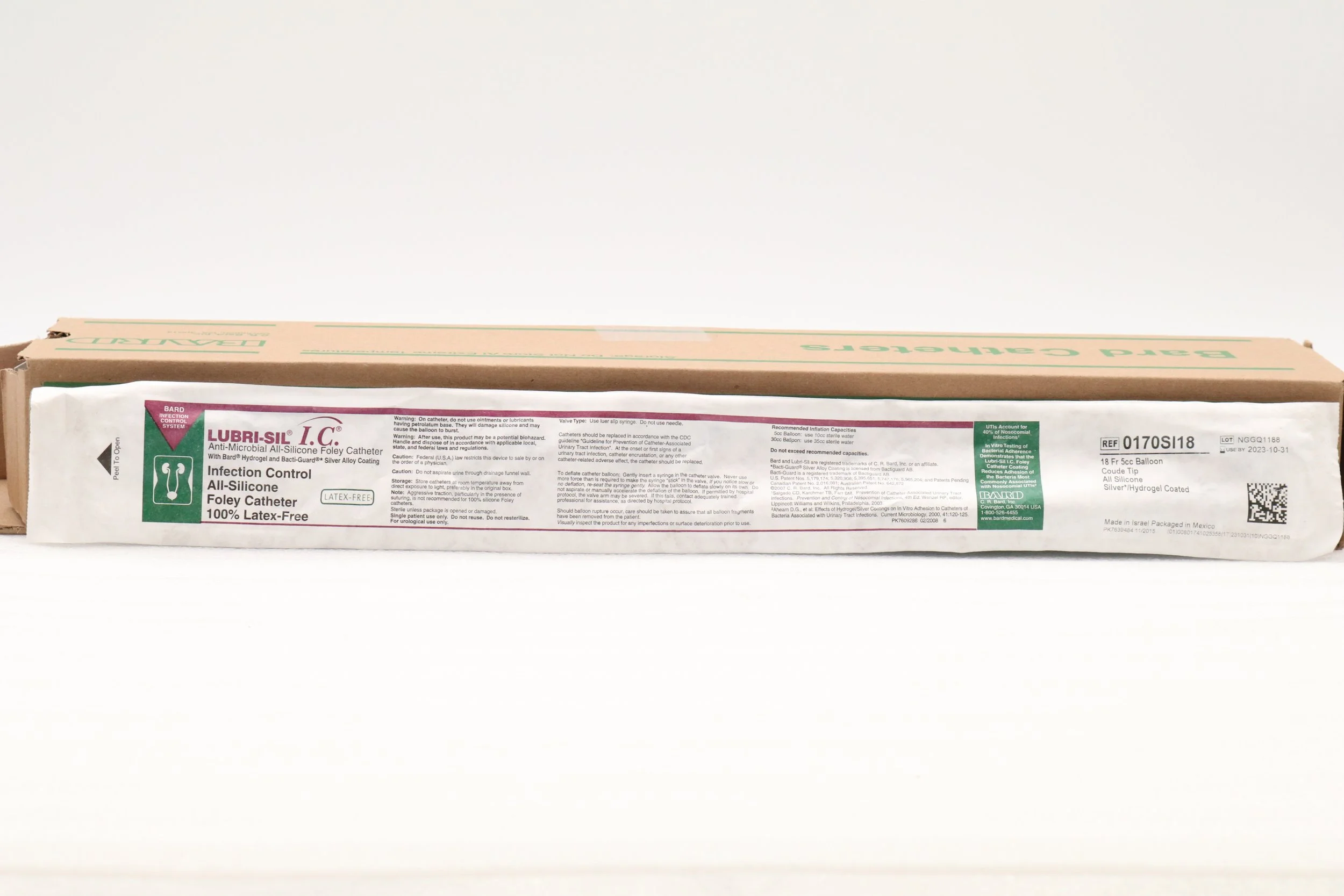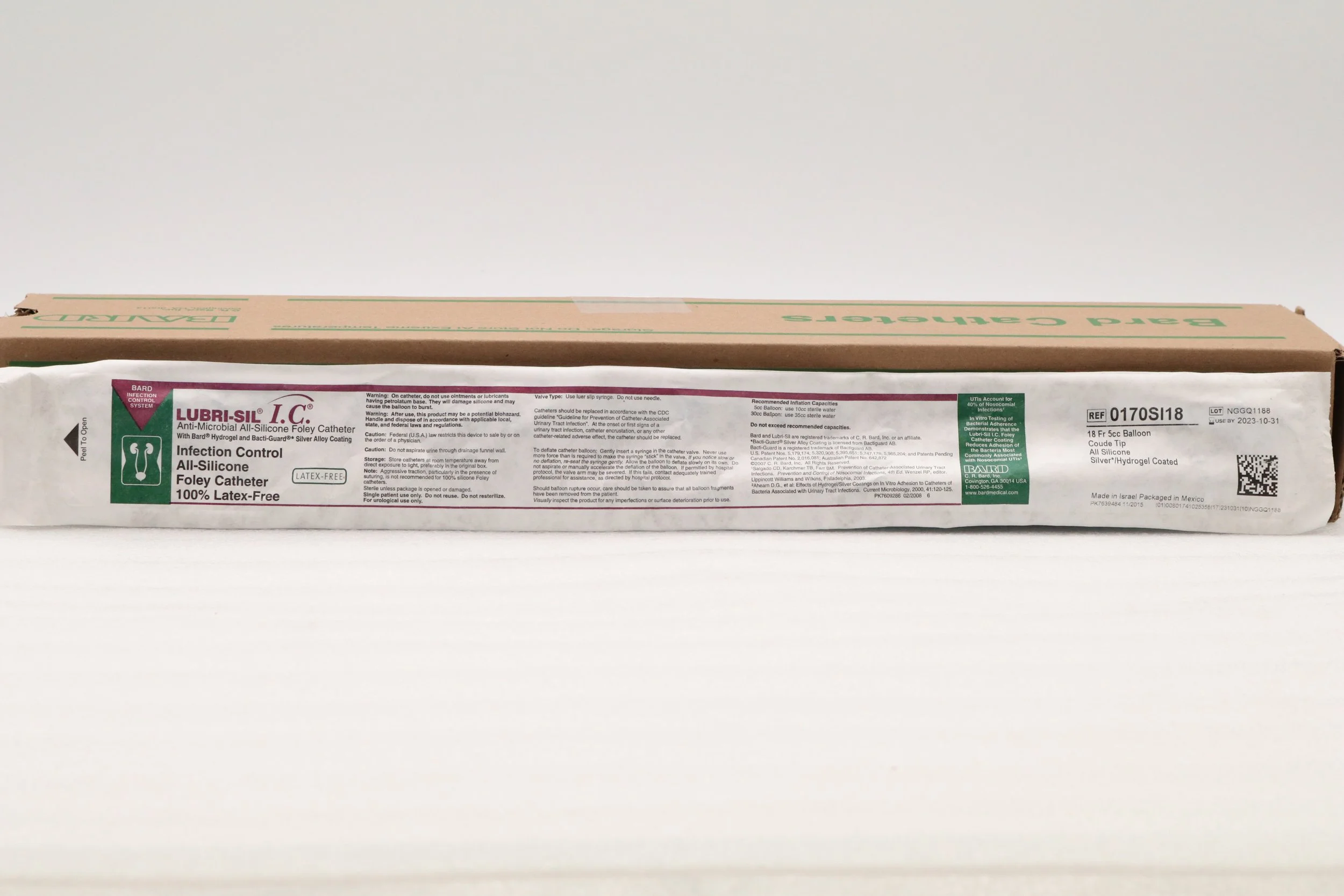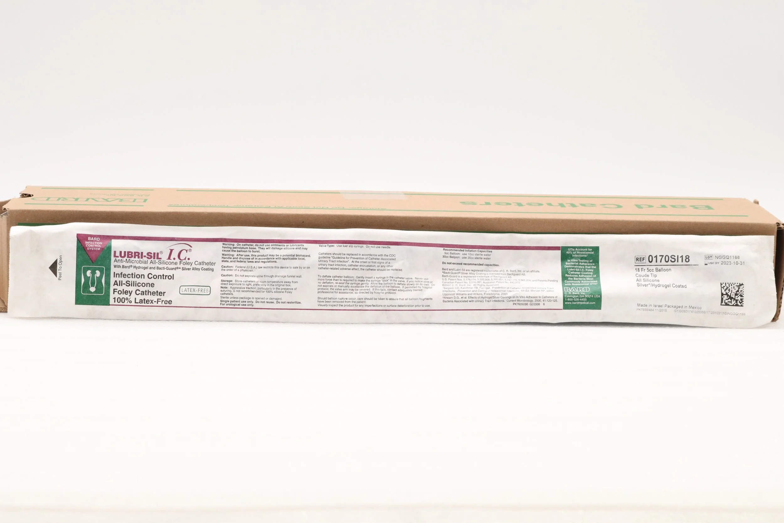 Bard | 0170SI18 | EXPIRED | BOX OF 12 | Lubri-Sil IC Foley Catheter 2-Way, Specialty, Silicone, Coude Tip, Balloon 5cc, 18F