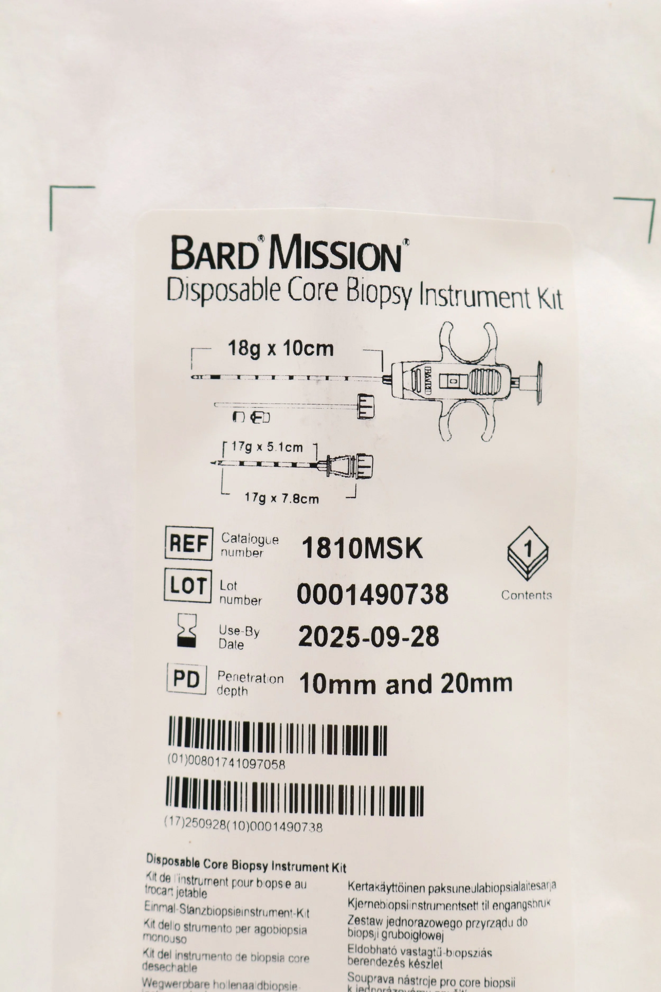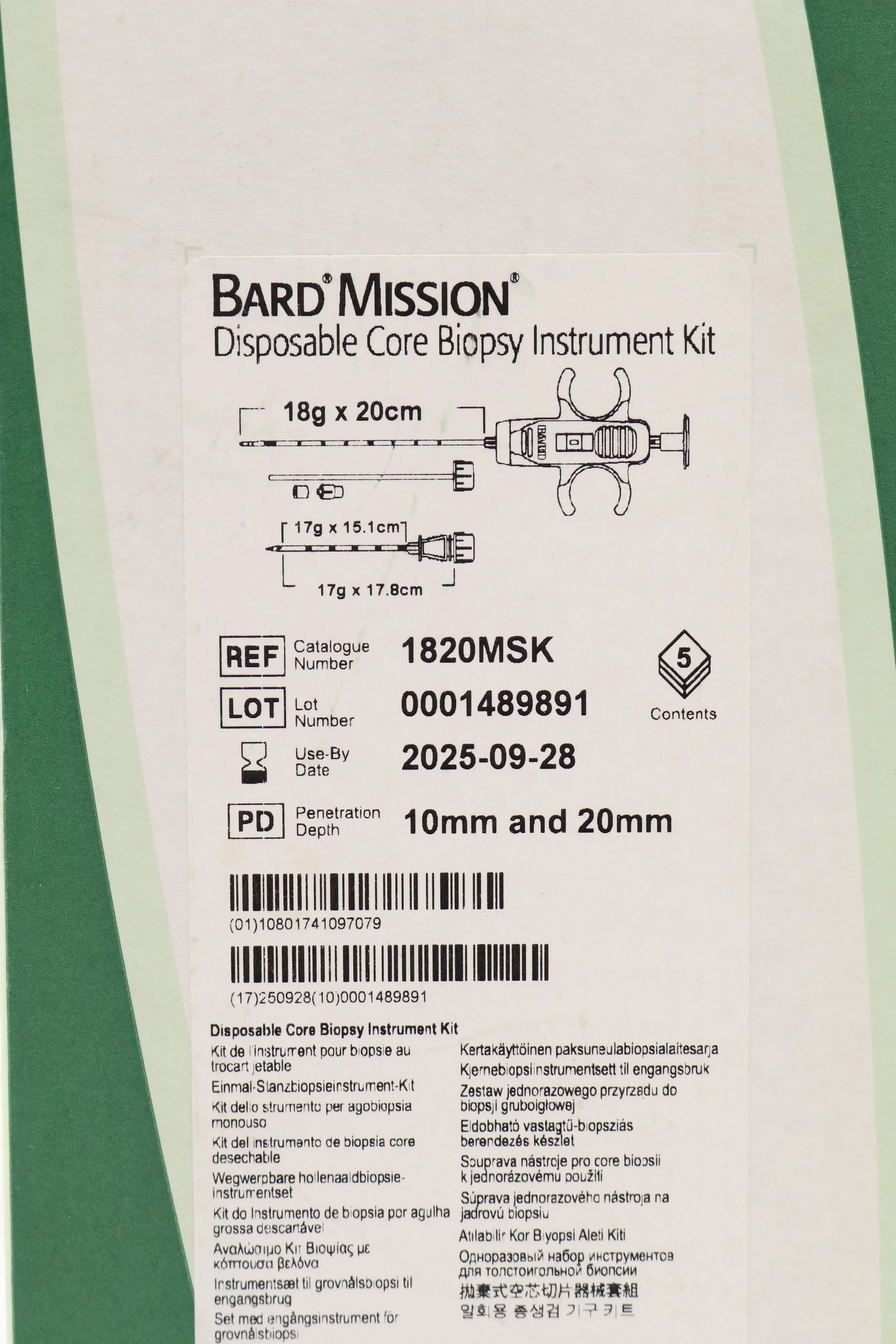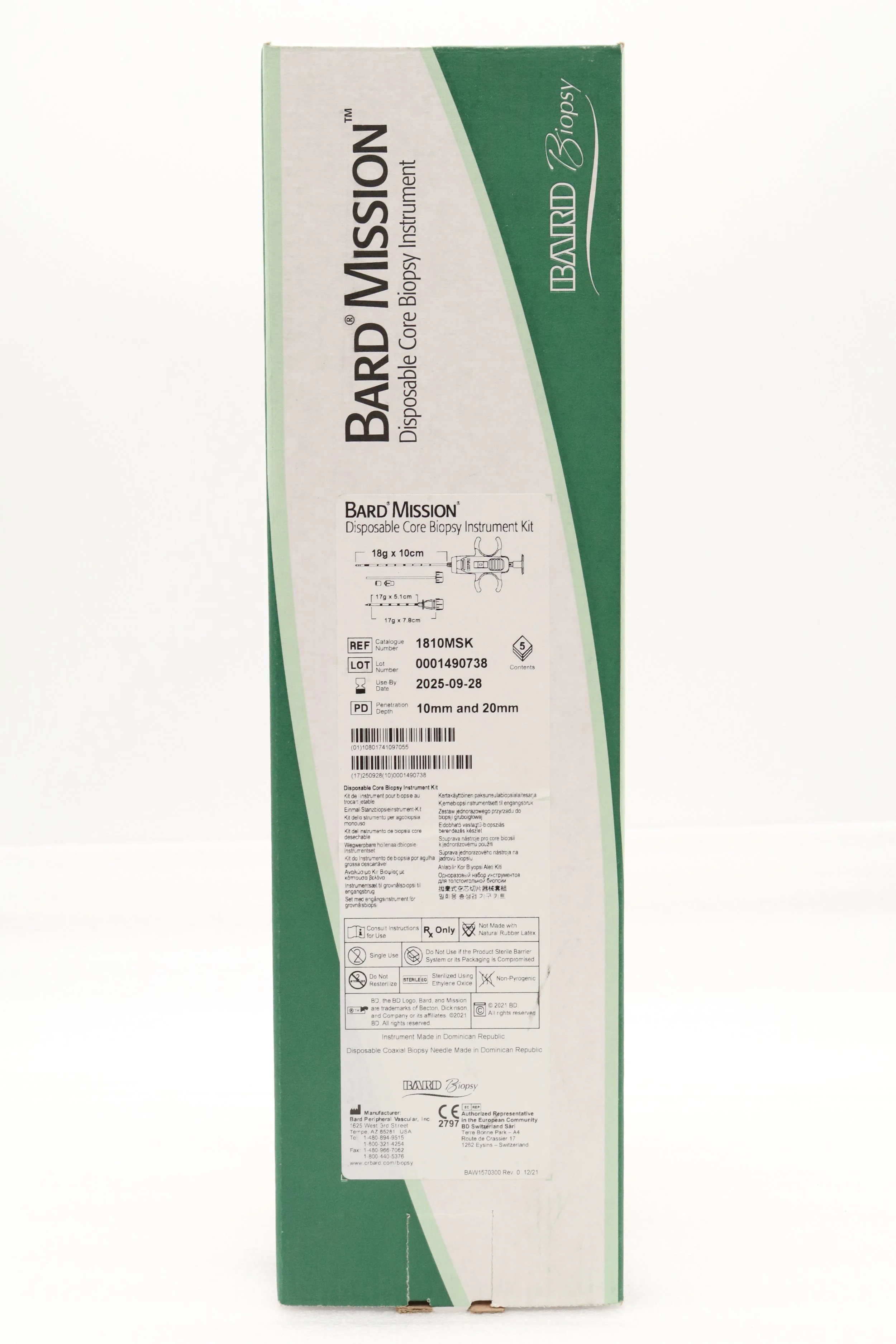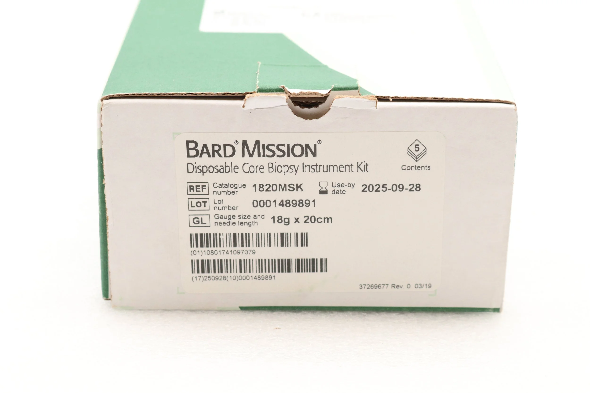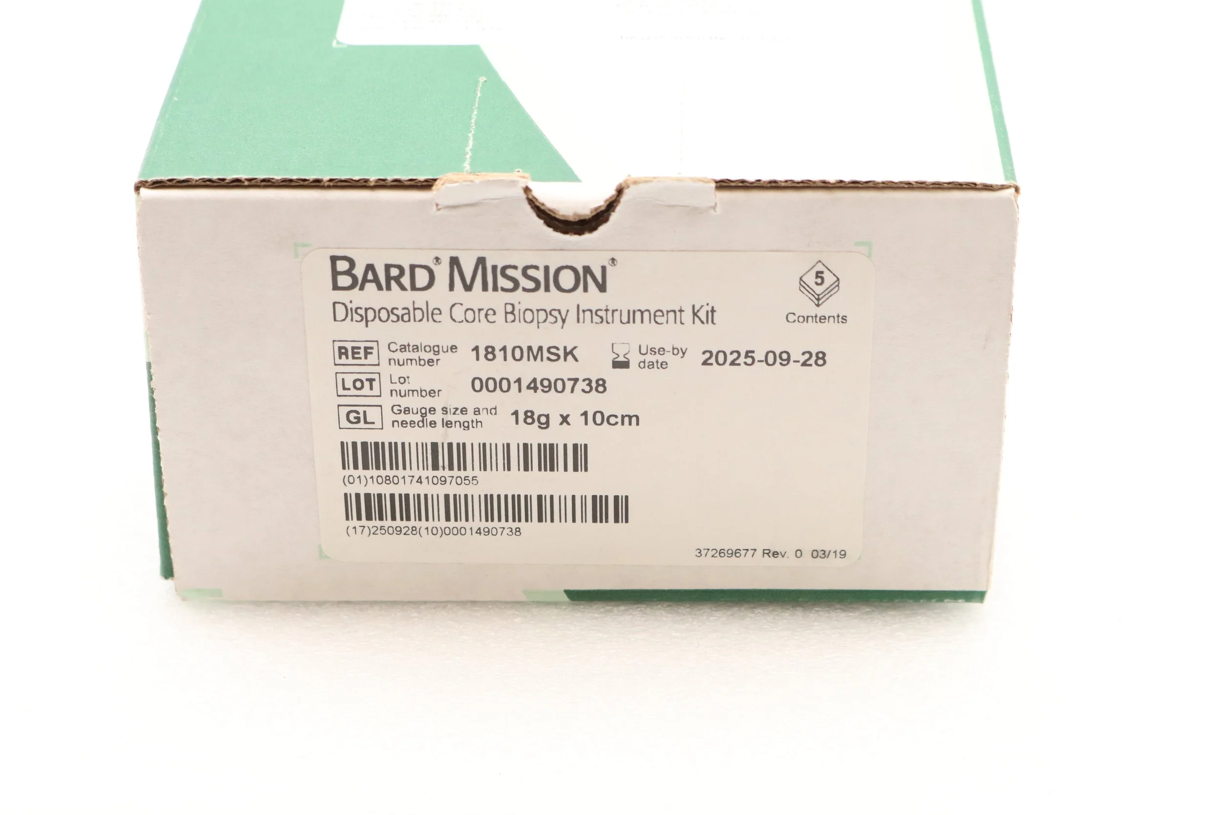 Bard | 1810MSK | SHORT DATE | BOX OF 5 | Mission Disposable Core Biopsy Kit 18G x 10cm