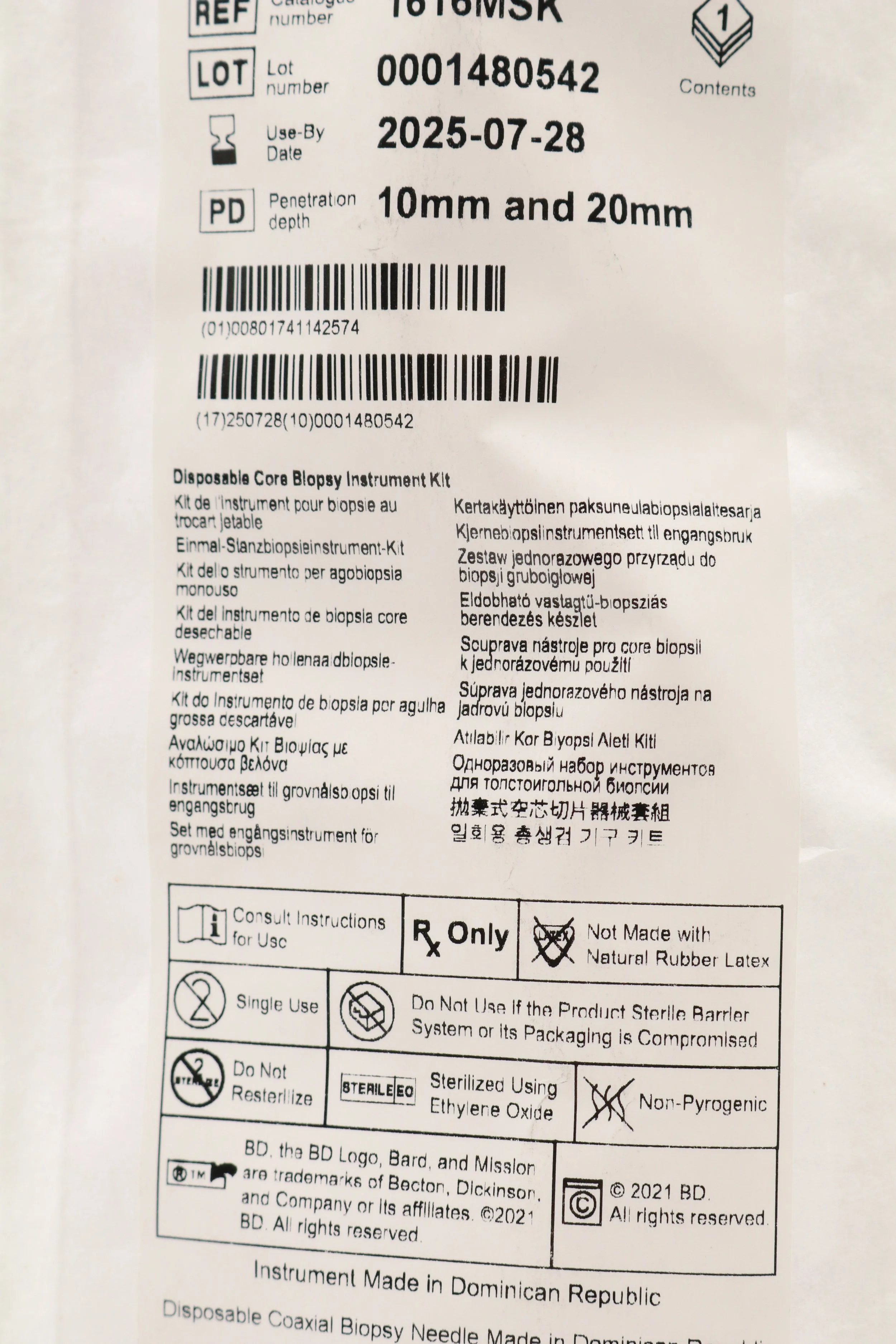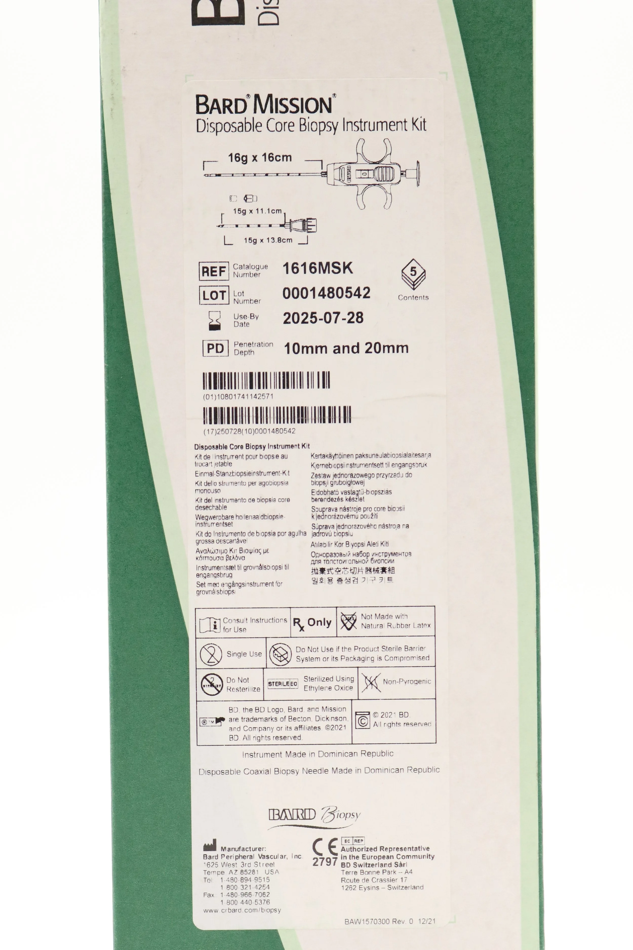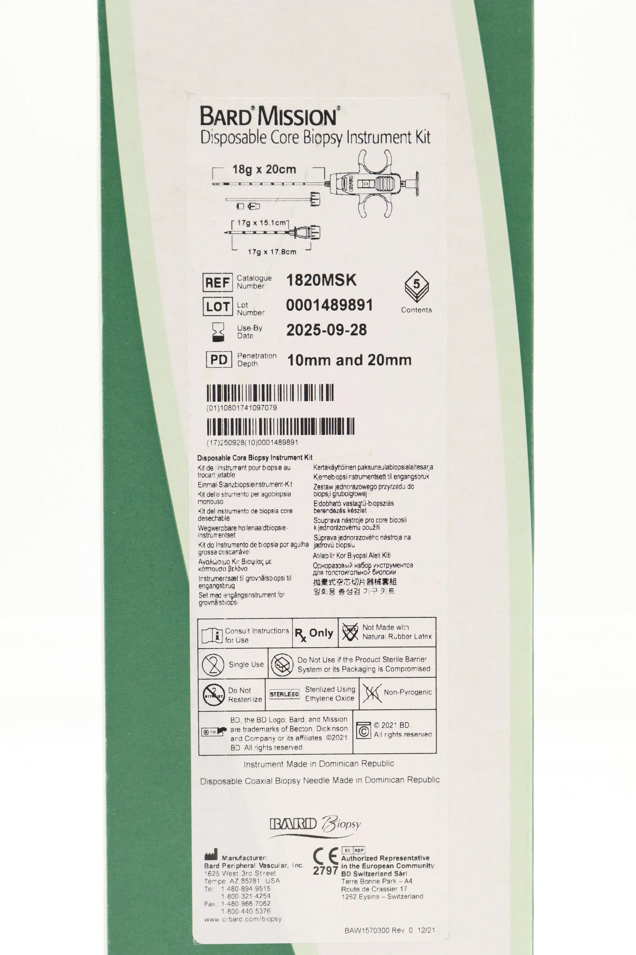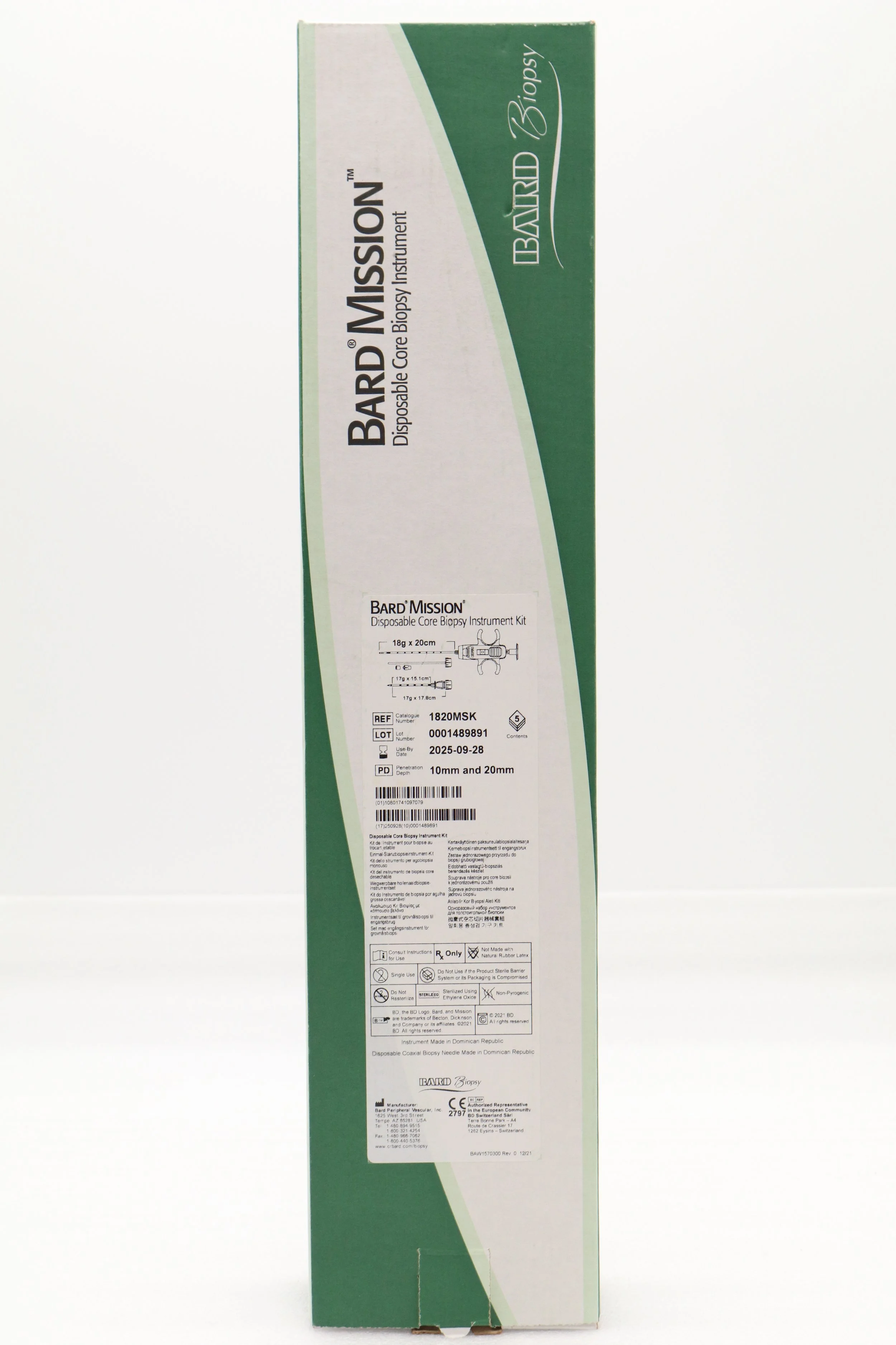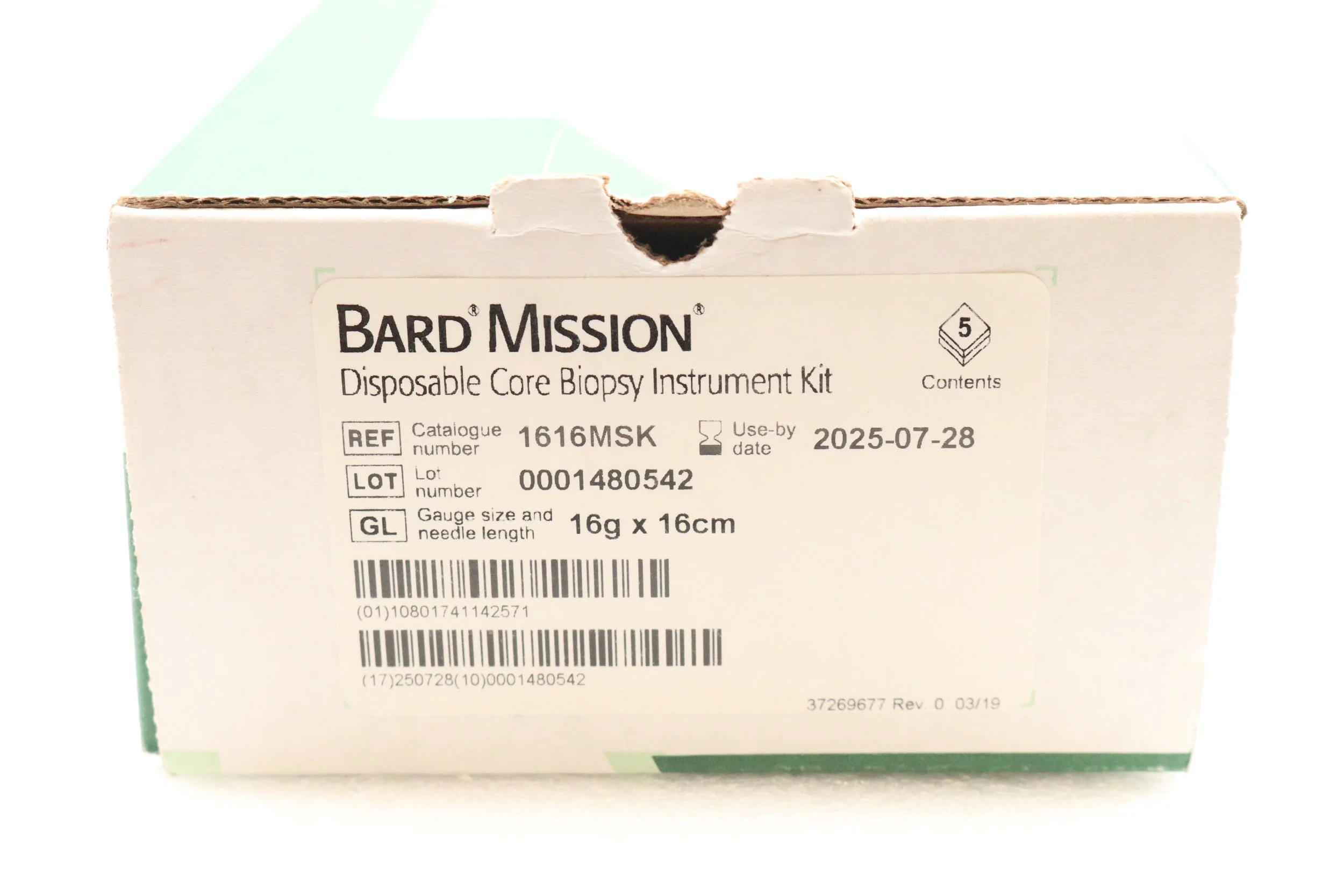 Bard | 1810MSK | SHORT DATE | BOX OF 5 | Mission Disposable Core Biopsy Kit 18G x 10cm