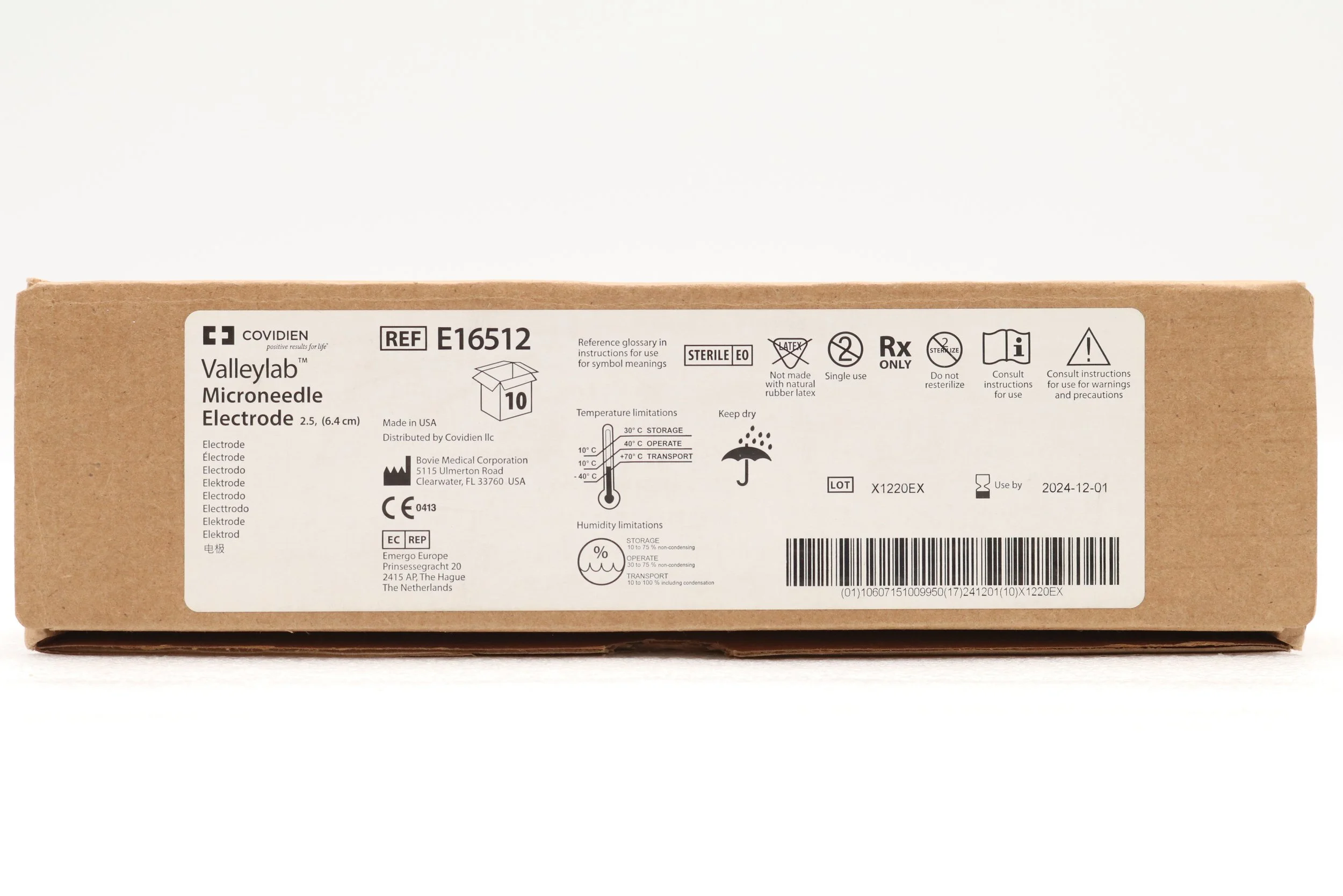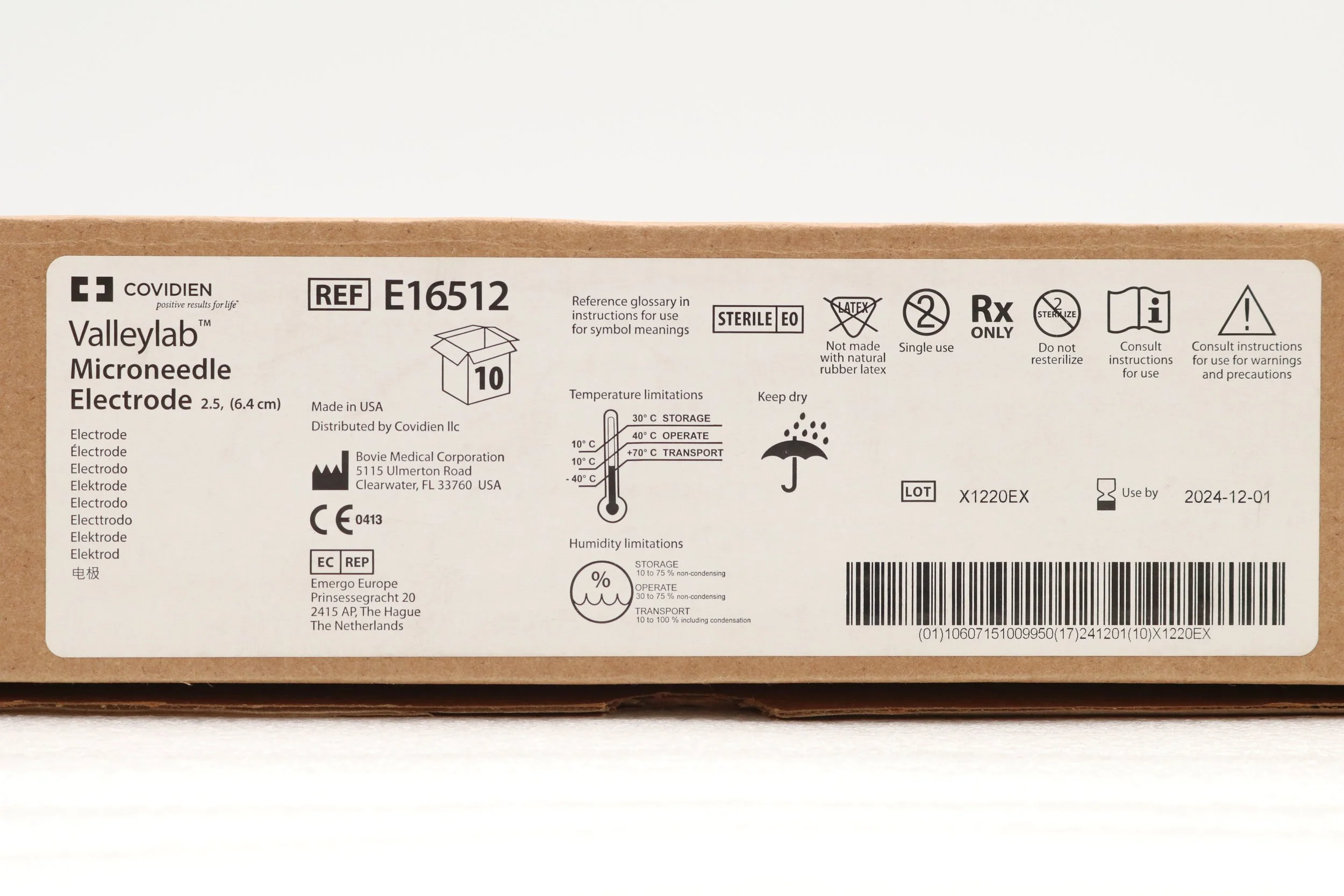 COVIDIEN | E16512 | SHORTDATE | BOX OF 10 | Straight Micro-Needle Electrode, 2 cm Size, Tungsten Wire, Single-Use, Sterile, For Use with Valleylab Electrosurgery System