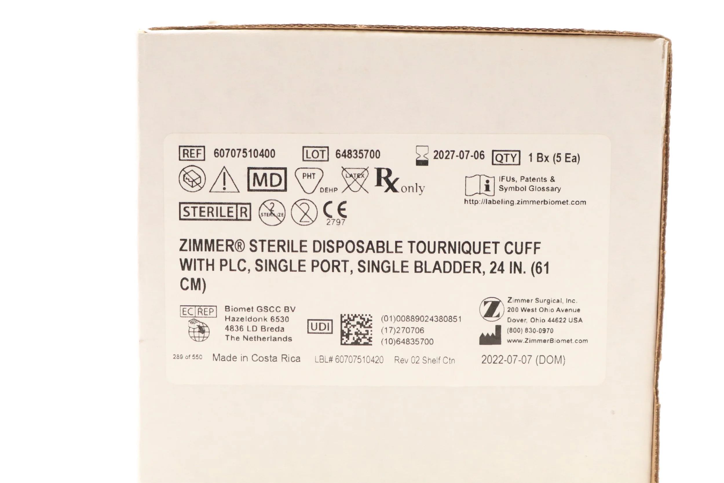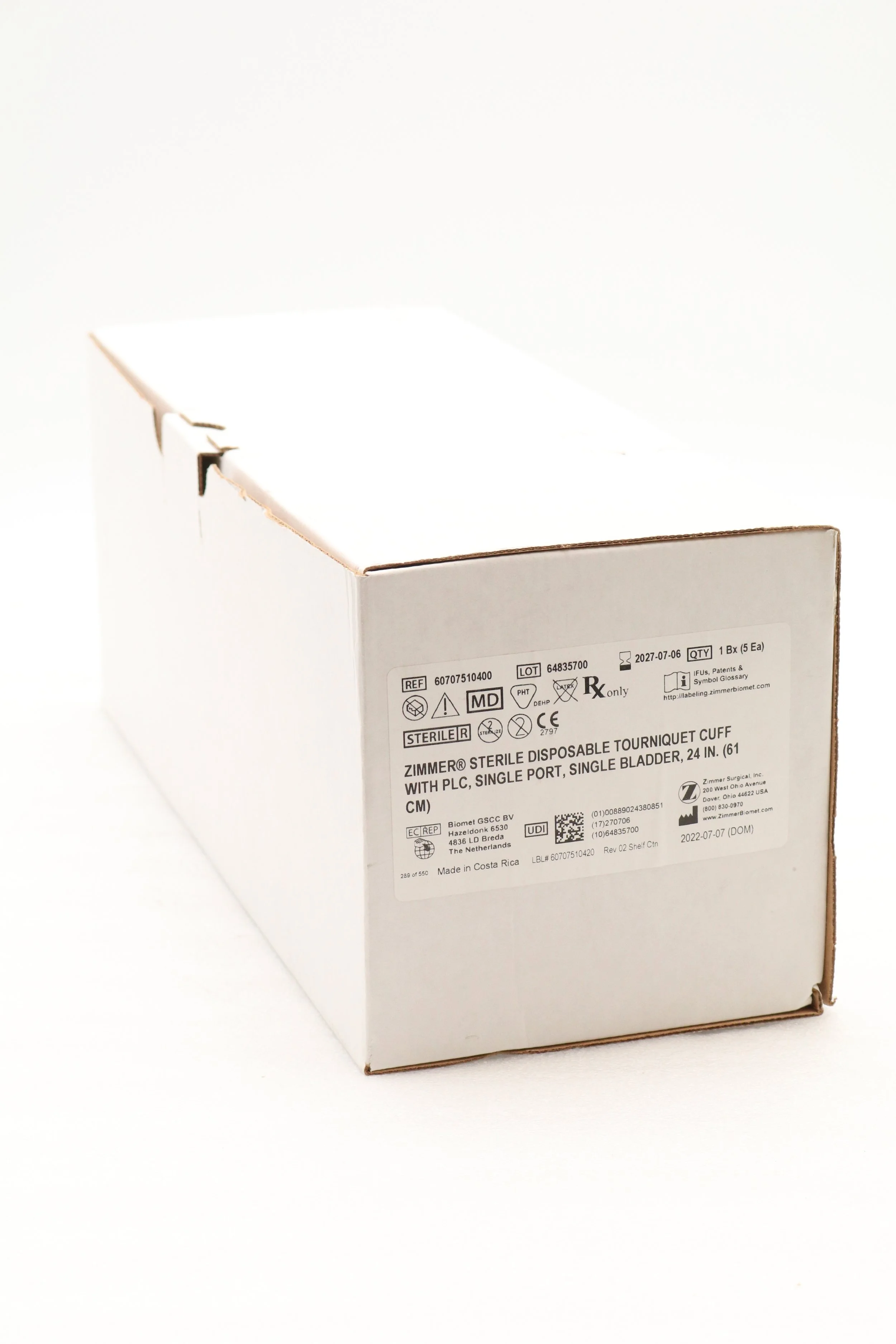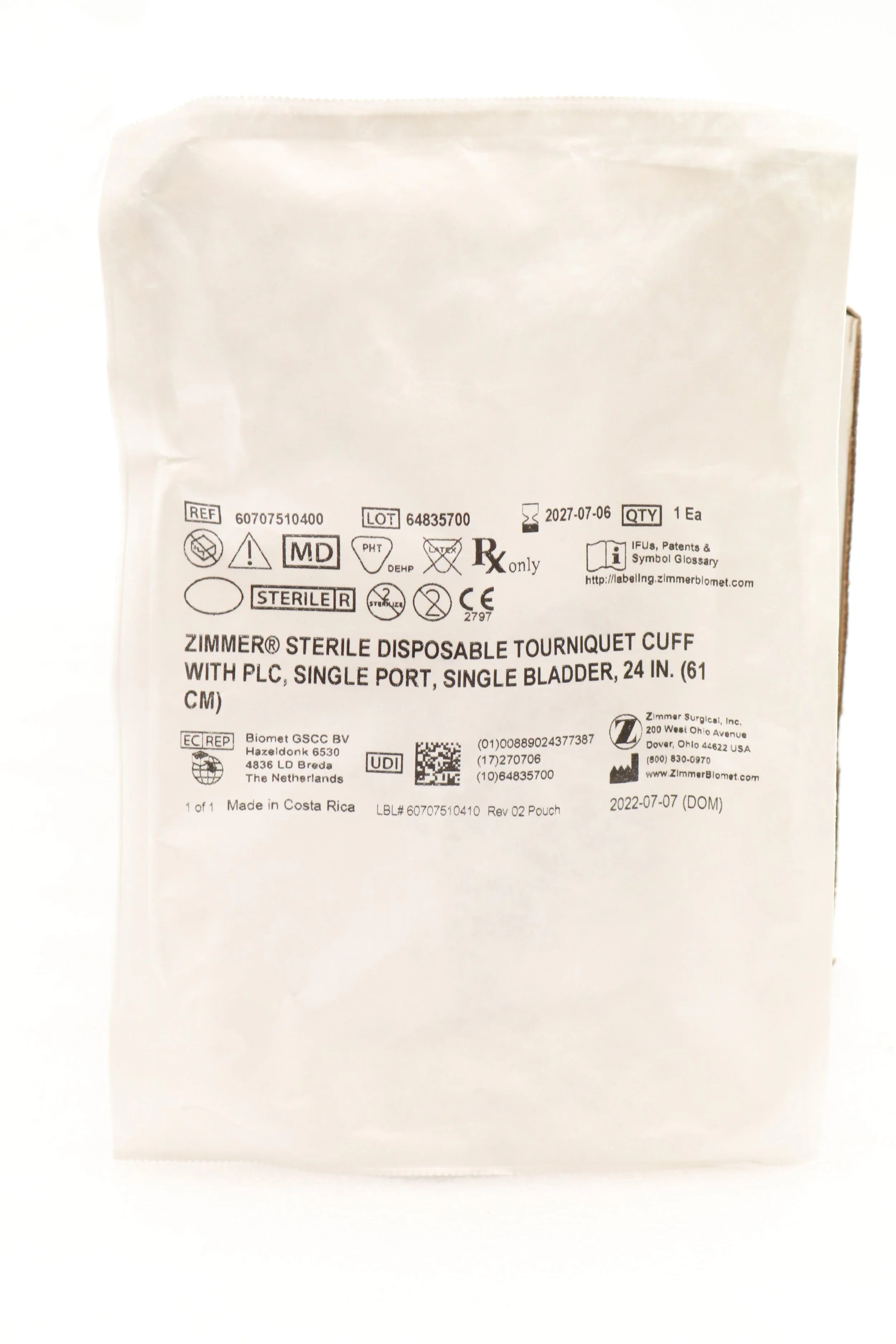 Zimmer | 60707500600 | BOX OF 5 | 34" Tourniquet Cuff w/o Sleeve, Single Port, Single Bladder, Luer