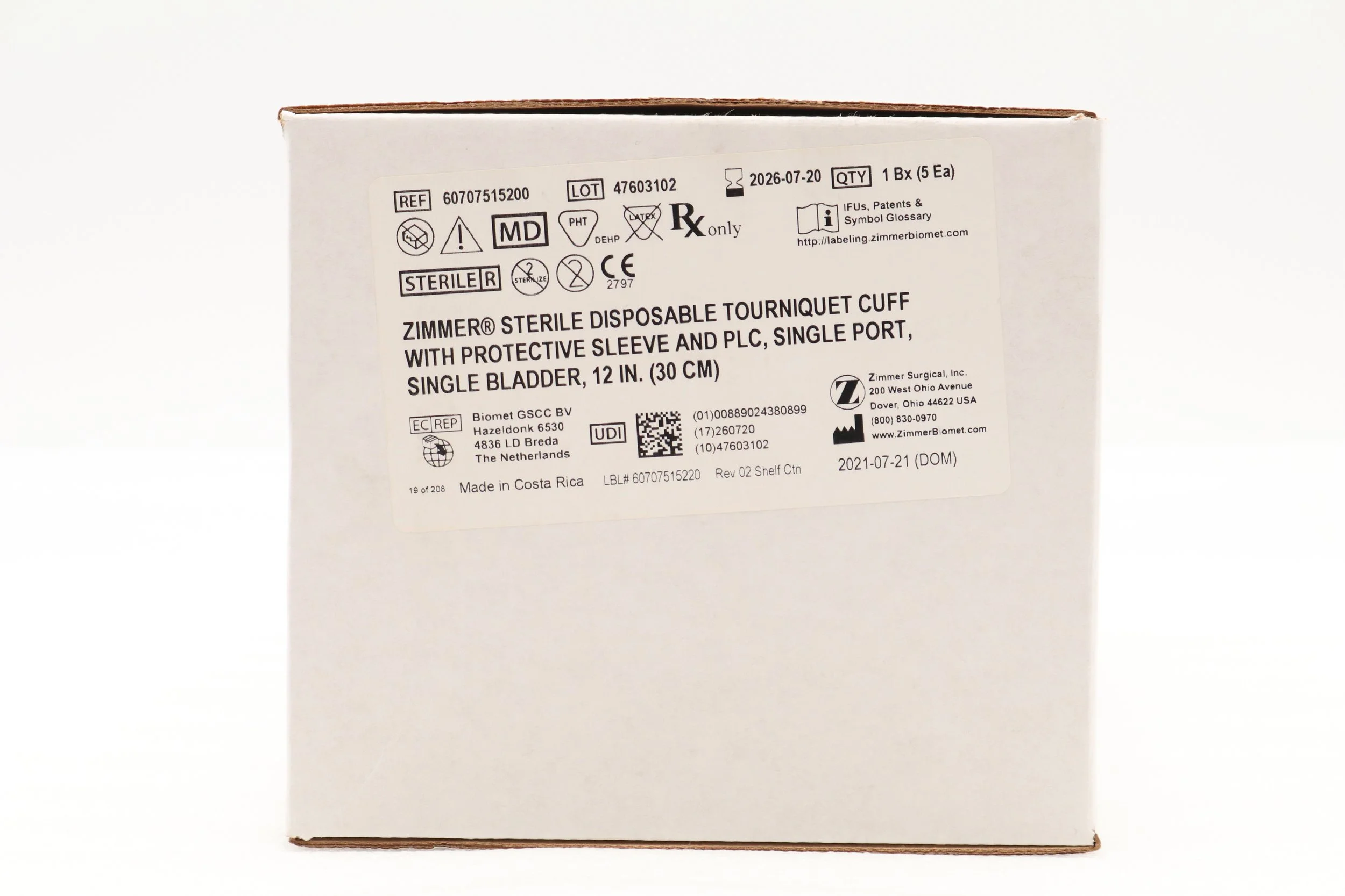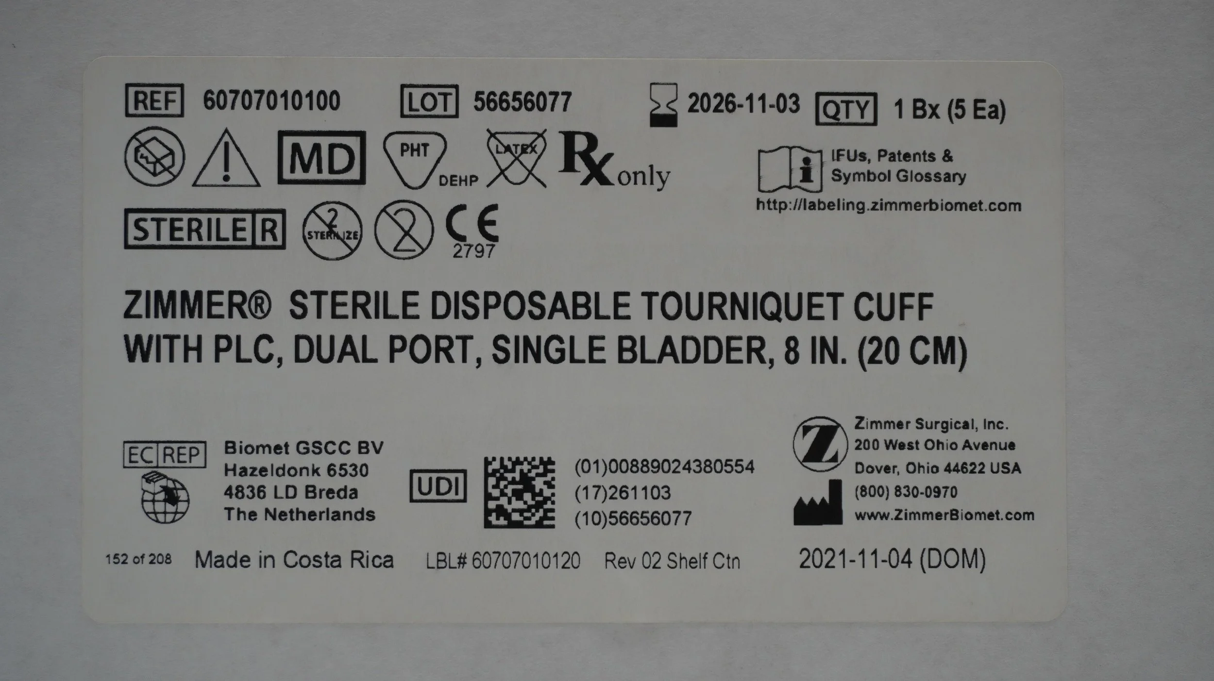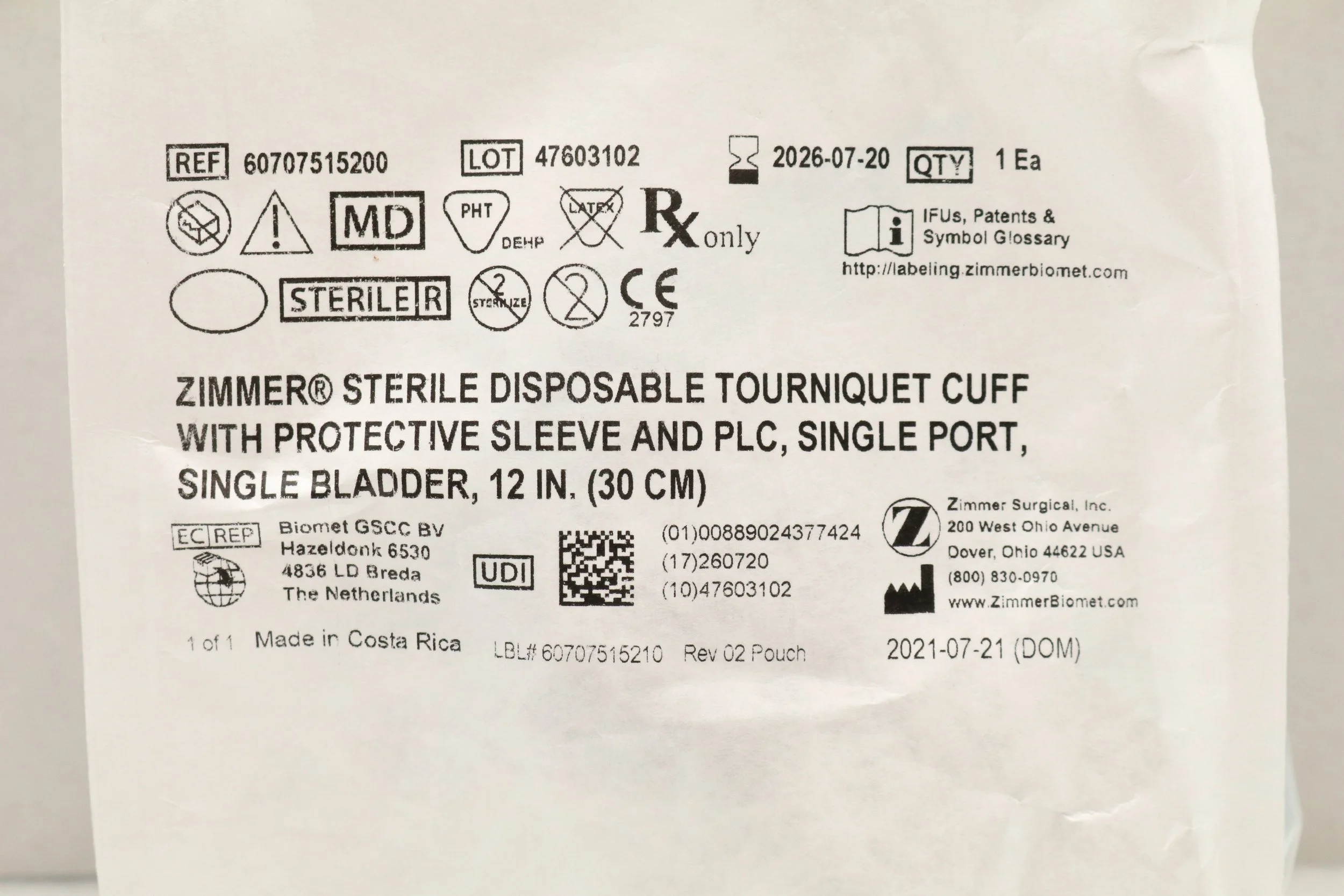 Zimmer | 60707500600 | BOX OF 5 | 34" Tourniquet Cuff w/o Sleeve, Single Port, Single Bladder, Luer