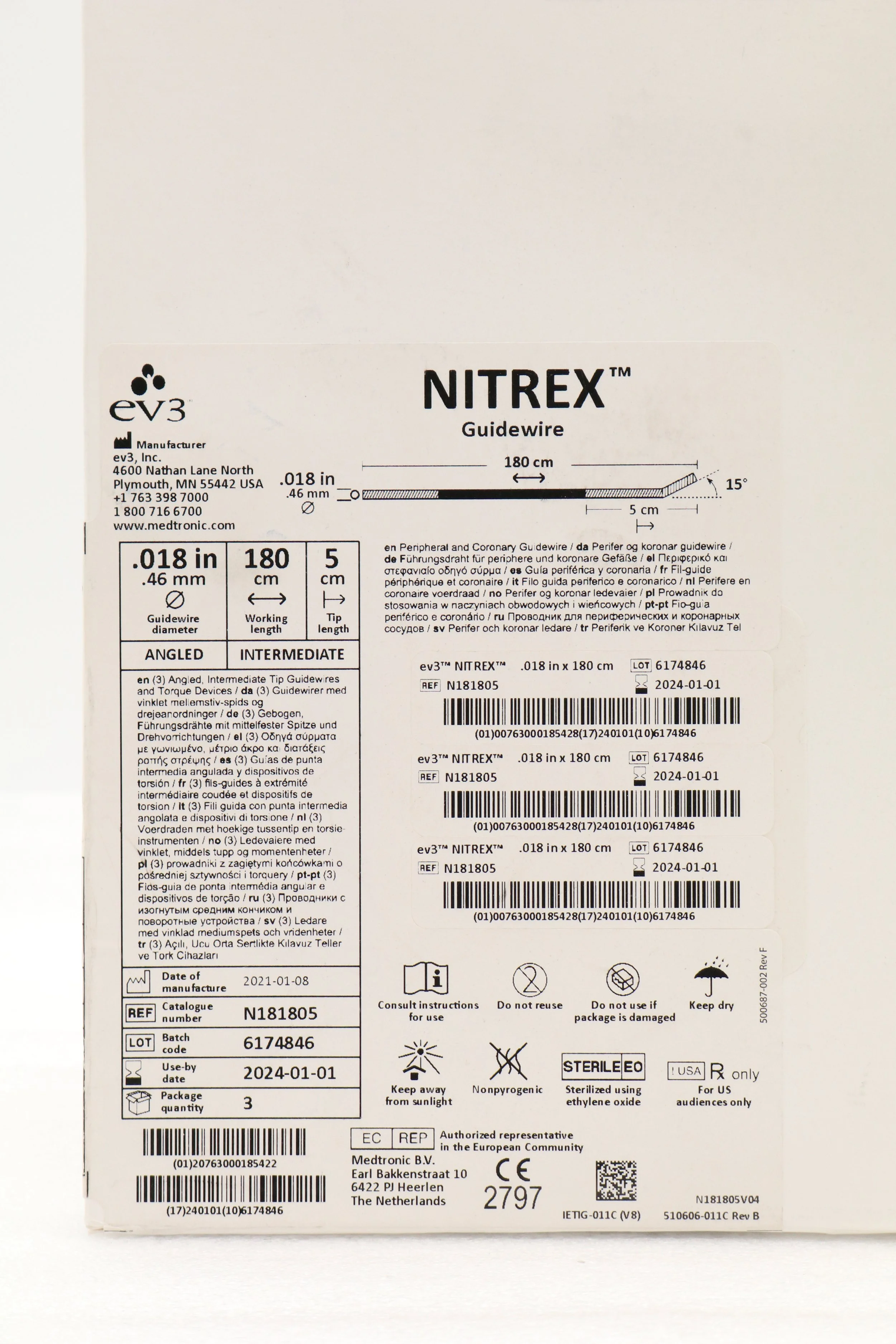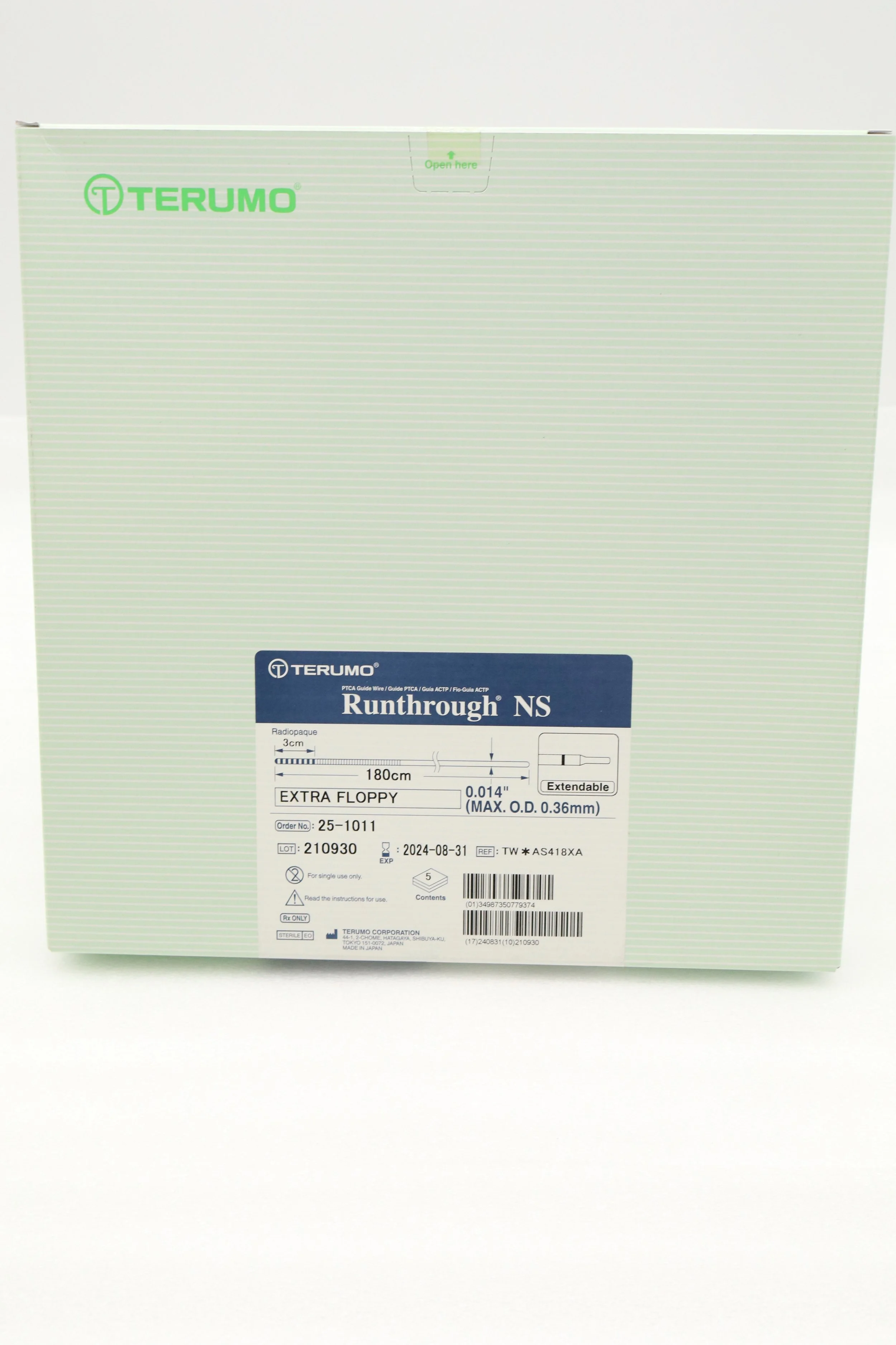 TERUMO | 25-1011 | EXPIRED | BOX OF 5 | RUNTHROUGH NS 180CM EXTRA FLOPPY Coronary Guidewire, shapeable tip, 0.014, 180cm, Floppy tip type