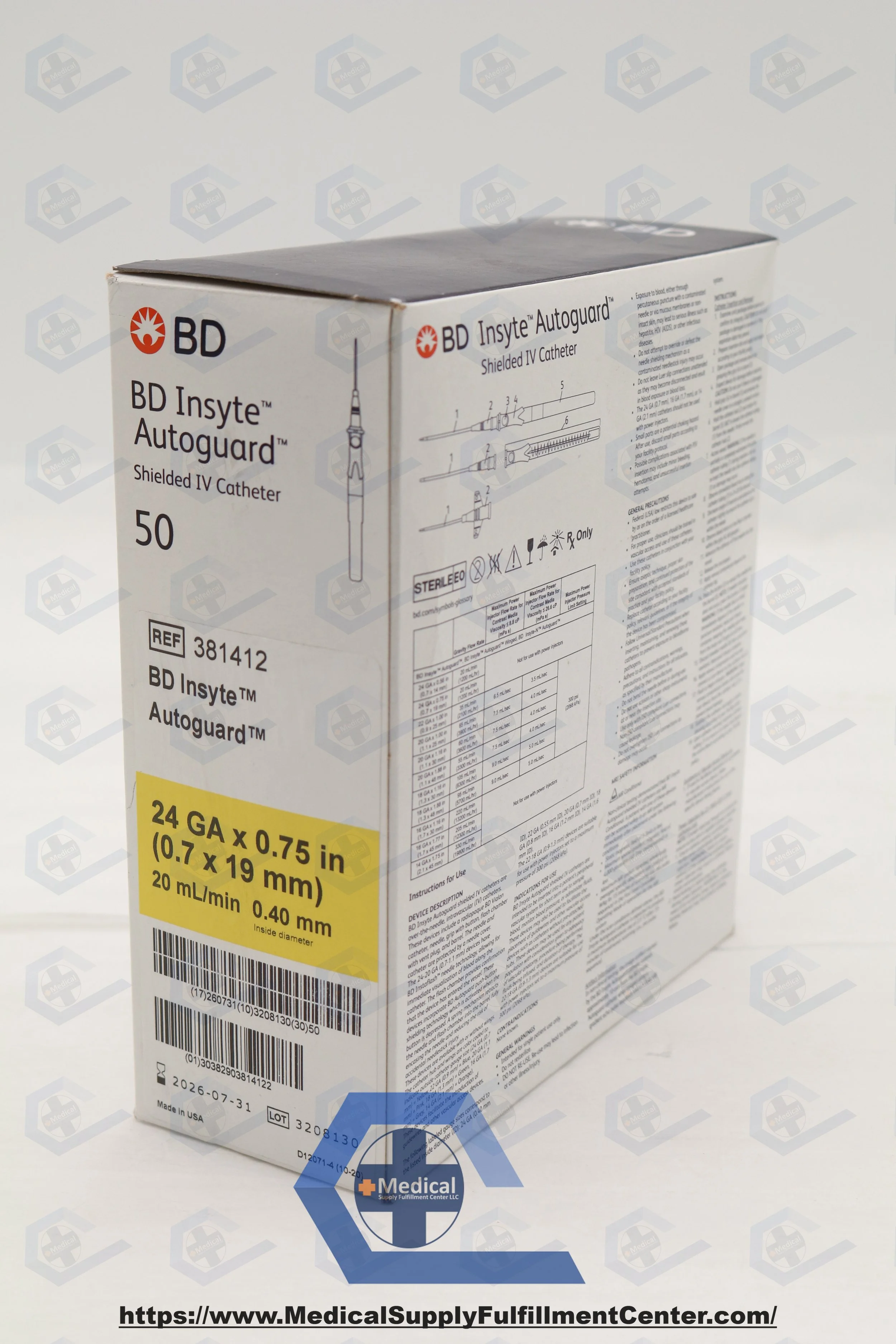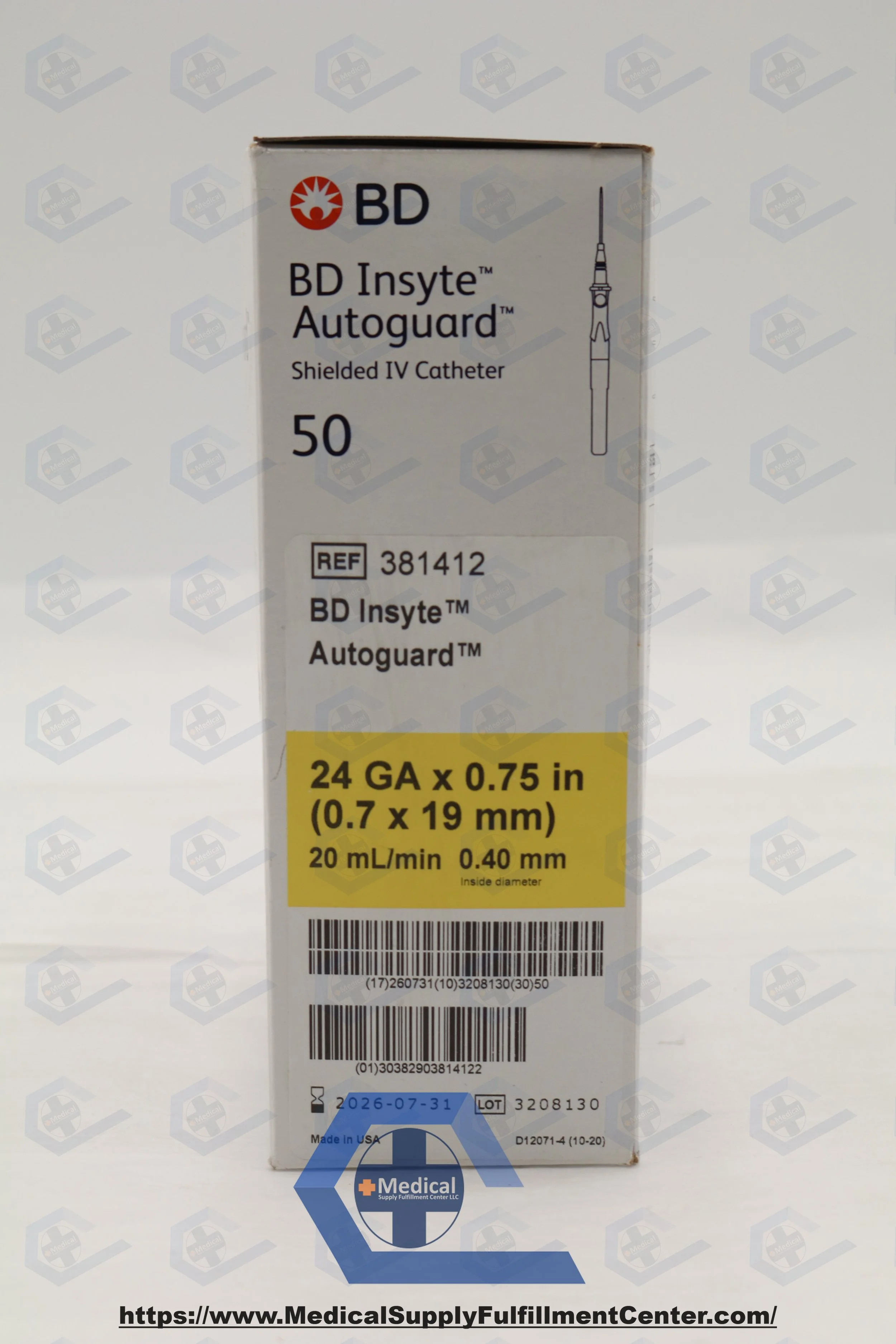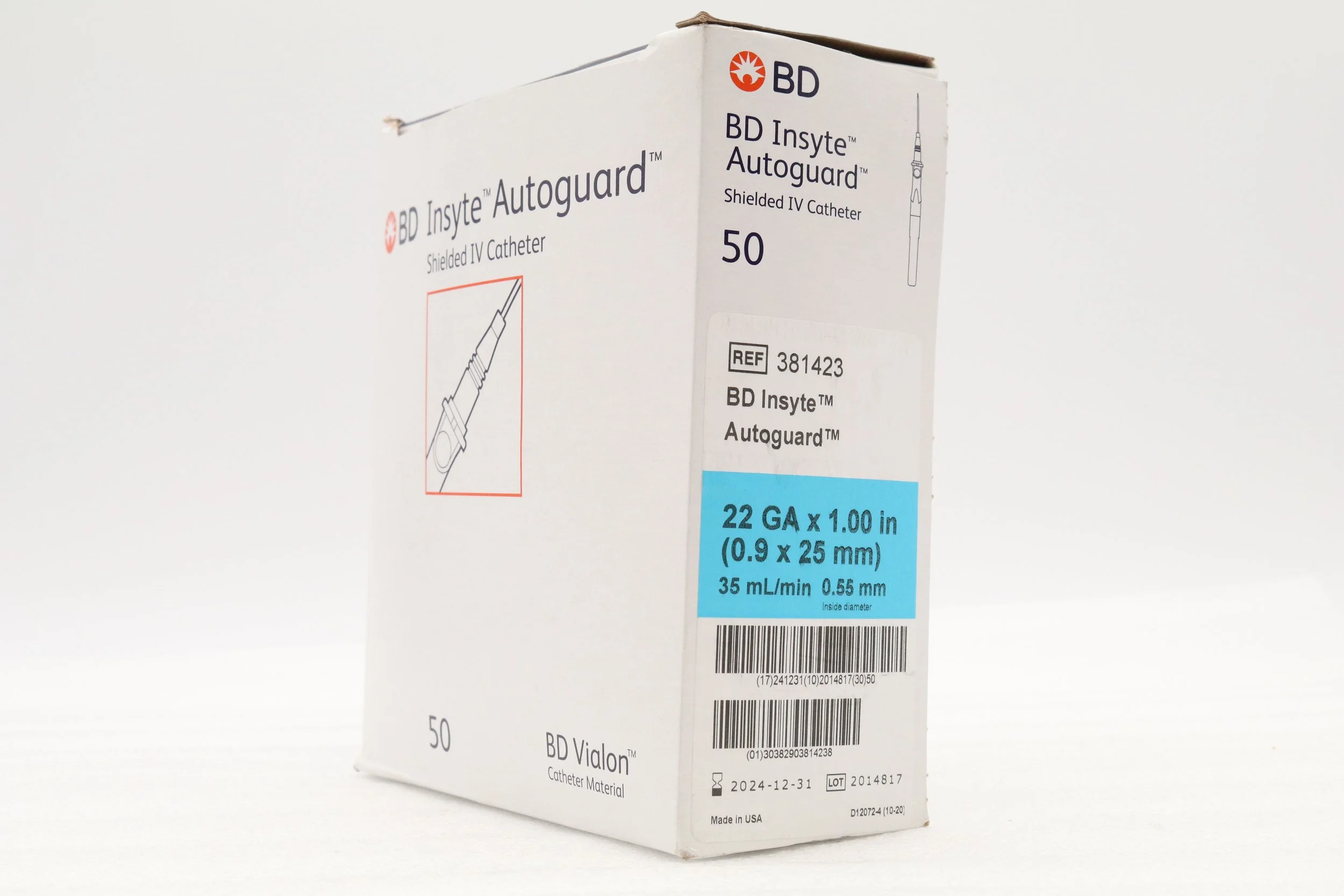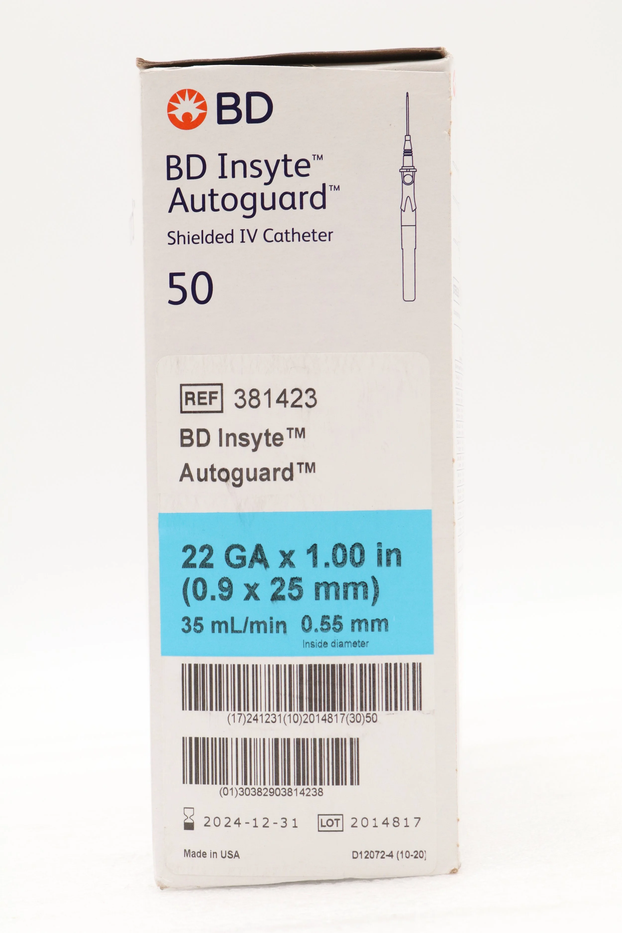 BD | 381412 | SHORT DATE | BOX OF 50 | Insyte Autoguard™ Shielded IV Catheter 24 G x 0.75 in