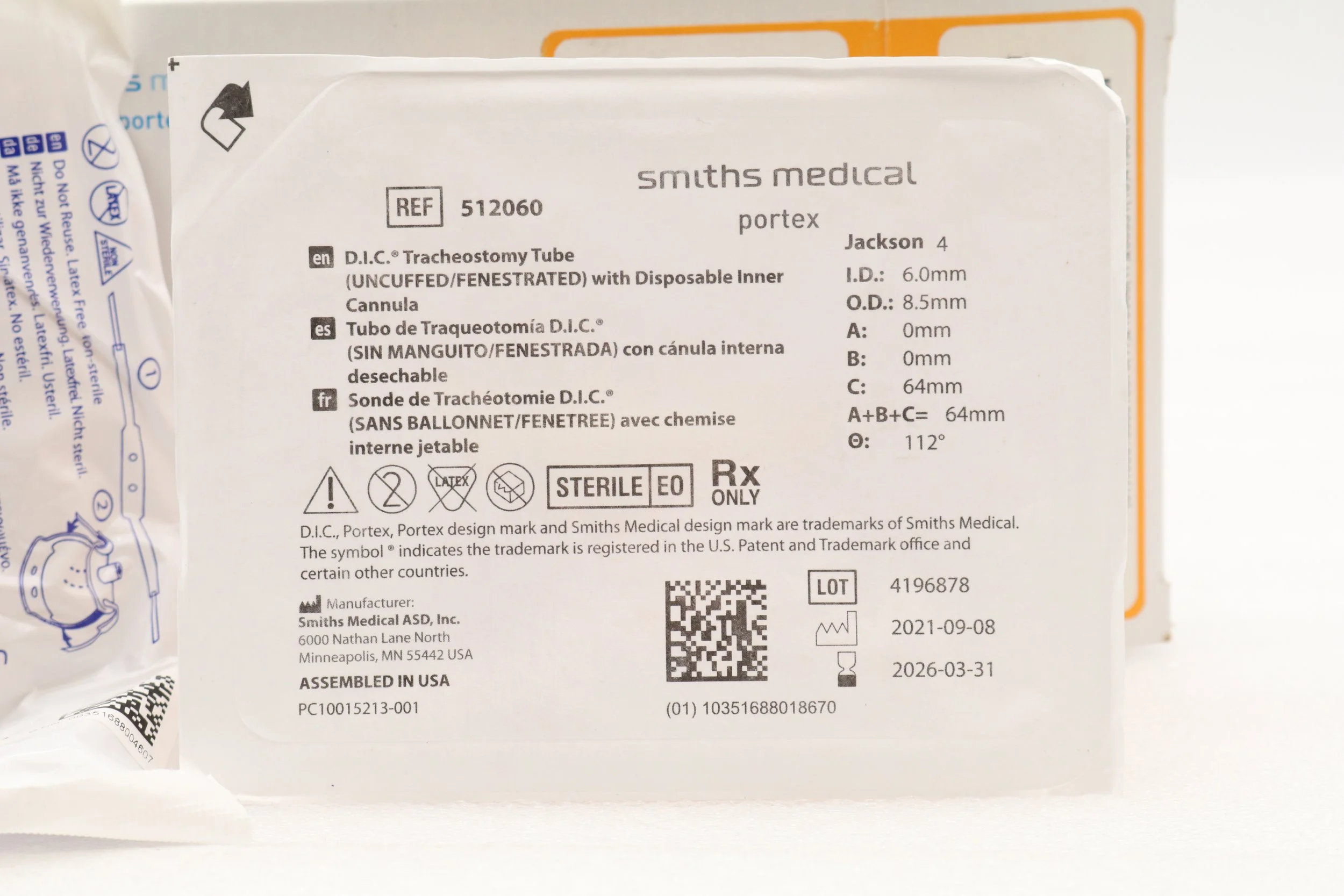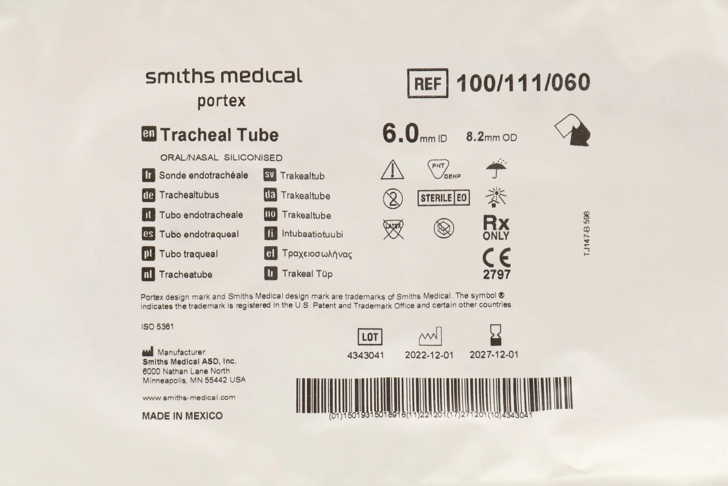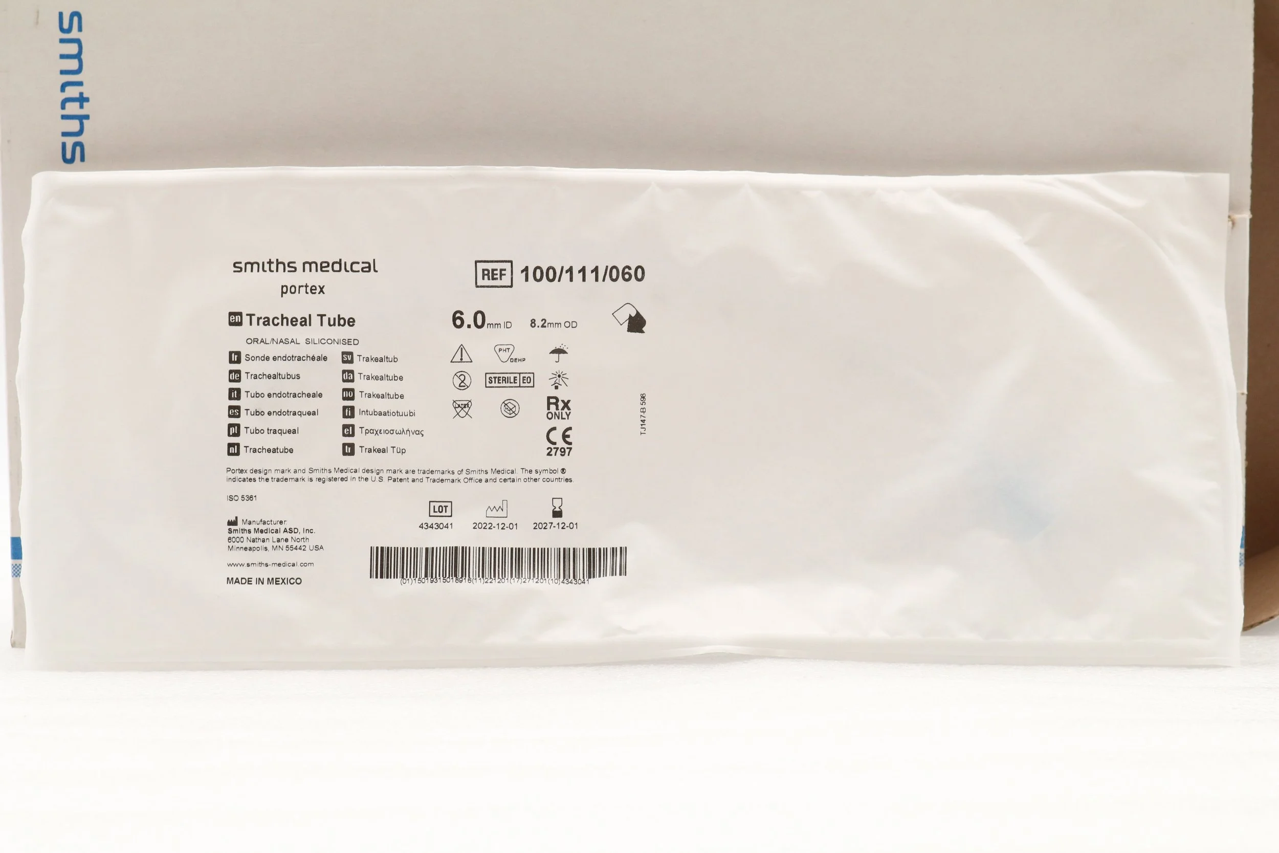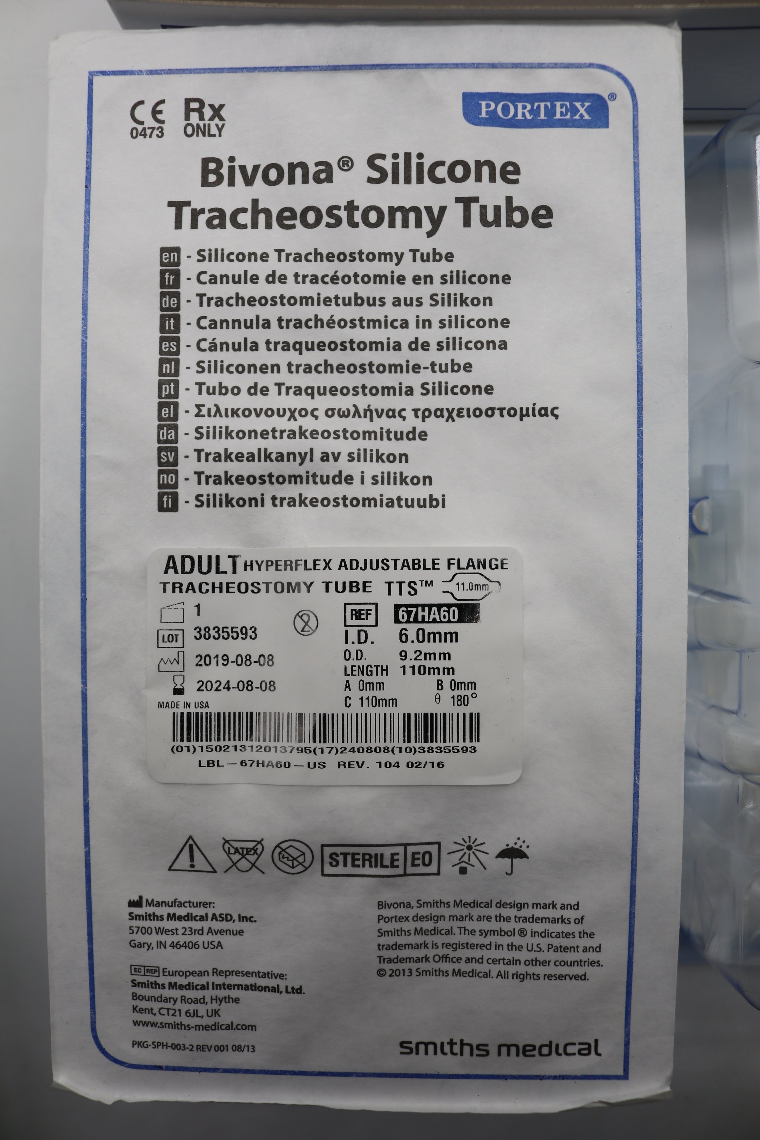 Smiths Medical | 67HA60 | EXPIRED | EACHES | Portex Bivona Silicone Tracheostomy Tube 6.0mm ID 9.2mm OD 110mm Long Box of 1