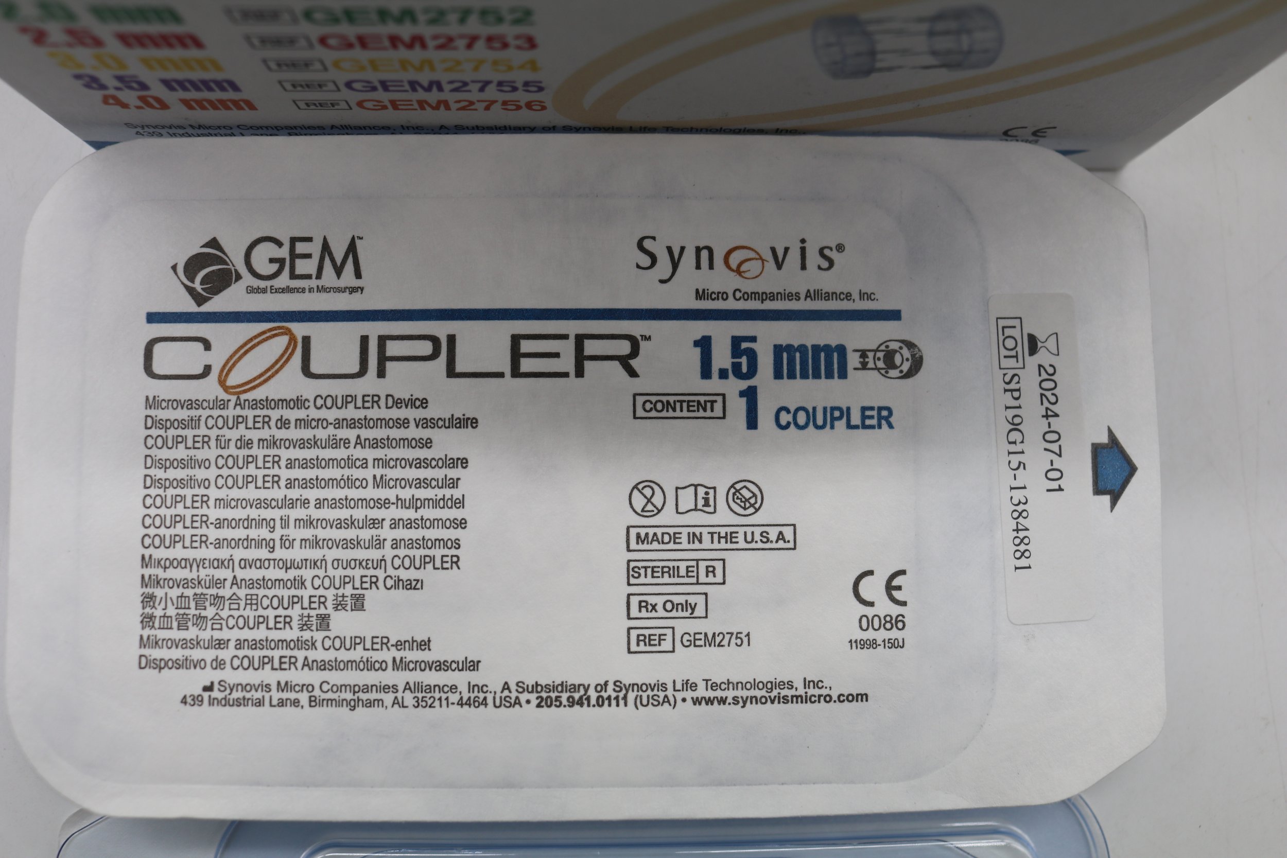 Synovis | GEM2751 | SHORTDATE | Box of 6 | Micovascular Anastomotic COUPLER Device 1.5mm