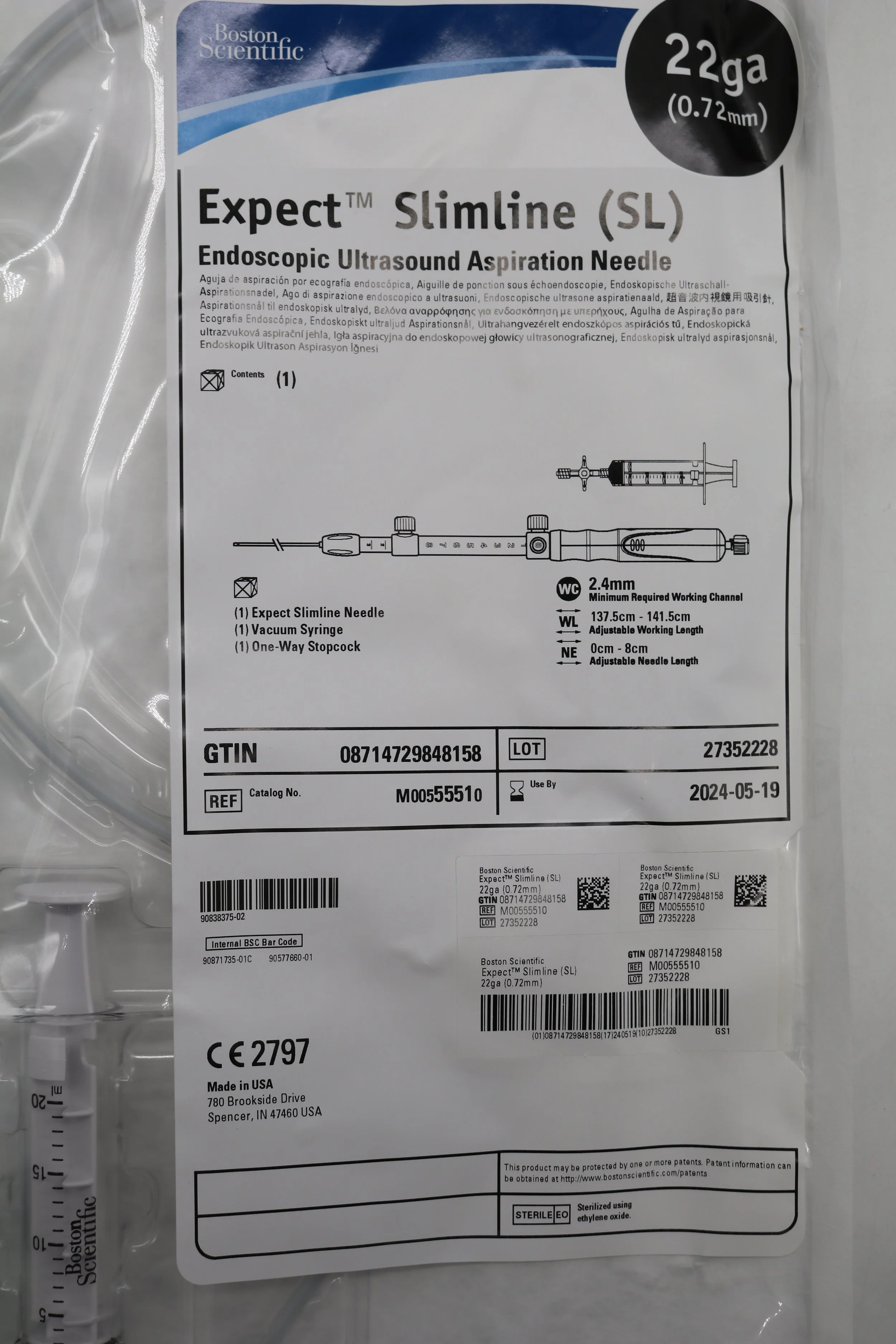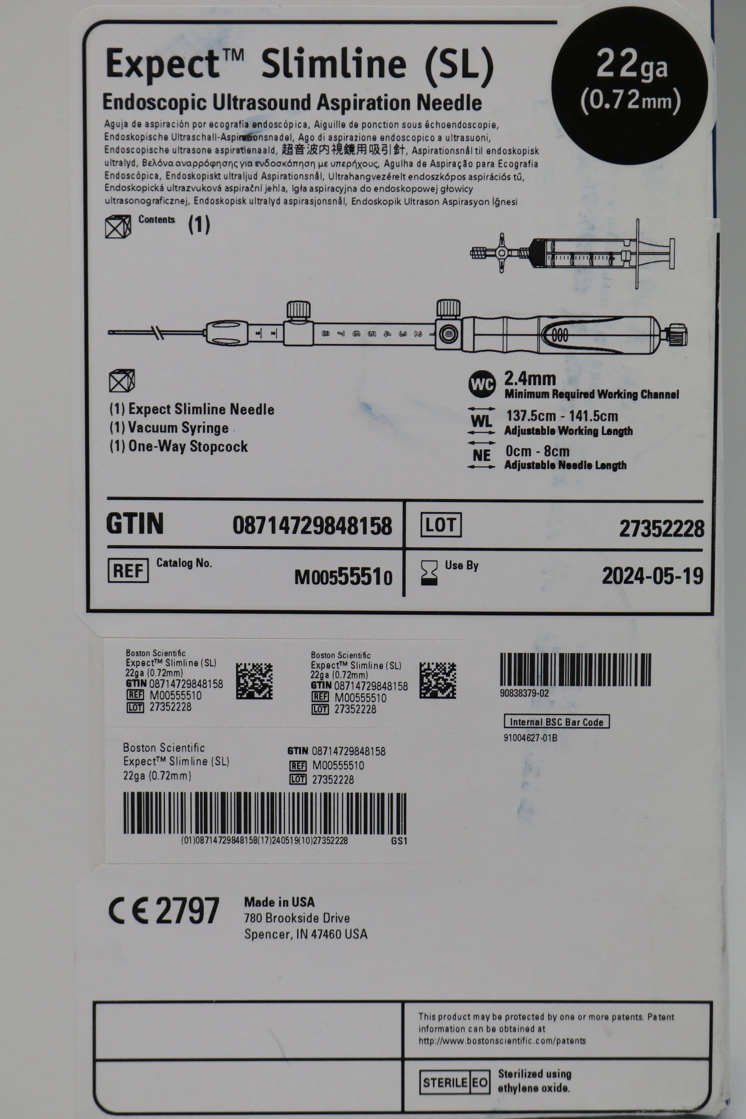 Boston Scientific | 5551 | EXPIRED | EACHES | M00555510 Expect Slimline Endoscopic Ultrasound Aspiration Needle 22GA (0.72mm)