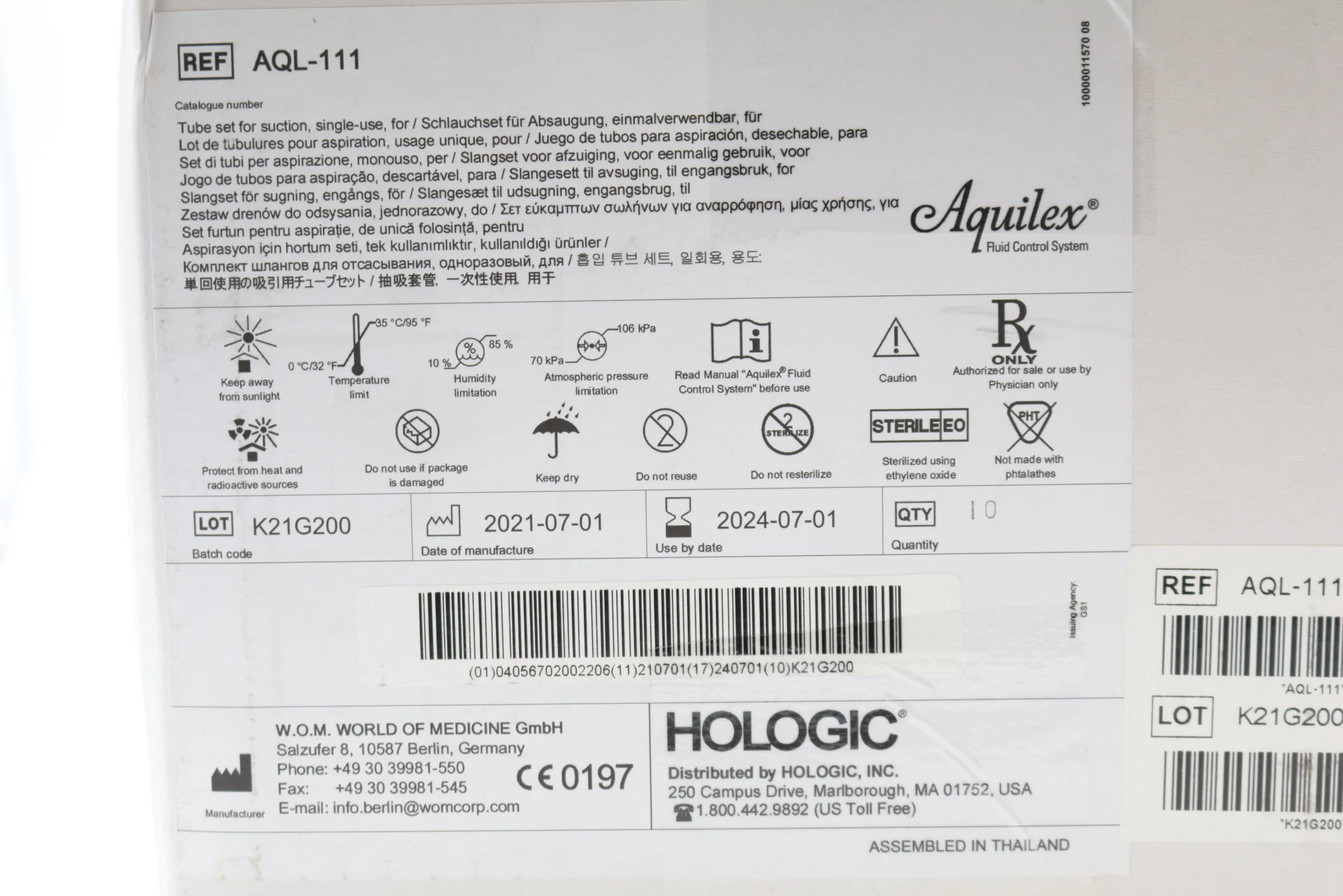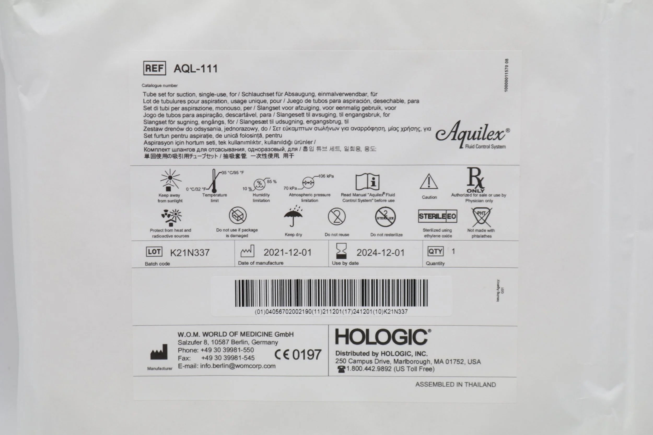 Hologic | AQL-111 | SHORTDATE | EACHES | SHORTDATE Single-use tube set for irrigation