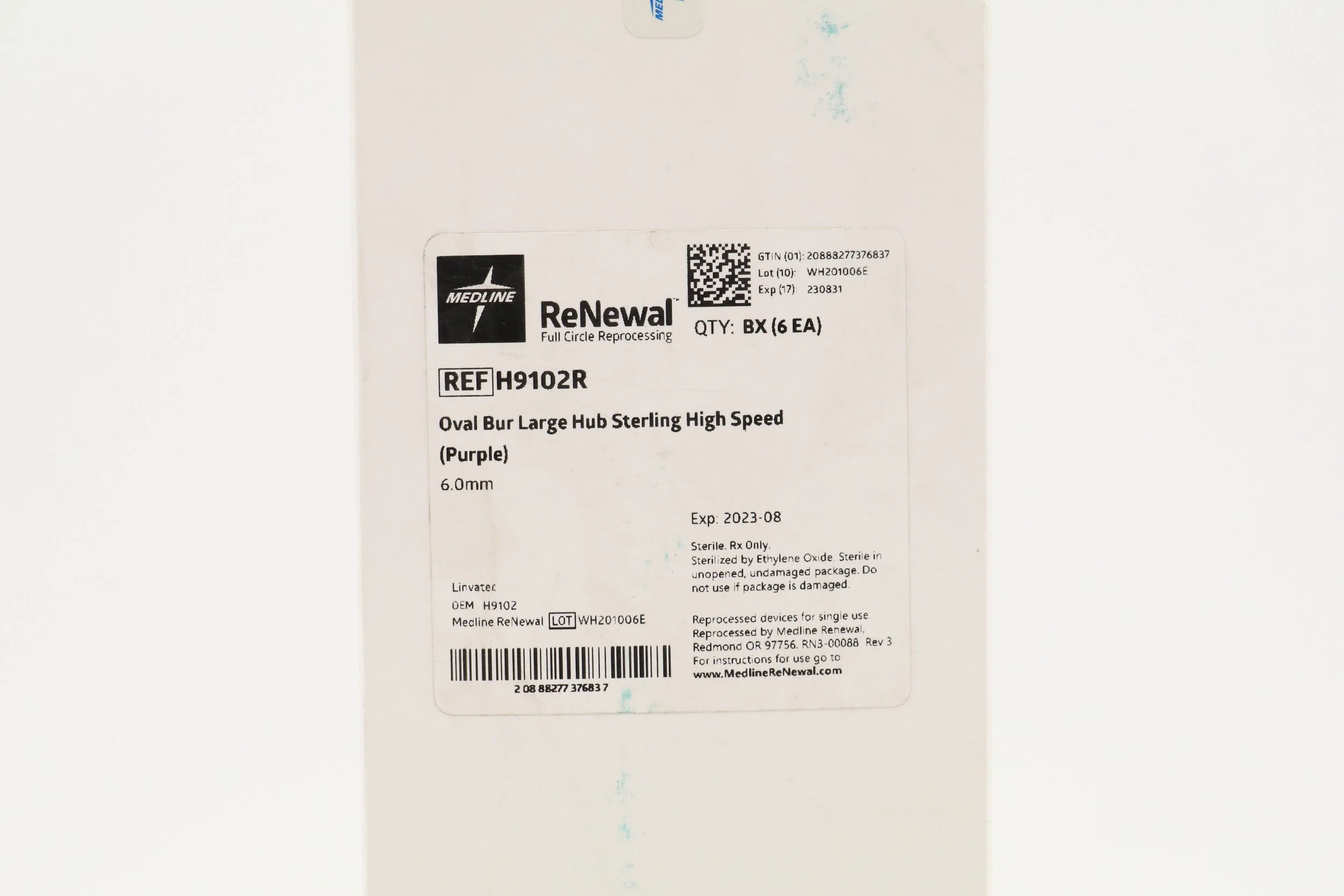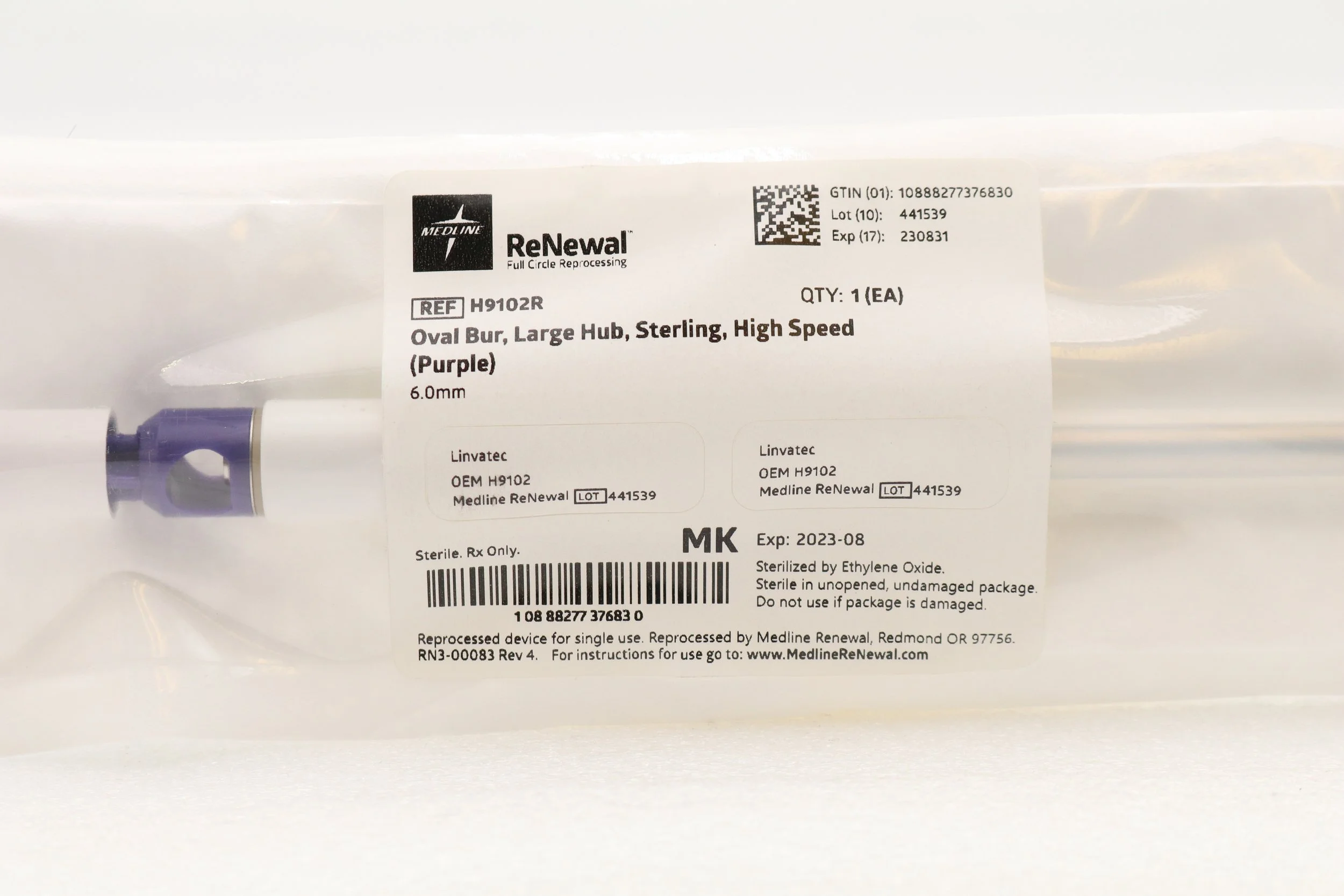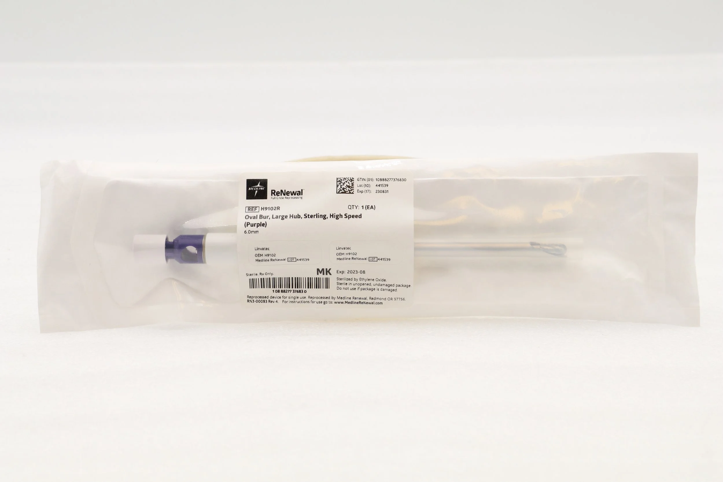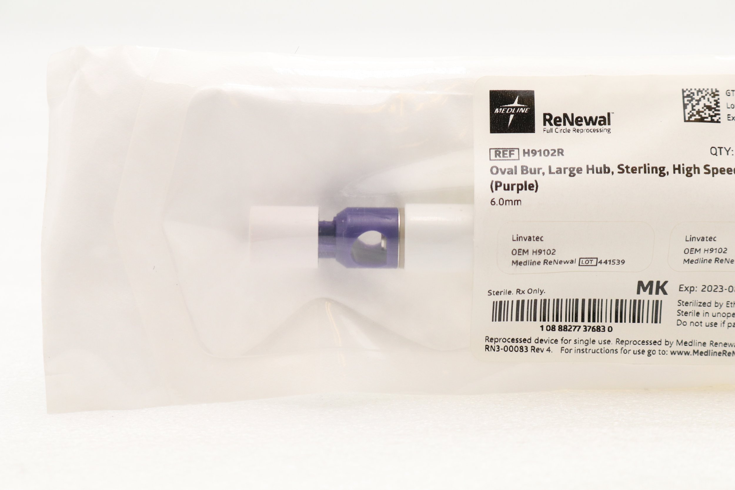 MEDLINE | H9102R | EXPIRED | BOX OF 6 | OVAL BUR LARGE HUB STERLING HIGH SPEED (PURPLE) 6MM