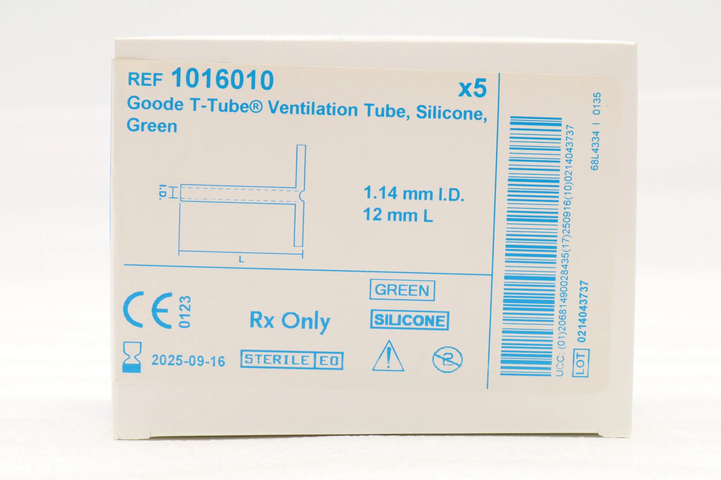MEDTRONIC | 1016010 | IN-DATE | BOX OF 5 | Goode T-Tube LT Ventilation Tube, Silicone, Green 1.14mm