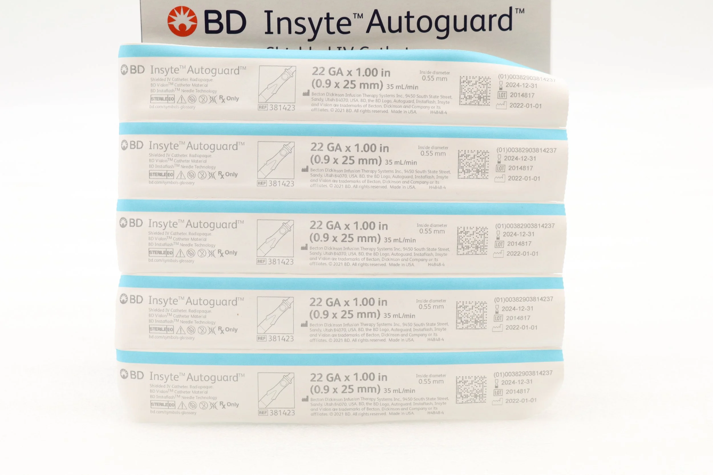 BD | 381423 | EXPIRED | BOX OF 50 | Insyte Autoguard Shielded I.V. Catheter 22G x 1" Blue