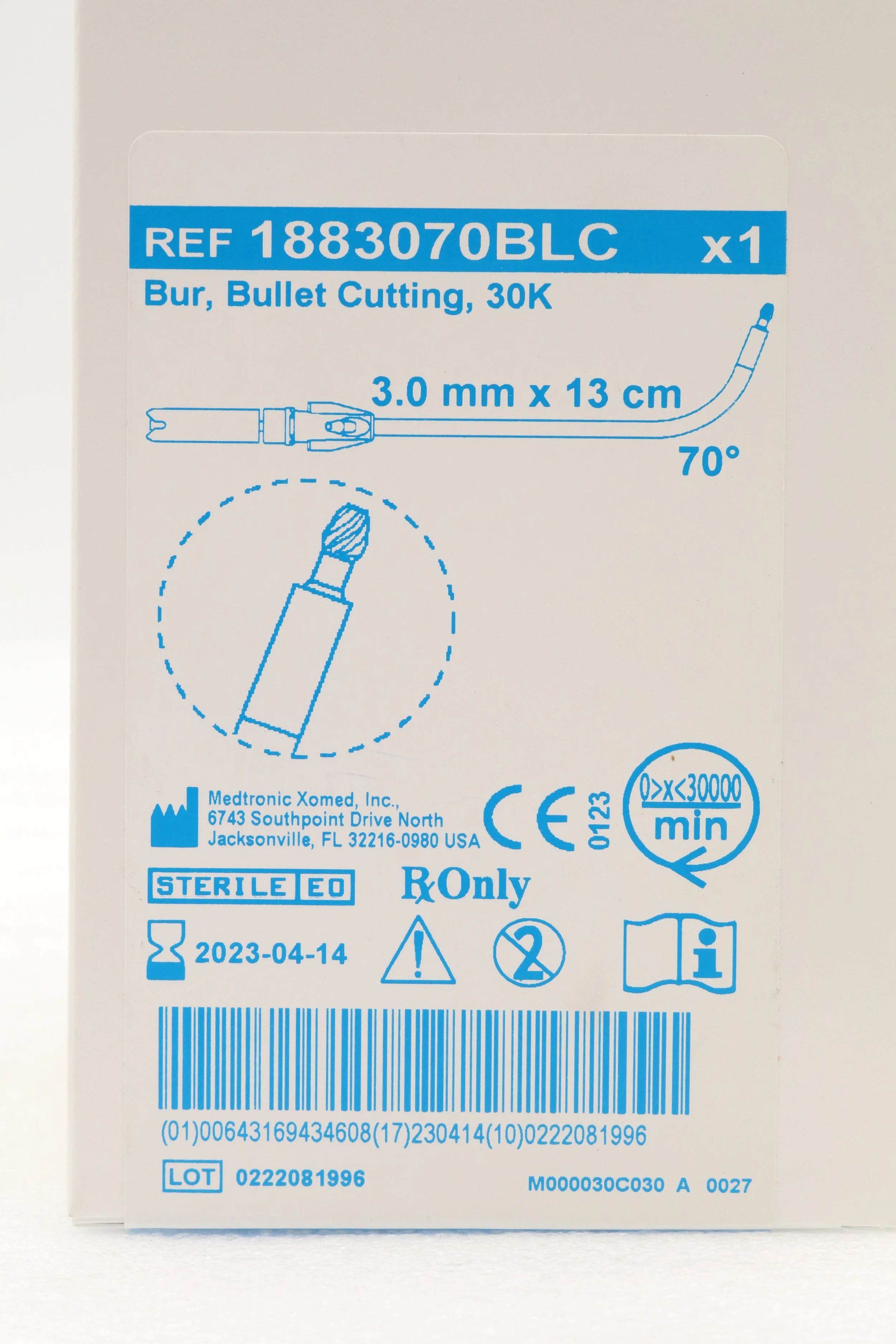 Medtronic | 1883070BLC | EXPIRED | EACHES | Bur, Bullet Diamond, 30K 3.0mm x 13cm 70°