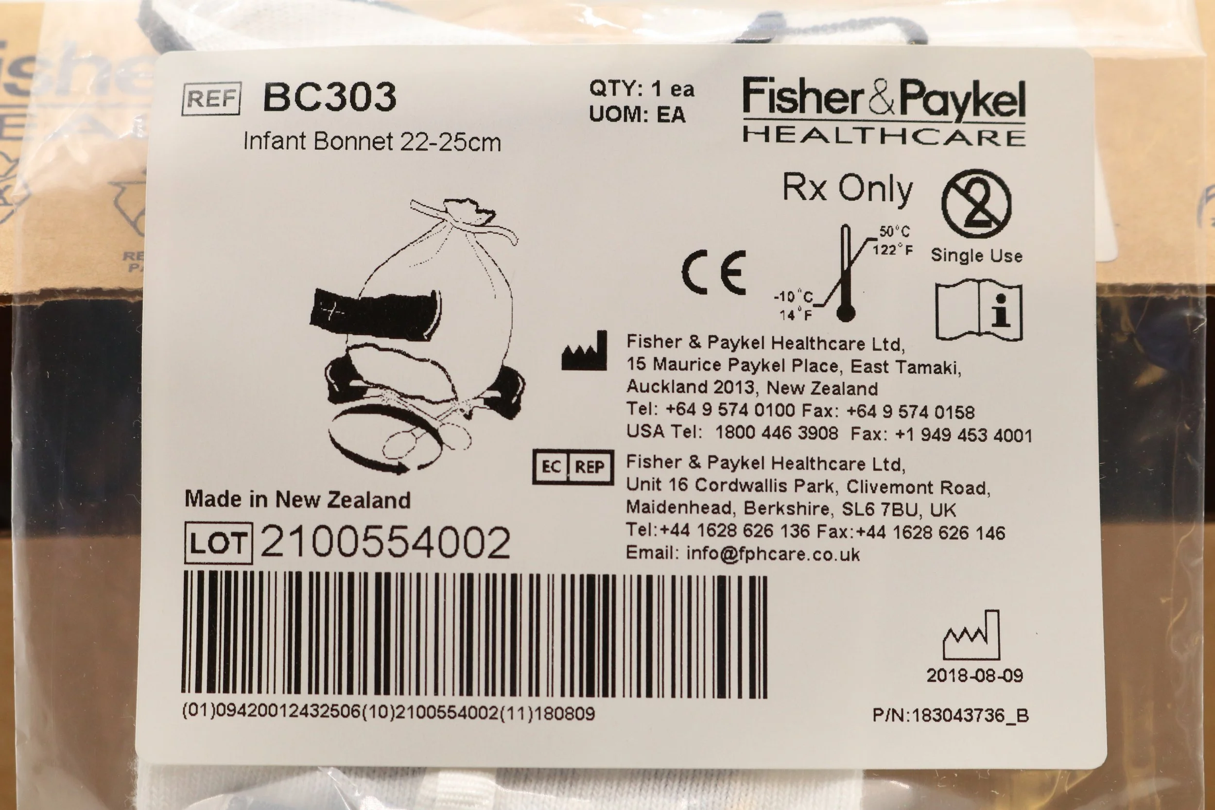 Fisher Paykel | BC303-05 | BOX OF 5 | Infant Interface Accessories - Infant Bonnet, 22-25 cm