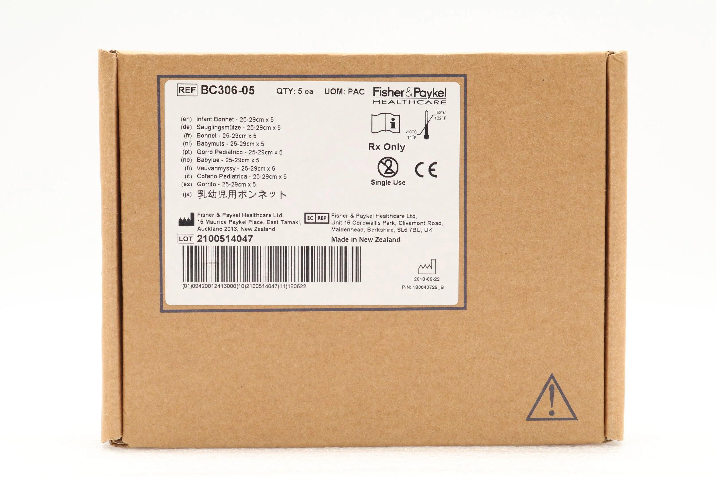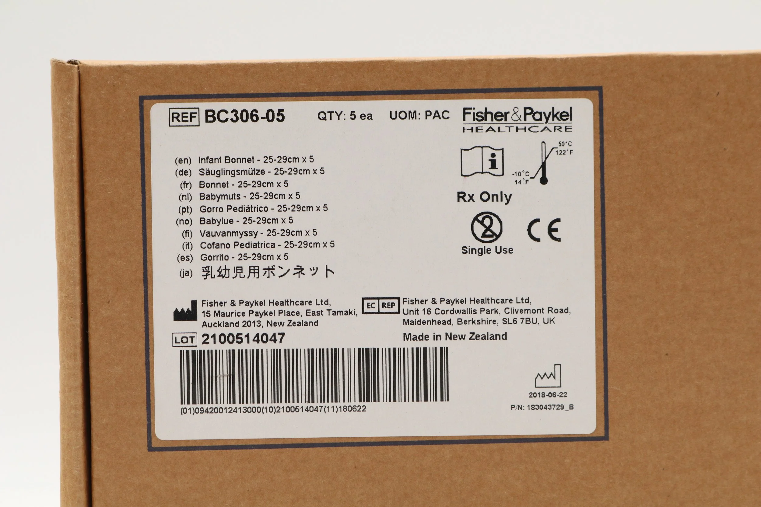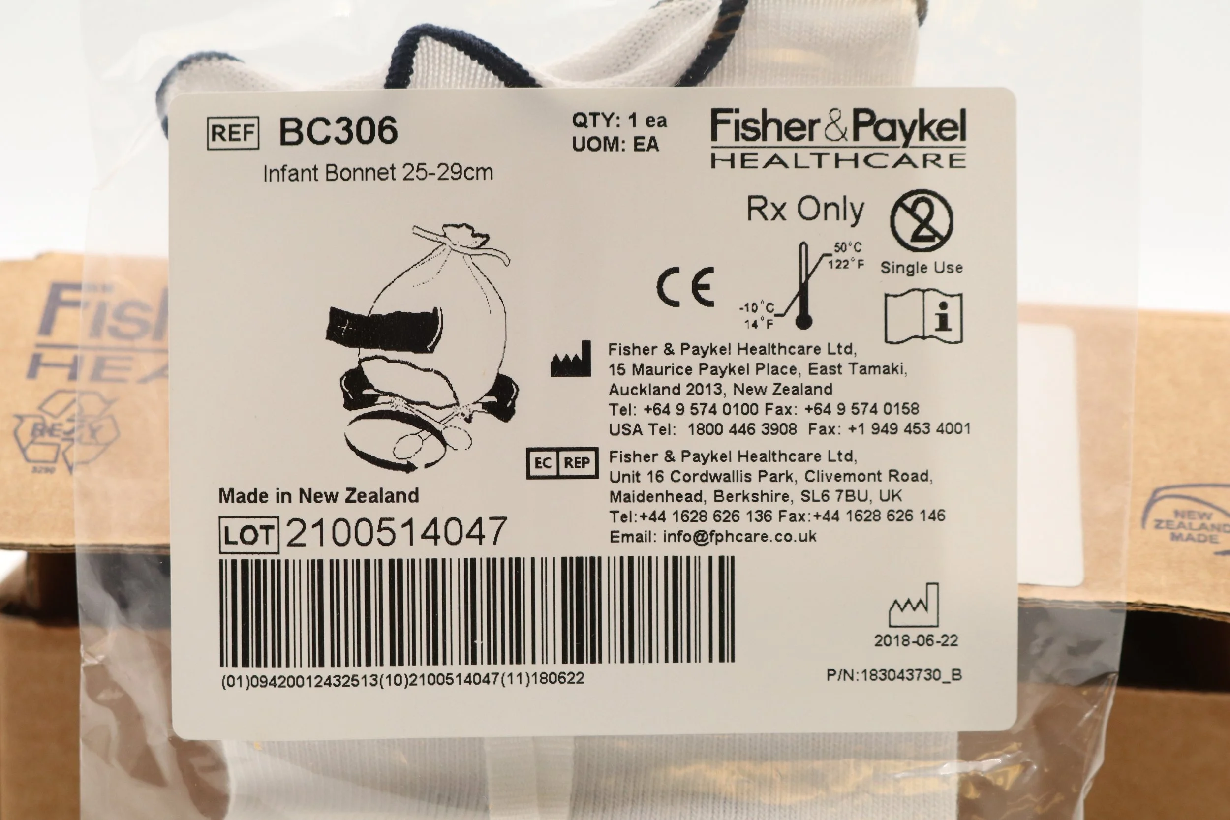 Fisher Paykel | BC306-05 | BOX OF 5 | Infant Interface Accessories - Infant Bonnet, 25-29 cm