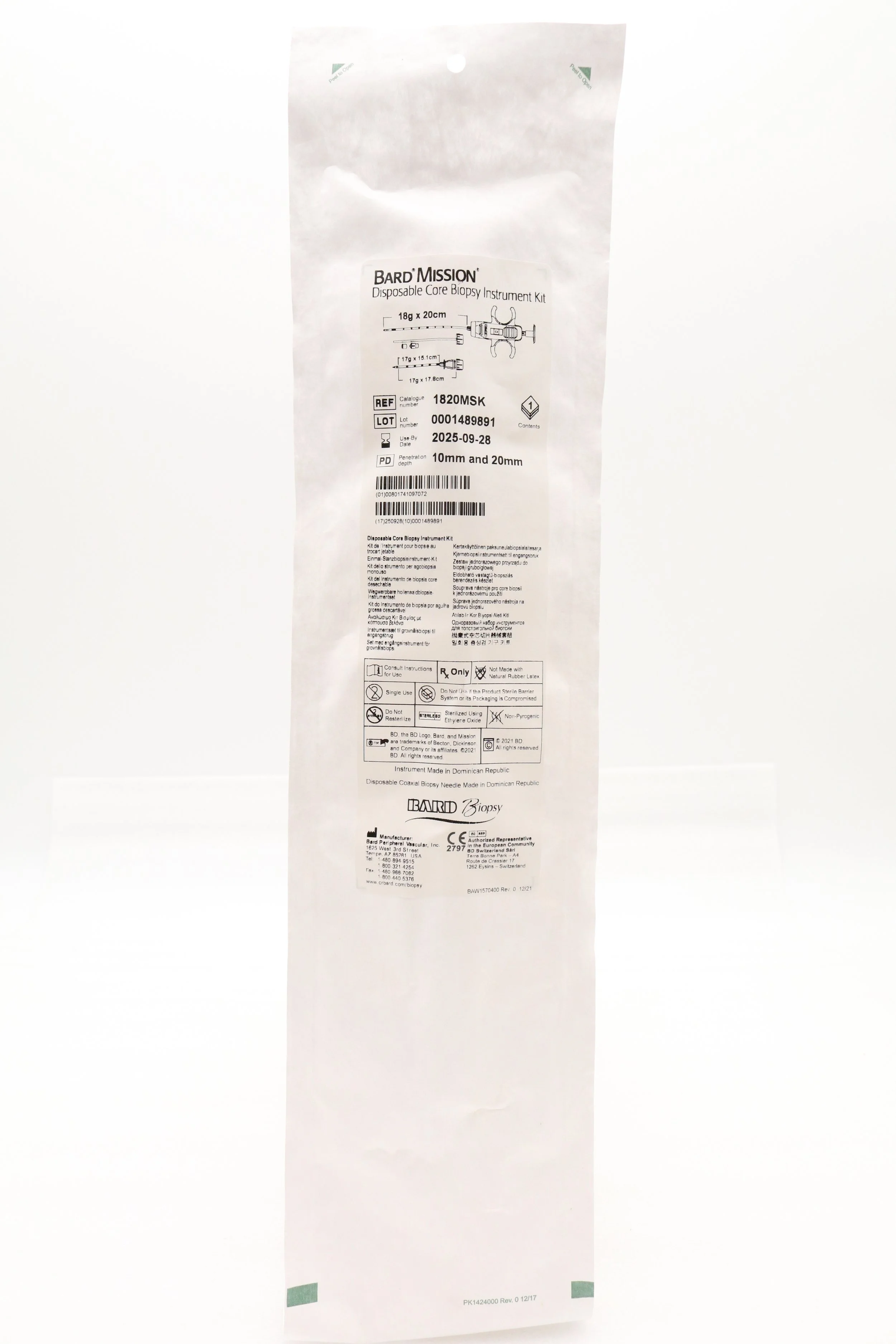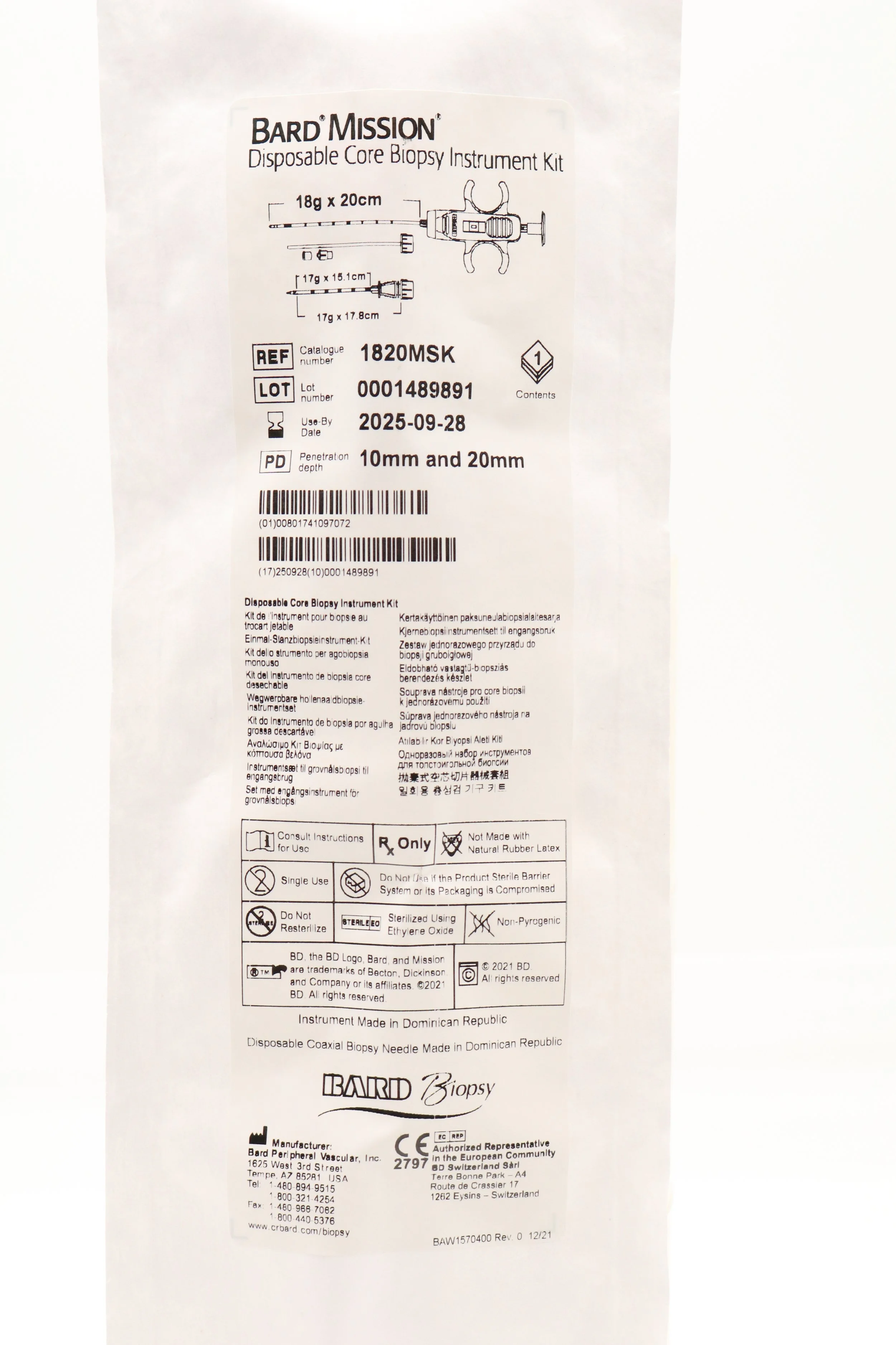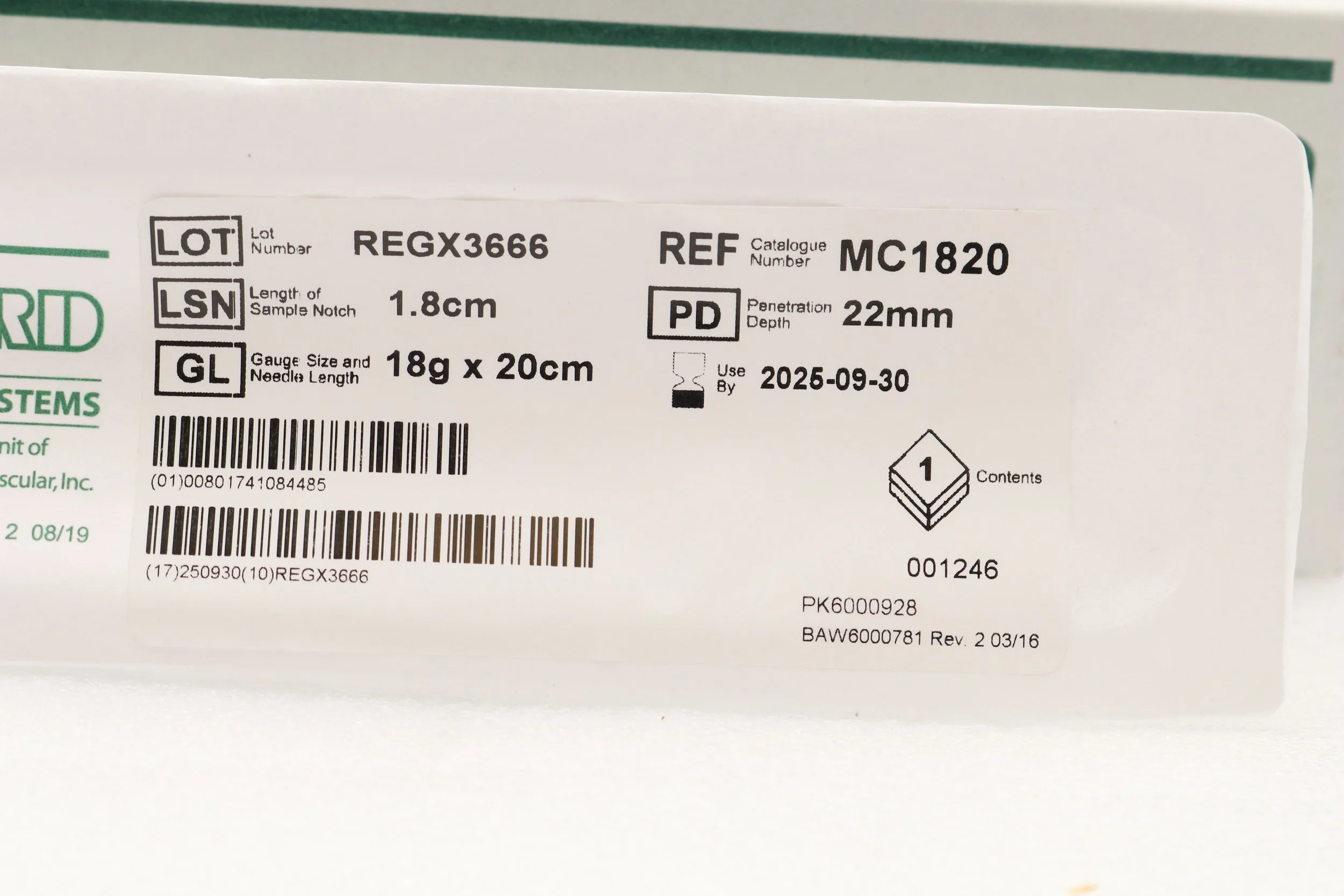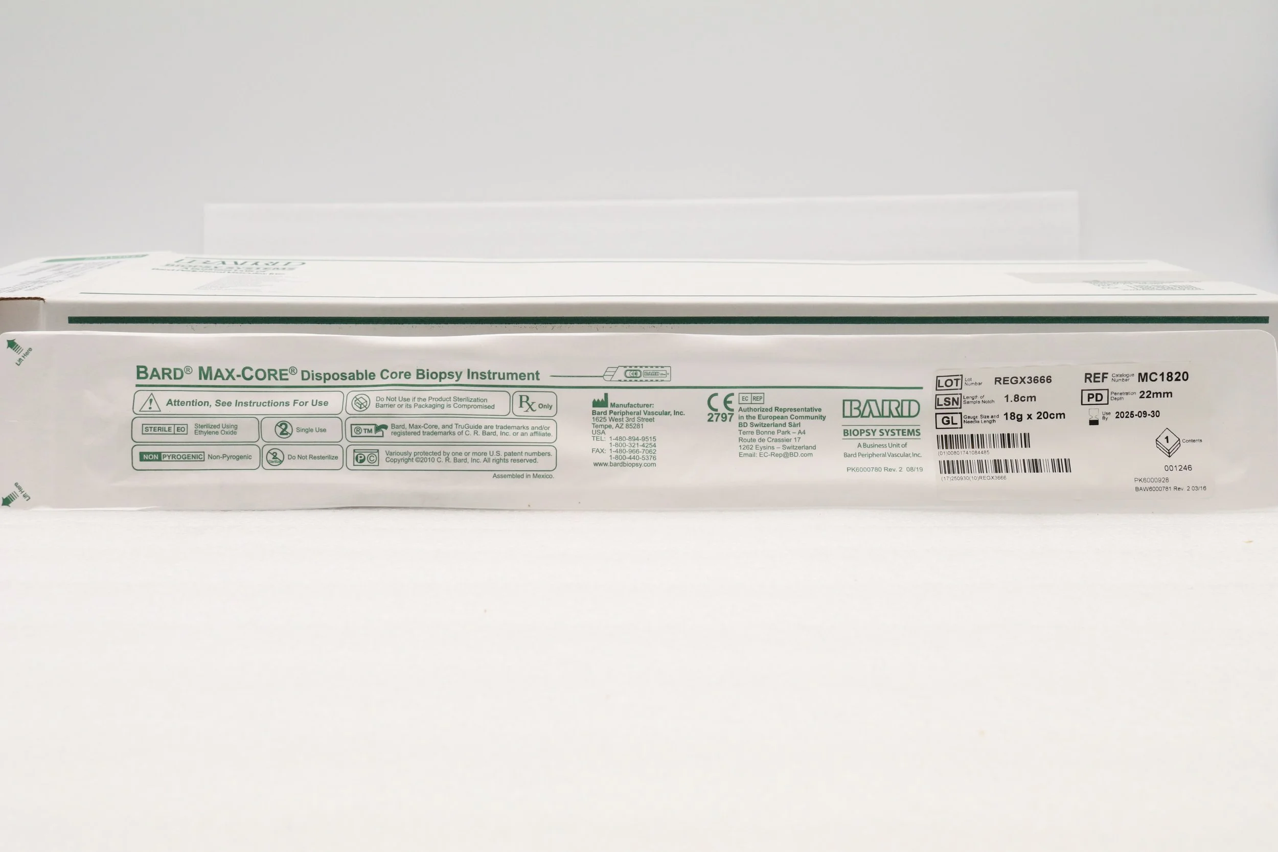 Bard | 1820MSK | SHORT DATE | EACHES | Mission Disposable Core Biopsy Kit 18G x 20cm