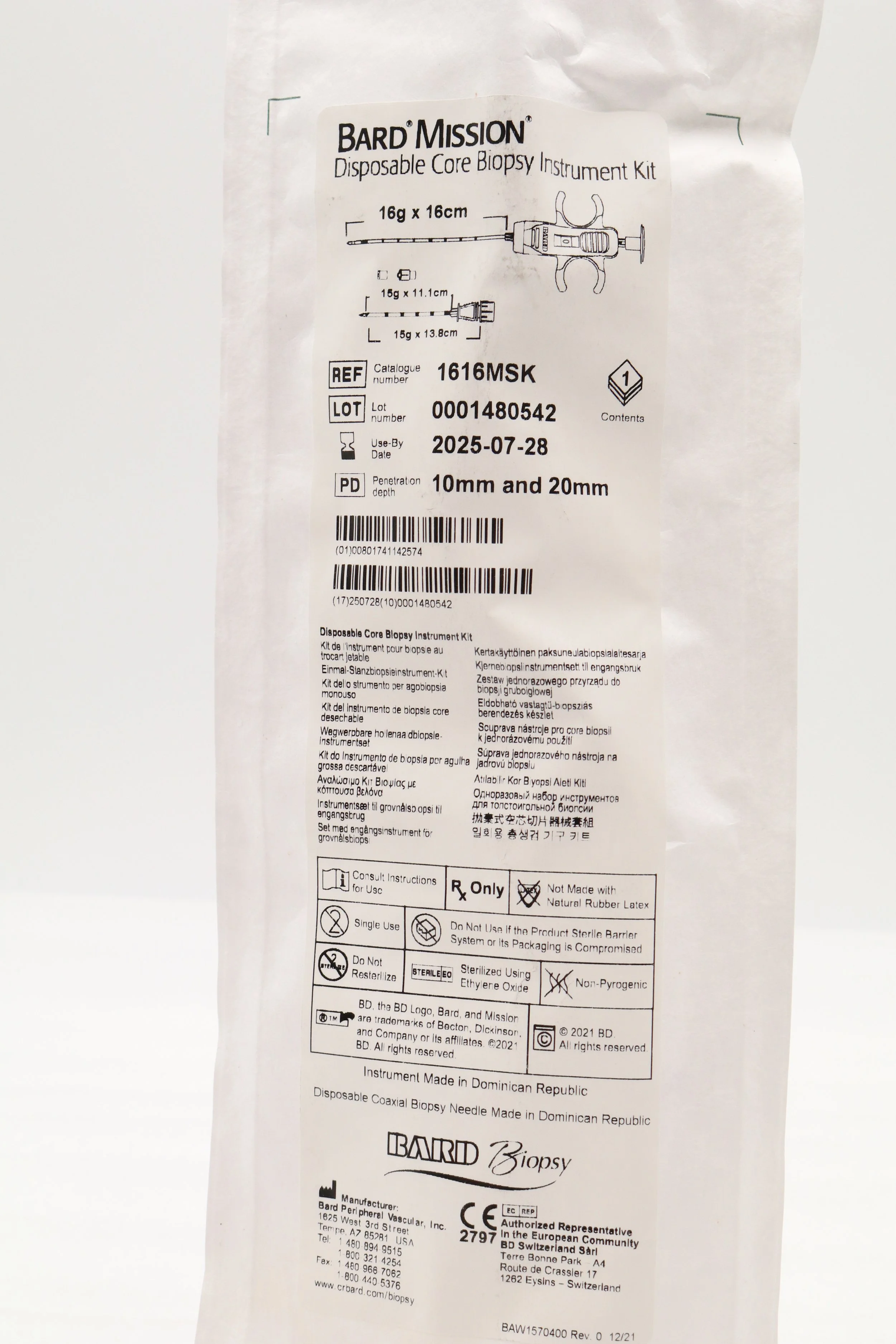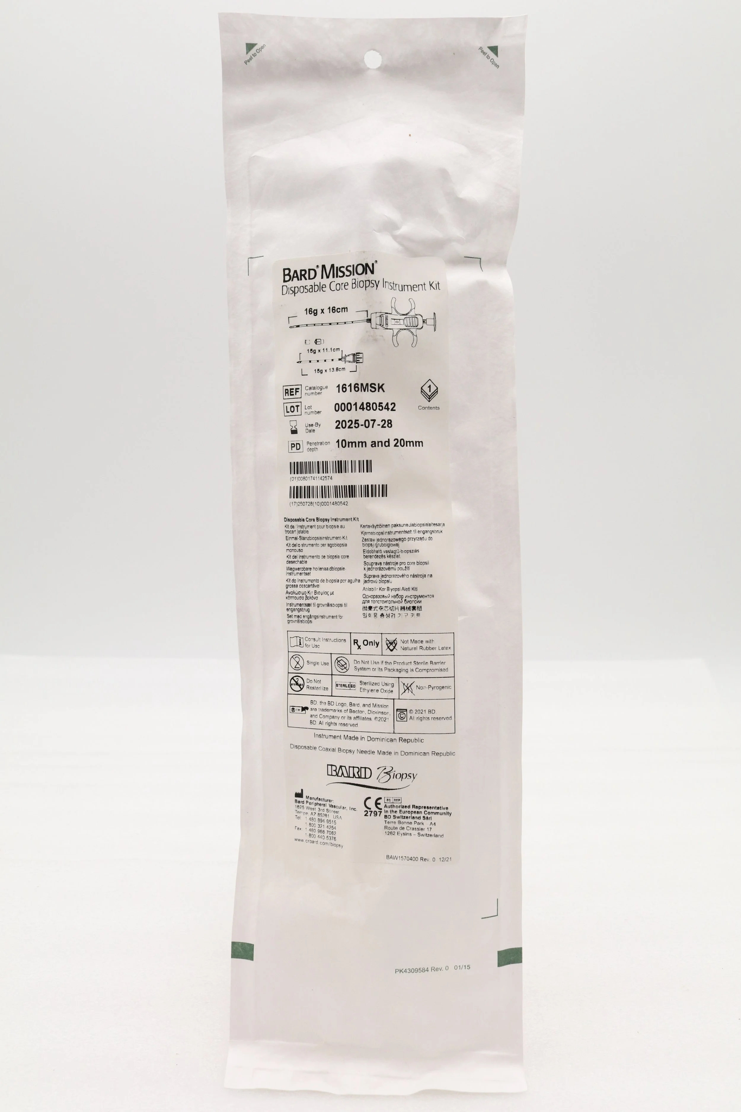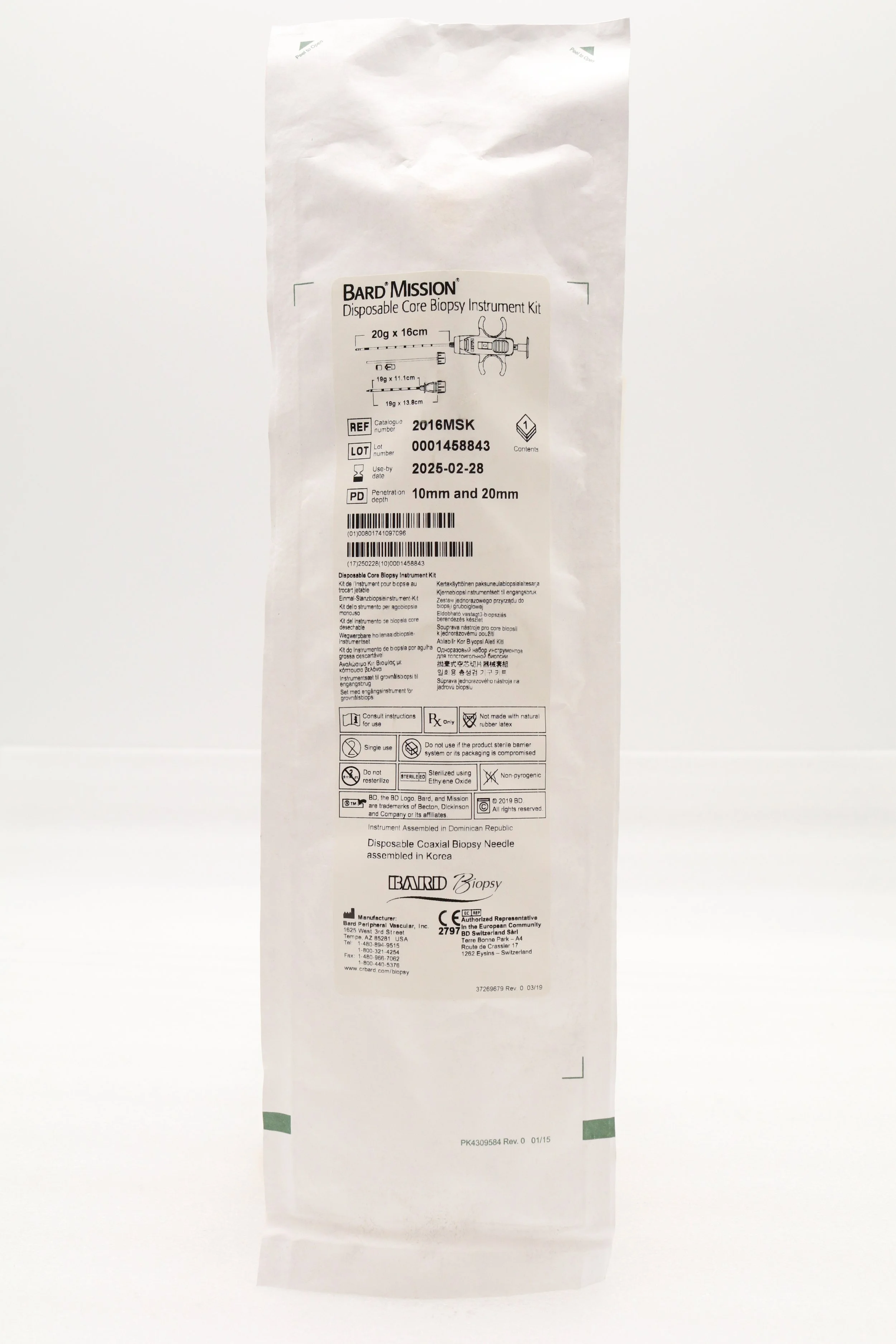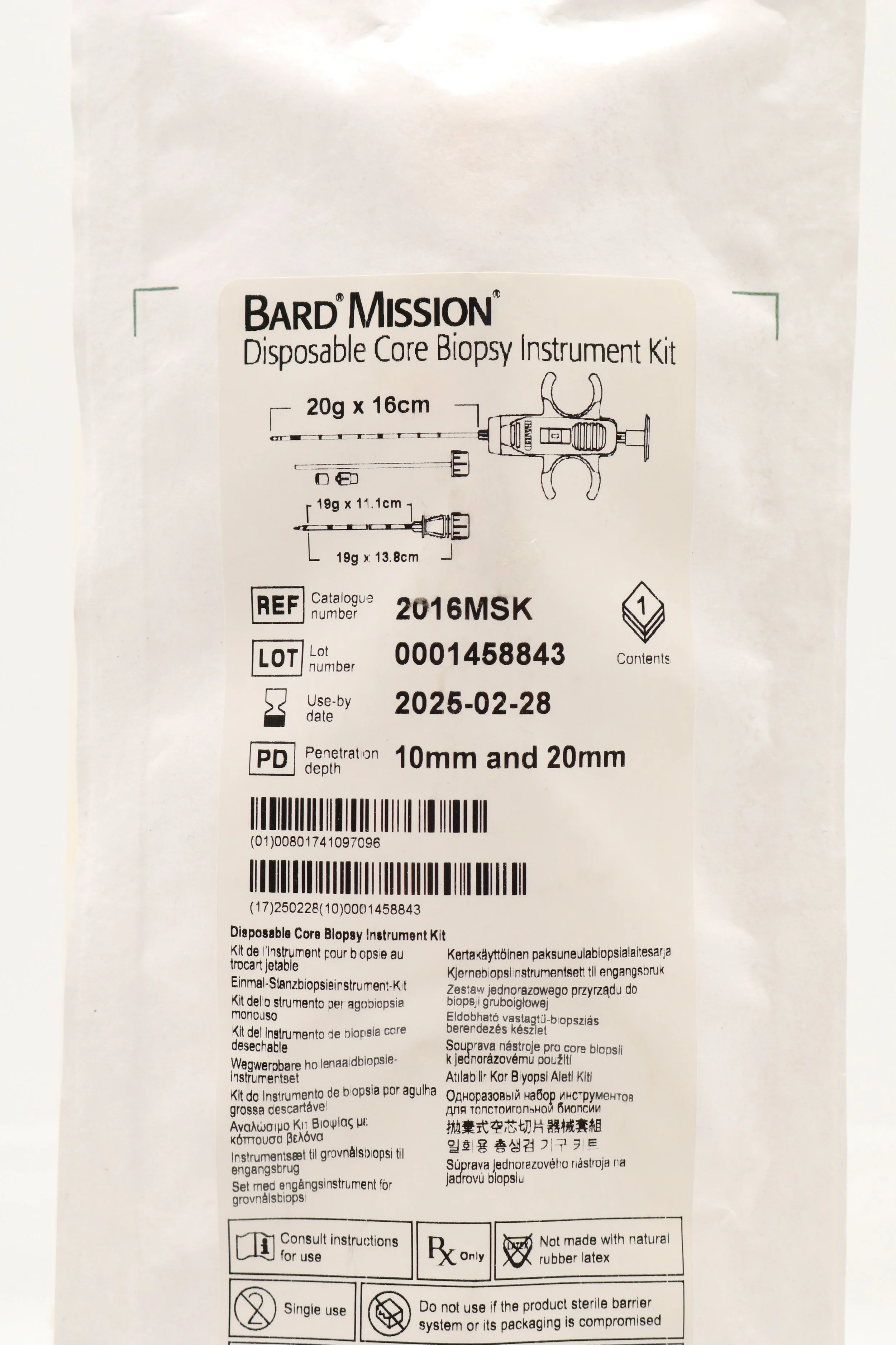 Bard | 1820MSK | SHORT DATE | EACHES | Mission Disposable Core Biopsy Kit 18G x 20cm