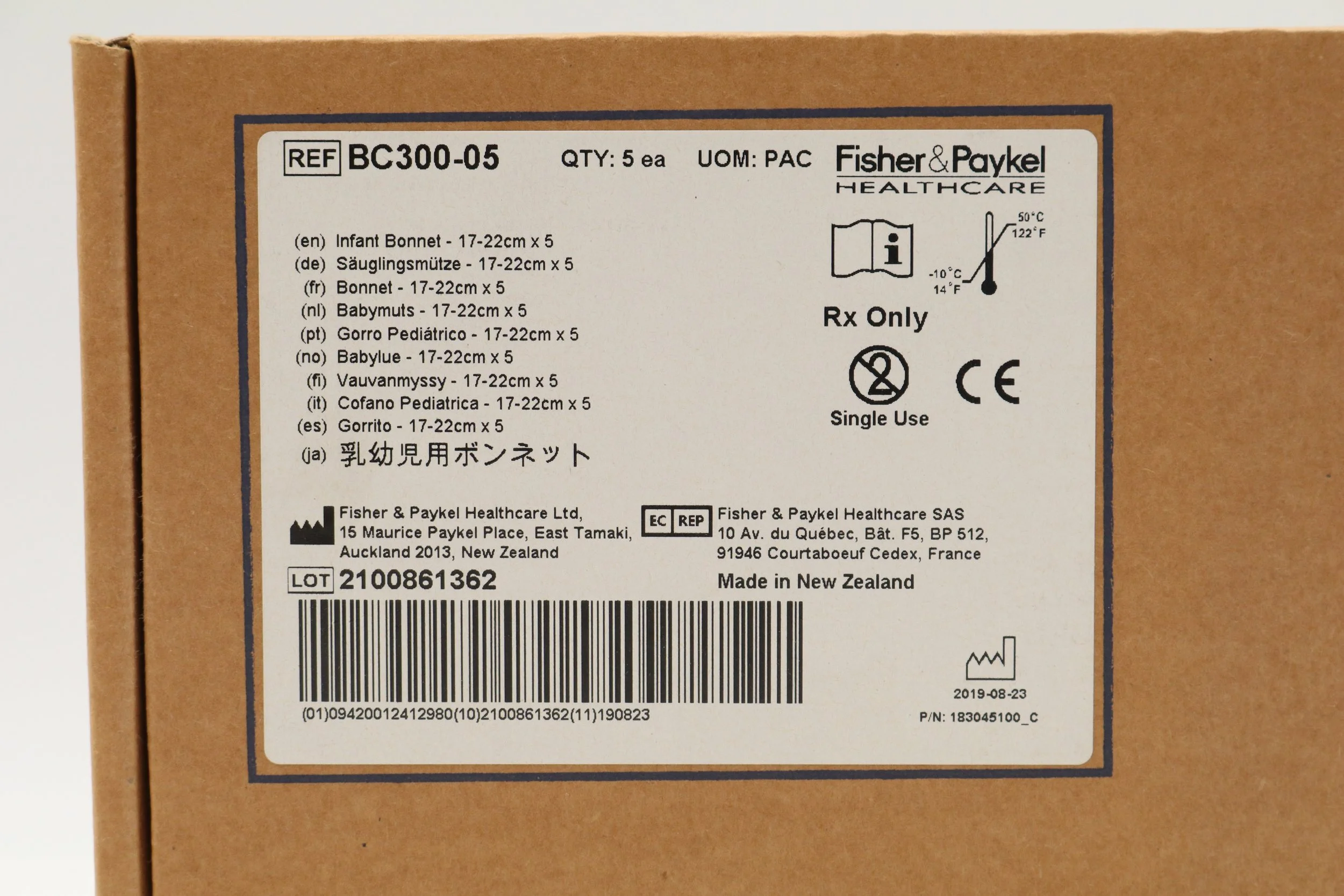 Fisher Paykel | BC300-05 | BOX OF 5 | Infant Interface Accessories - Infant Bonnet, 17-22 cm