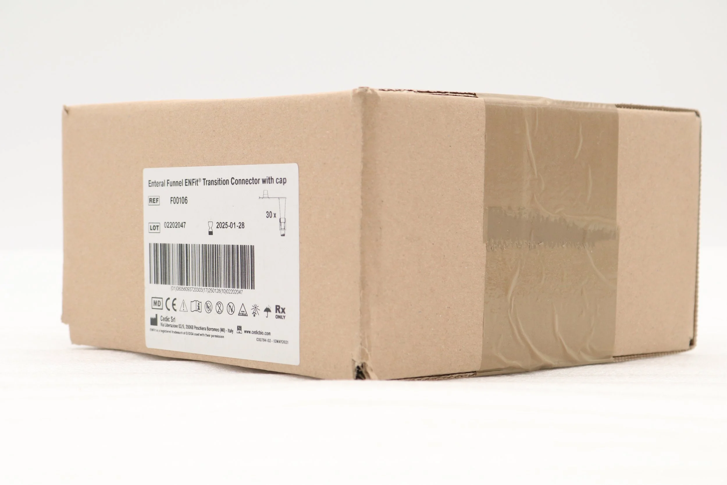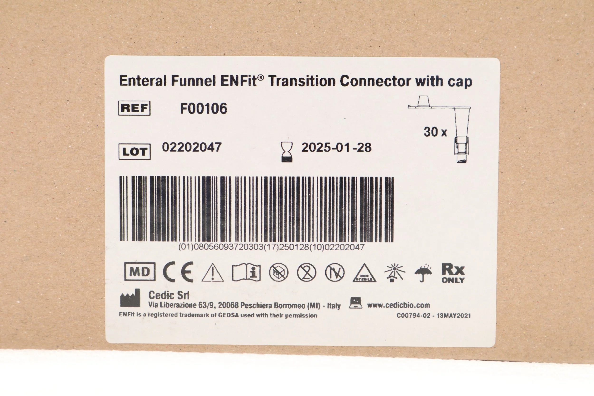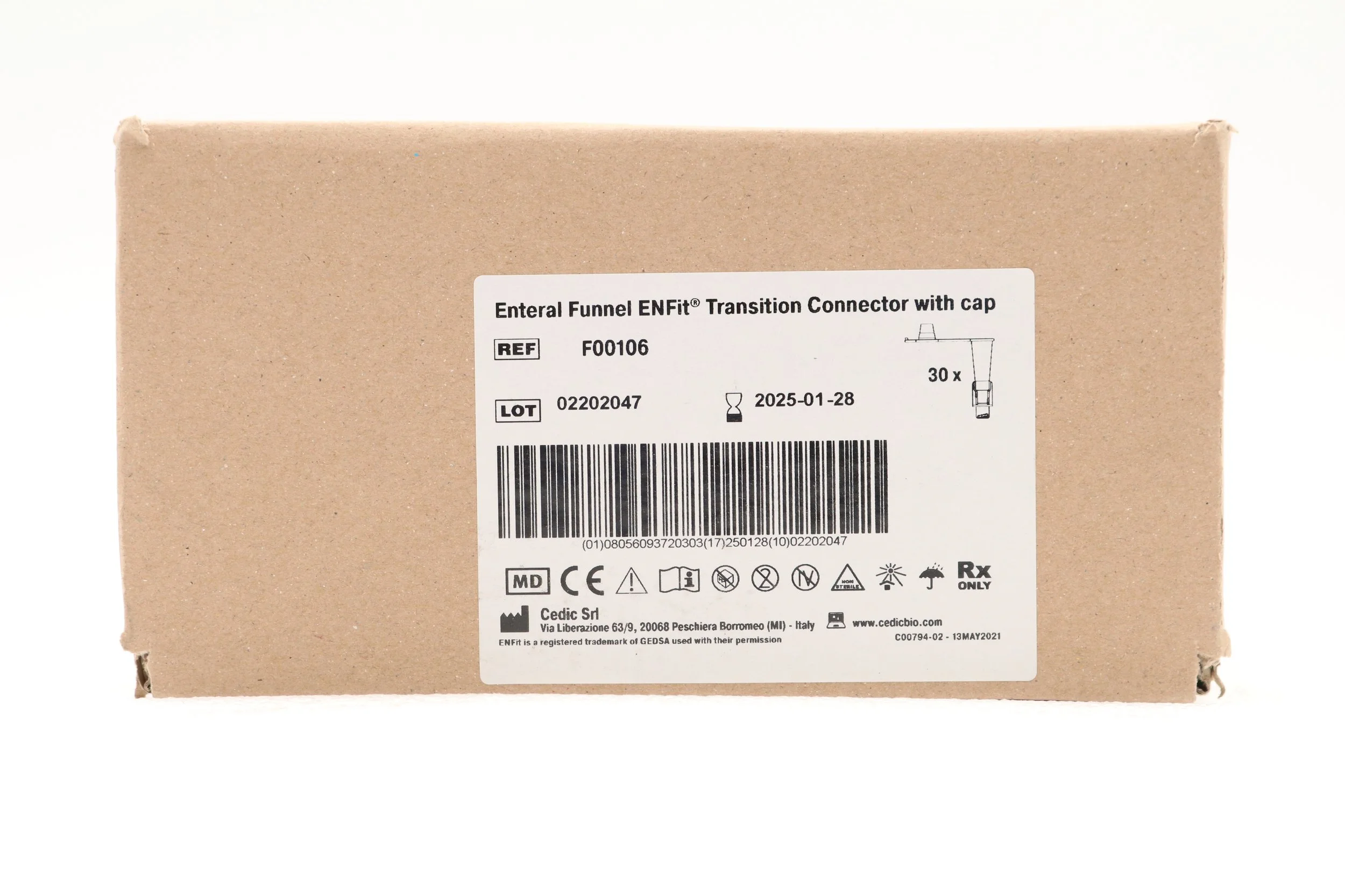 CEDIC | F00106 | EXPIRED | BOX OF 30 | ENTERNAL FUNNEL ENFit Transition Connector with Cap