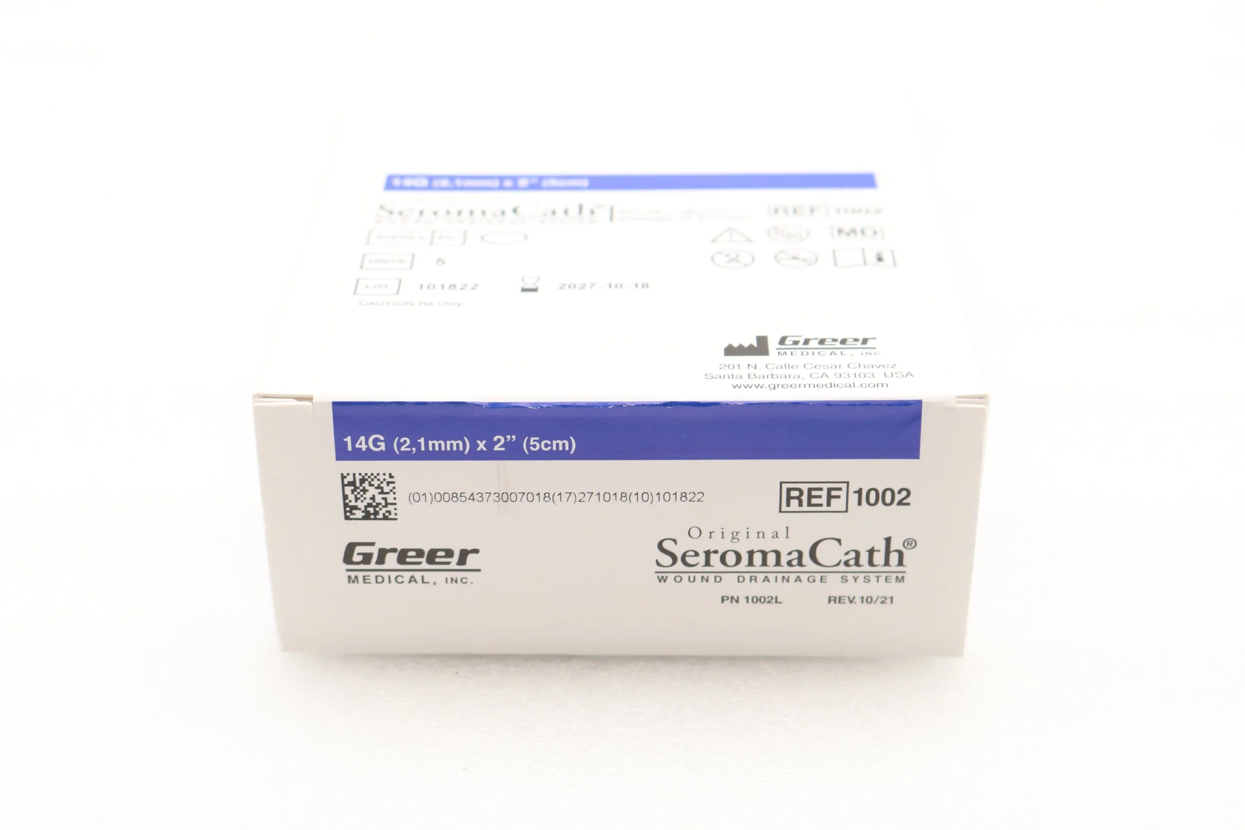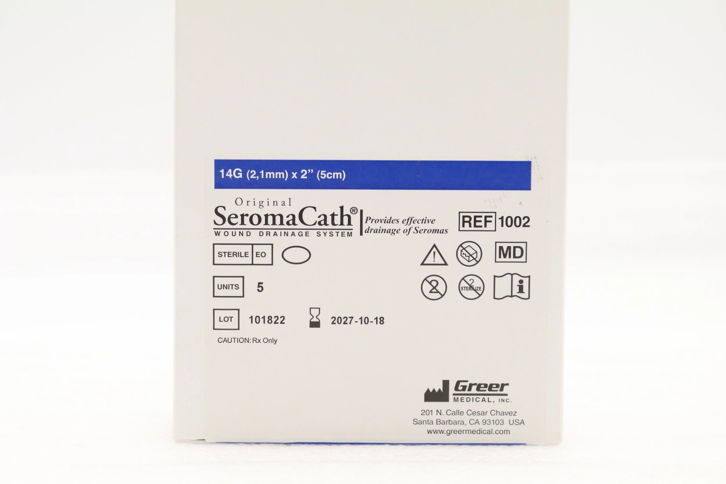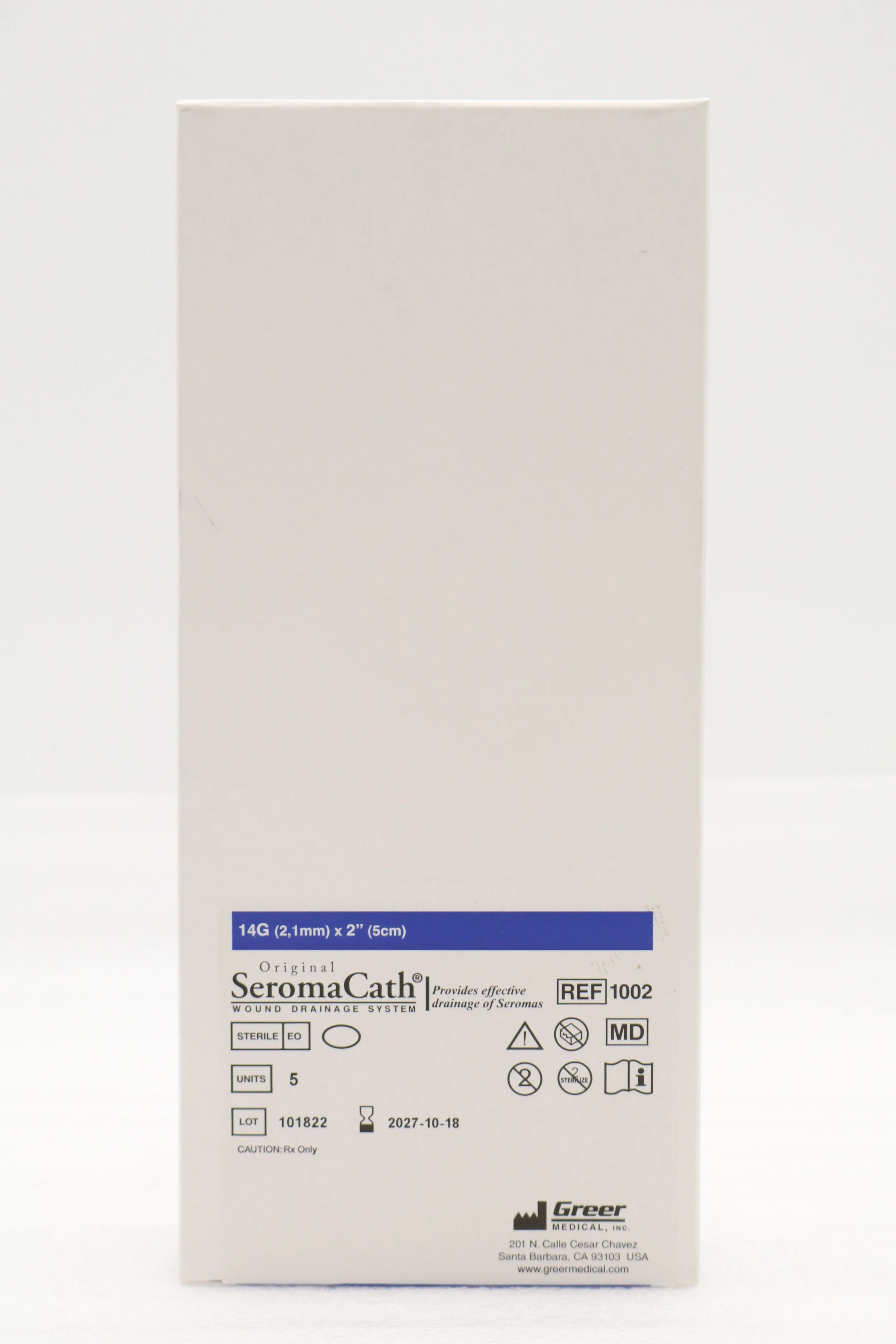 GREER MEDICAL | 1002 | BOX OF 5 | Original SeromaCath Wound Drainage System 14G (2,1mm) x 2" (5cm)