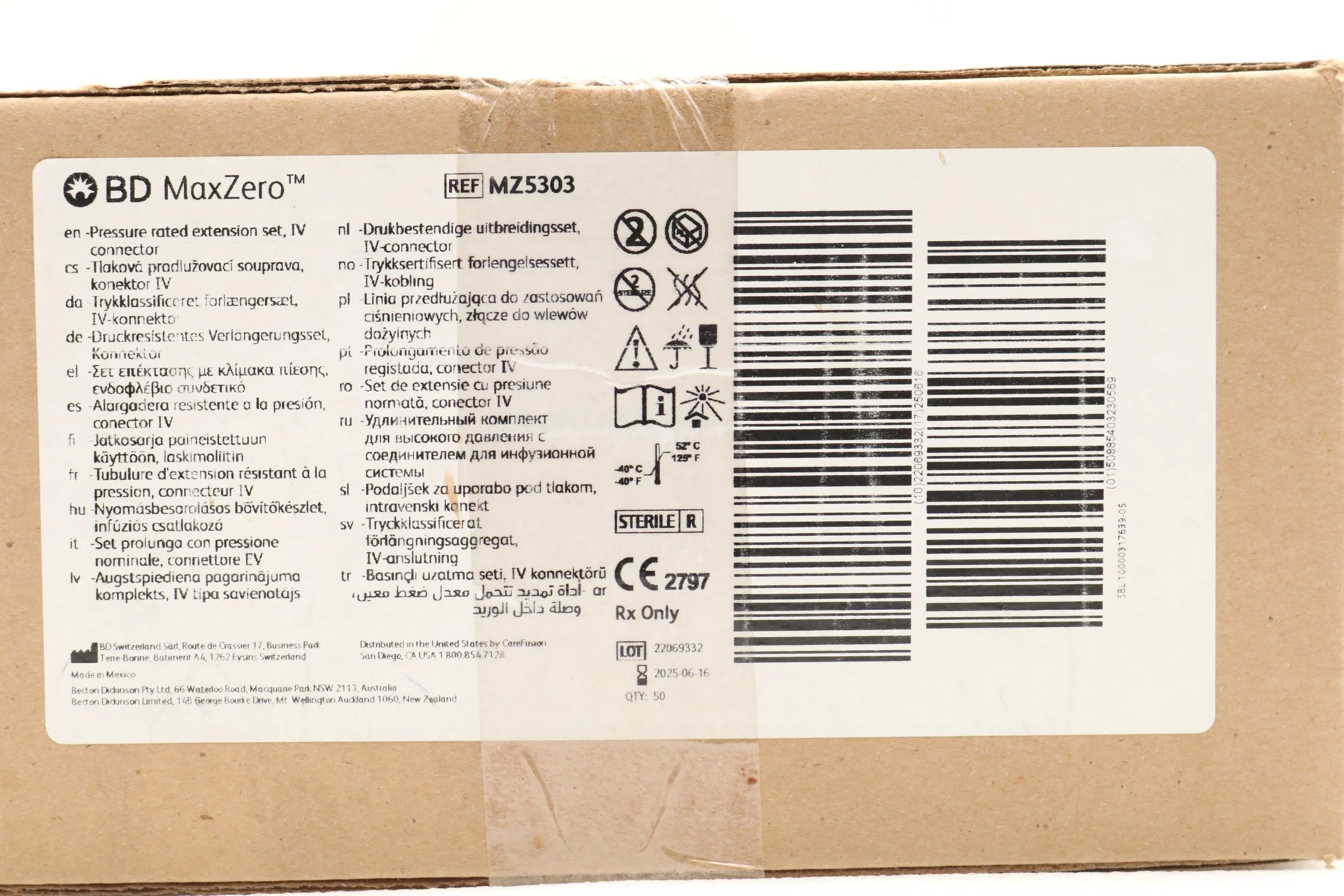 BD | MZ5303 | BOX OF 50 | Extension Sets with MaxZero Needleless Connector - MaxZero Standard Bore Pressure-Rated IV