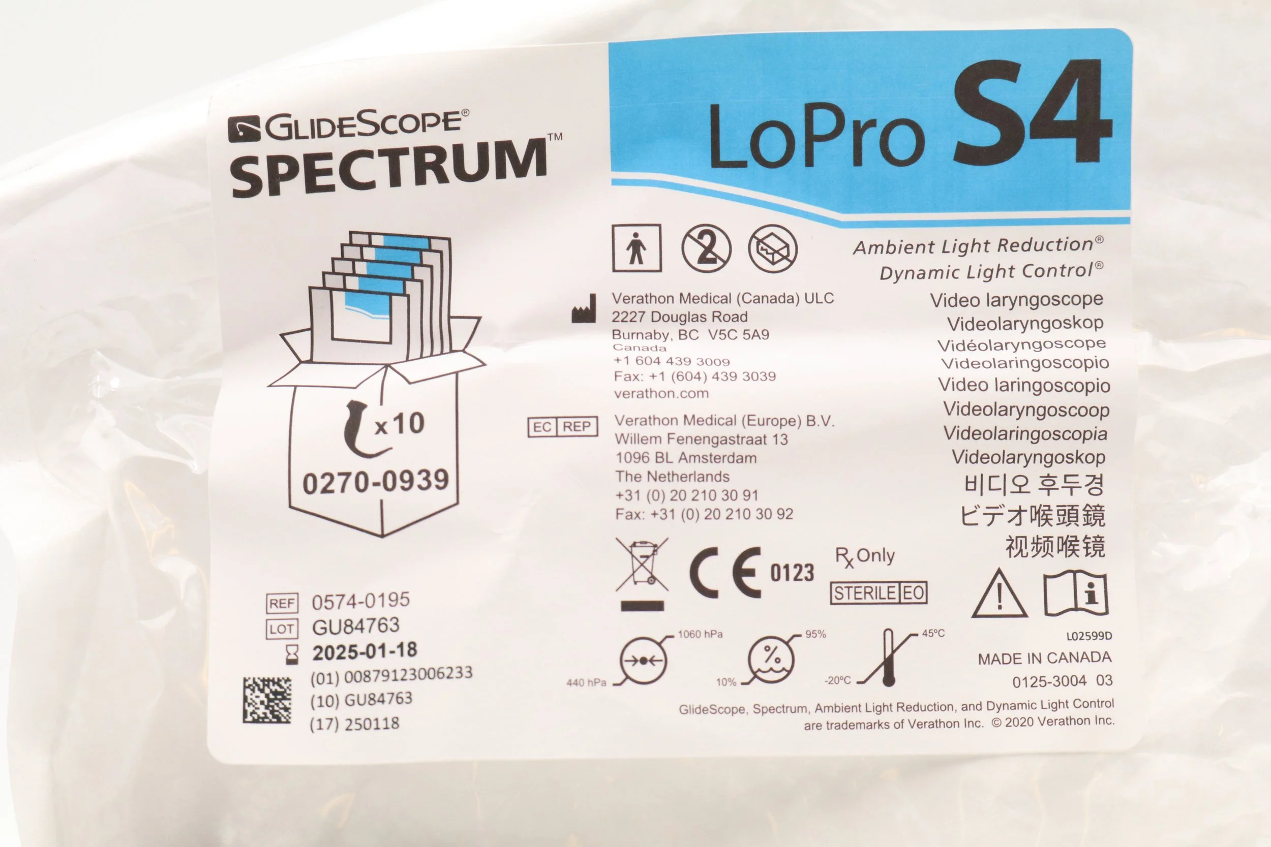 VERATHON | 0574-0195 | SHORT DATE | EACHES | SHORTDATE GlideScope Spectrum Video Laryngoscope LoPro S4