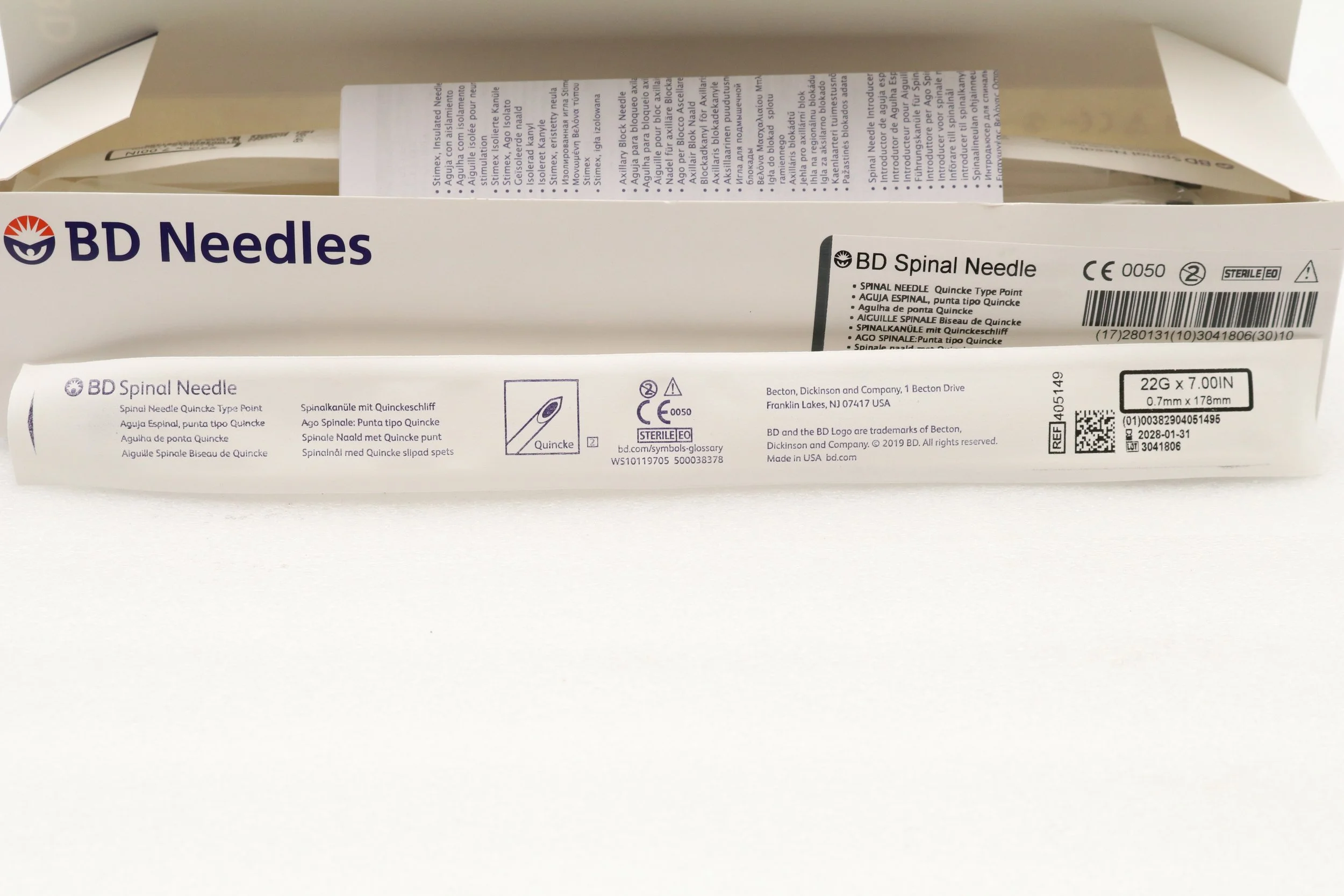 BD | 405149 | BOX OF 10 | Quincke Long Spinal Needle, Black Hub 22G x 7"