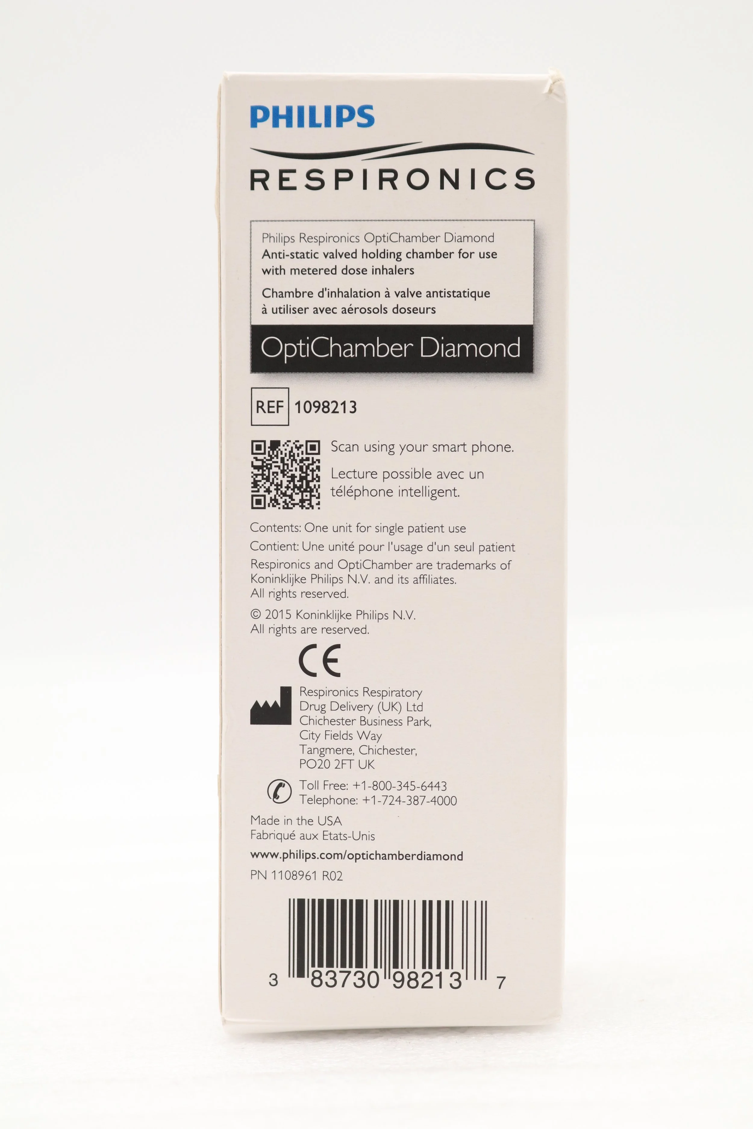 Philips | 1098213 | Respironics OptiChamber Diamond VHC MDI Inhaler Spacer Anti-static Valved Holding Chamber