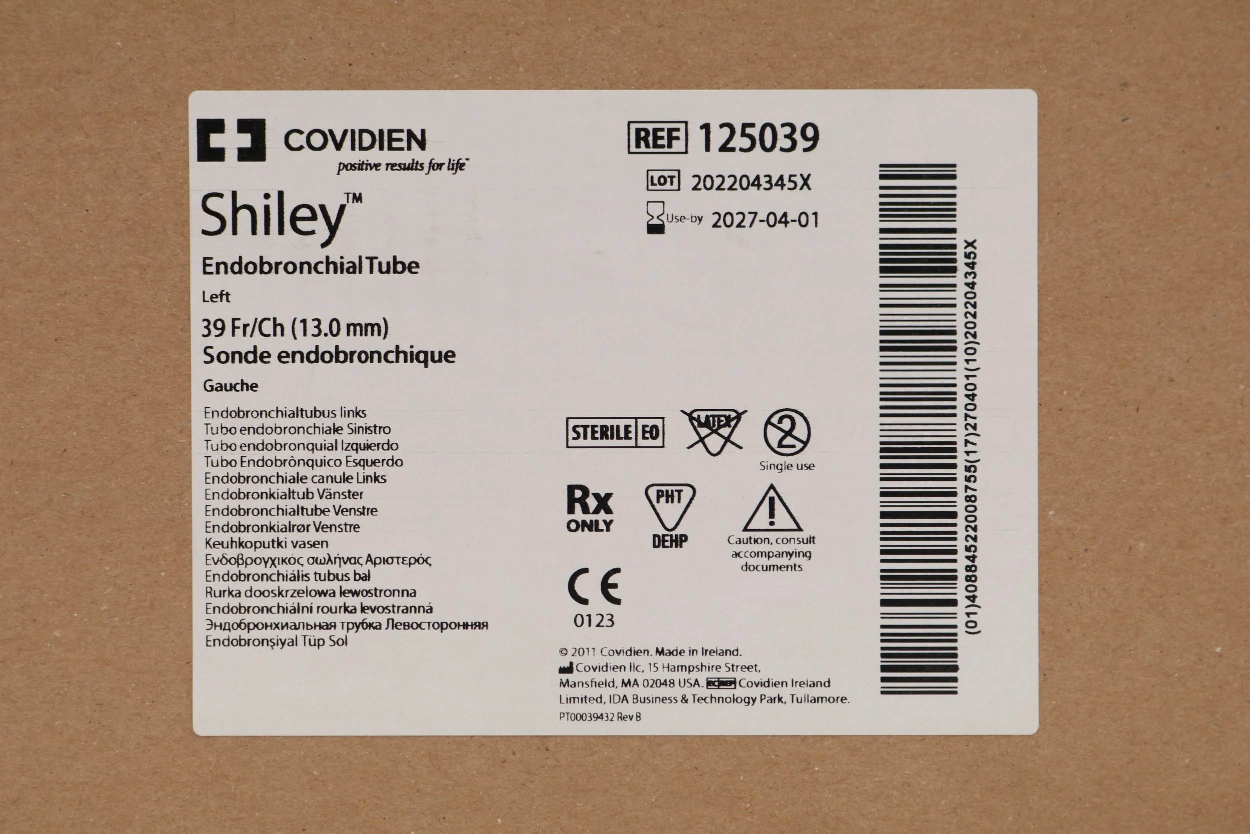 COVIDIEN | 125039 | IN-DATE | EACHES | Medtronic Shiley Endobronchial Tube, Left w/Polyurethane Cuff 39F