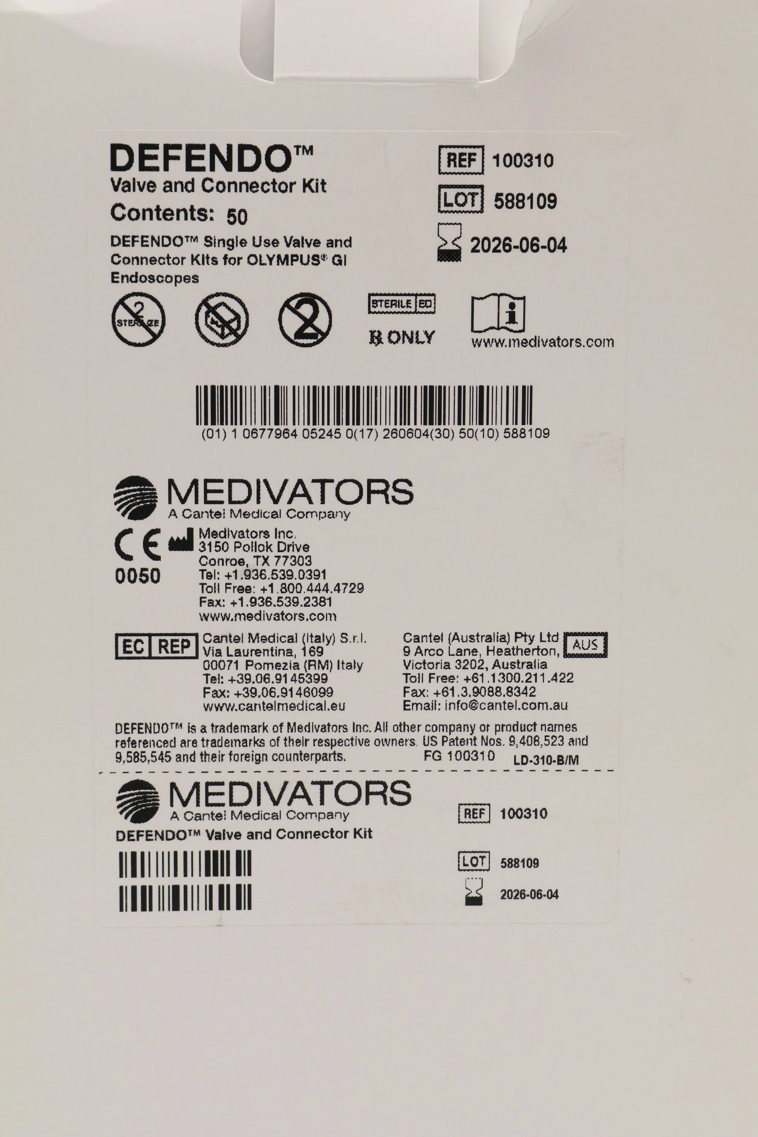 MEDIVATORS | 100310 | IN-DATE | BOX OF 50 | Defendo Air/Water, Suction, Biopsy Valve and Auxiliary Water Jet Connector Kit for Olympus