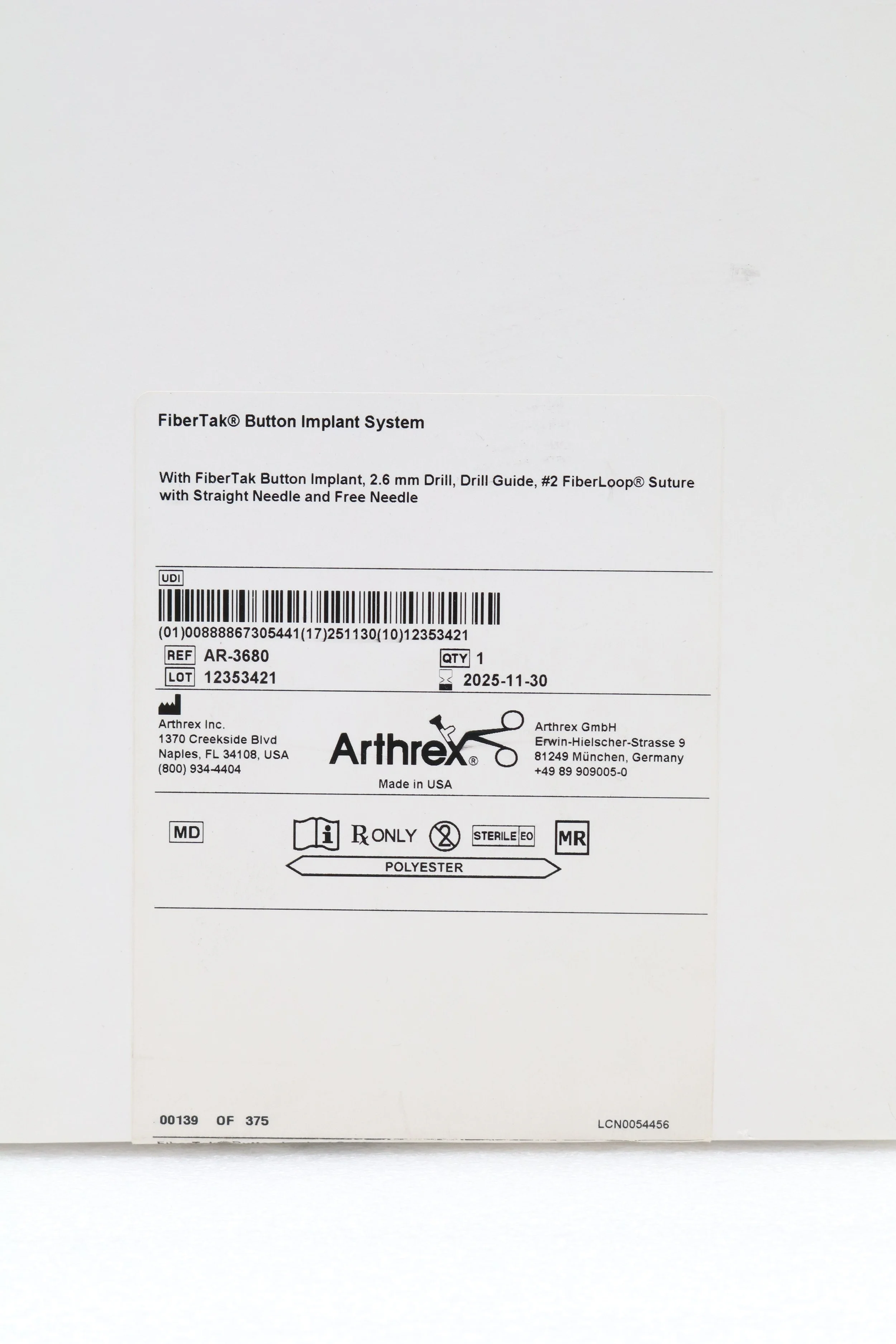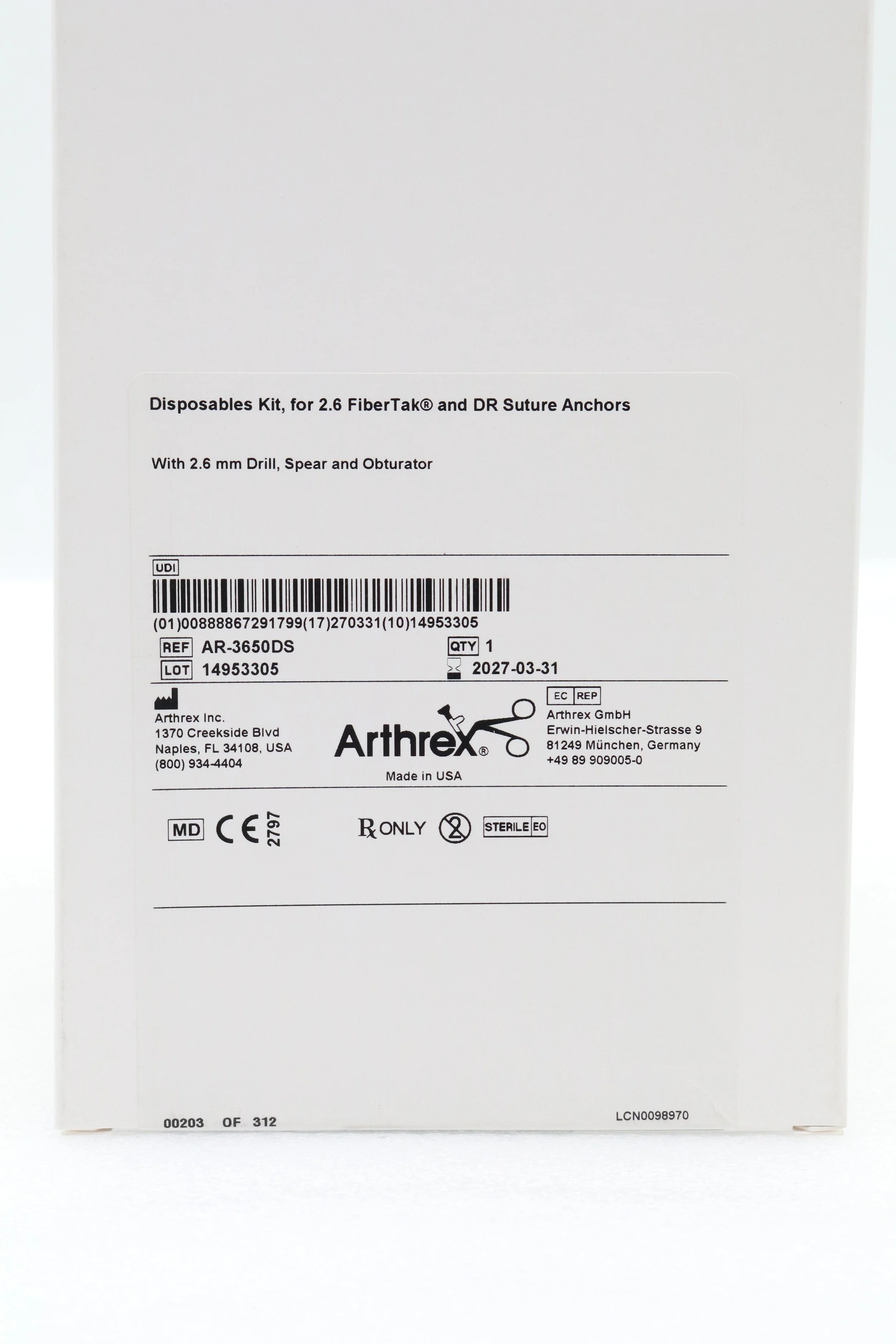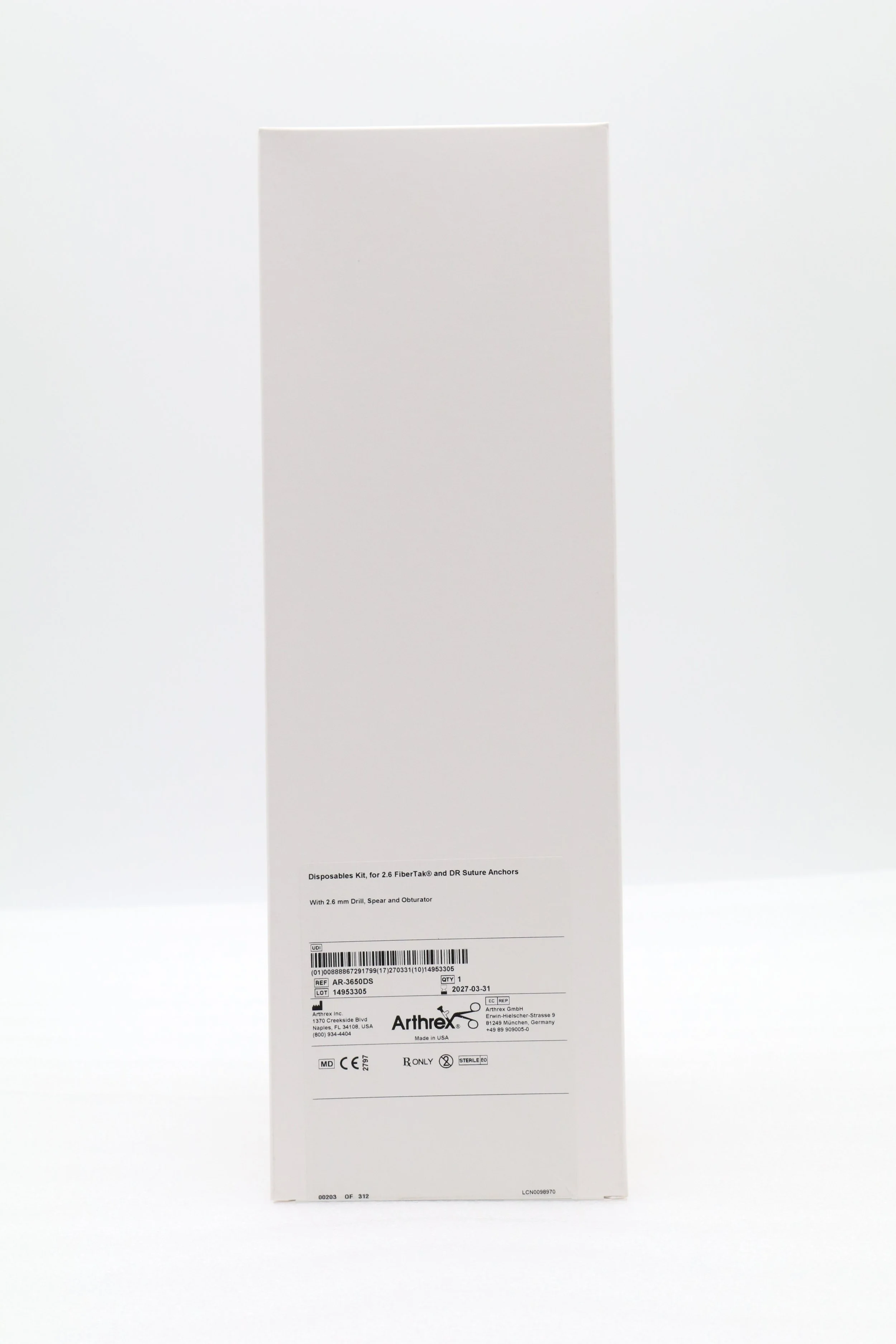 Arthrex | AR-3650DS | Disposables Kit for 2.6 FiberTak and DR Suture Anchors